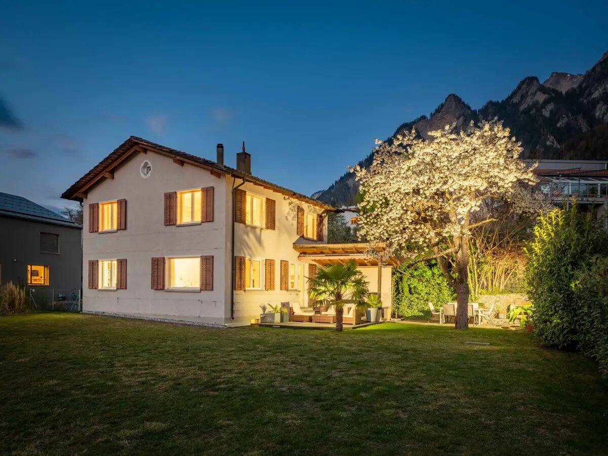 This detached residence in Chur is situated in one of the city's most sought-after residential areas. The Lürlibad neighborhood boasts quiet surroundings, ample sun throughout the day, and unobstructed views of the city and surrounding mountains. Enjoy a living experience that is a unique combination of tranquil idyll and proximity to the city. With 4.5 rooms and a well-conceived layout, the house is perfect for families or couples. The bright living and dining area imbues a pleasant ambience, complemented by a wood-burning stove that imparts a welcoming coziness. Generously sized rooms present flexible options in terms of use, while the covered seating area with its fabulous mountain view is an oasis of bliss for whiling away the time. Another advantage: The property can be adapted to meet specification, extended, or reconstructed to optimize build capacity. This allows for the creation of a contemporary home that highlights the benefits of this unique location in a decidedly impressive way. The ideal location, the cleverly configured layout, and the adaptable interiors make this house an exceptional prospect as your new home. The property: - 4.5-room detached house in one of the most sought-after locations - Approximately 120 square meters of living space - Approximately 53 square meters of additional usable space - 4 garage parking spaces and 6 utility rooms - Outstandingly beautiful views of the mountains and city - Unutilized development capacity available