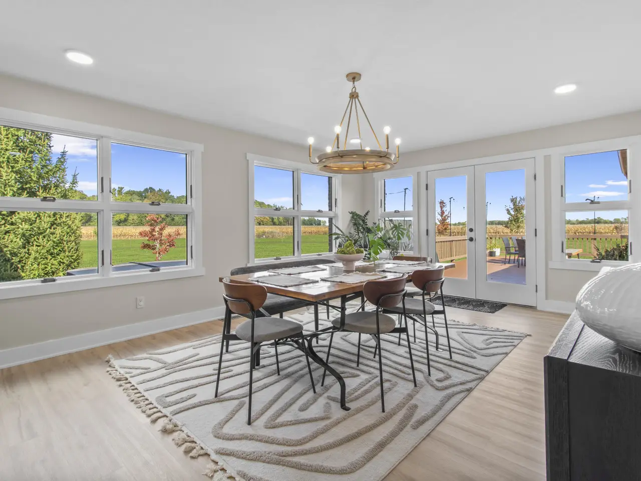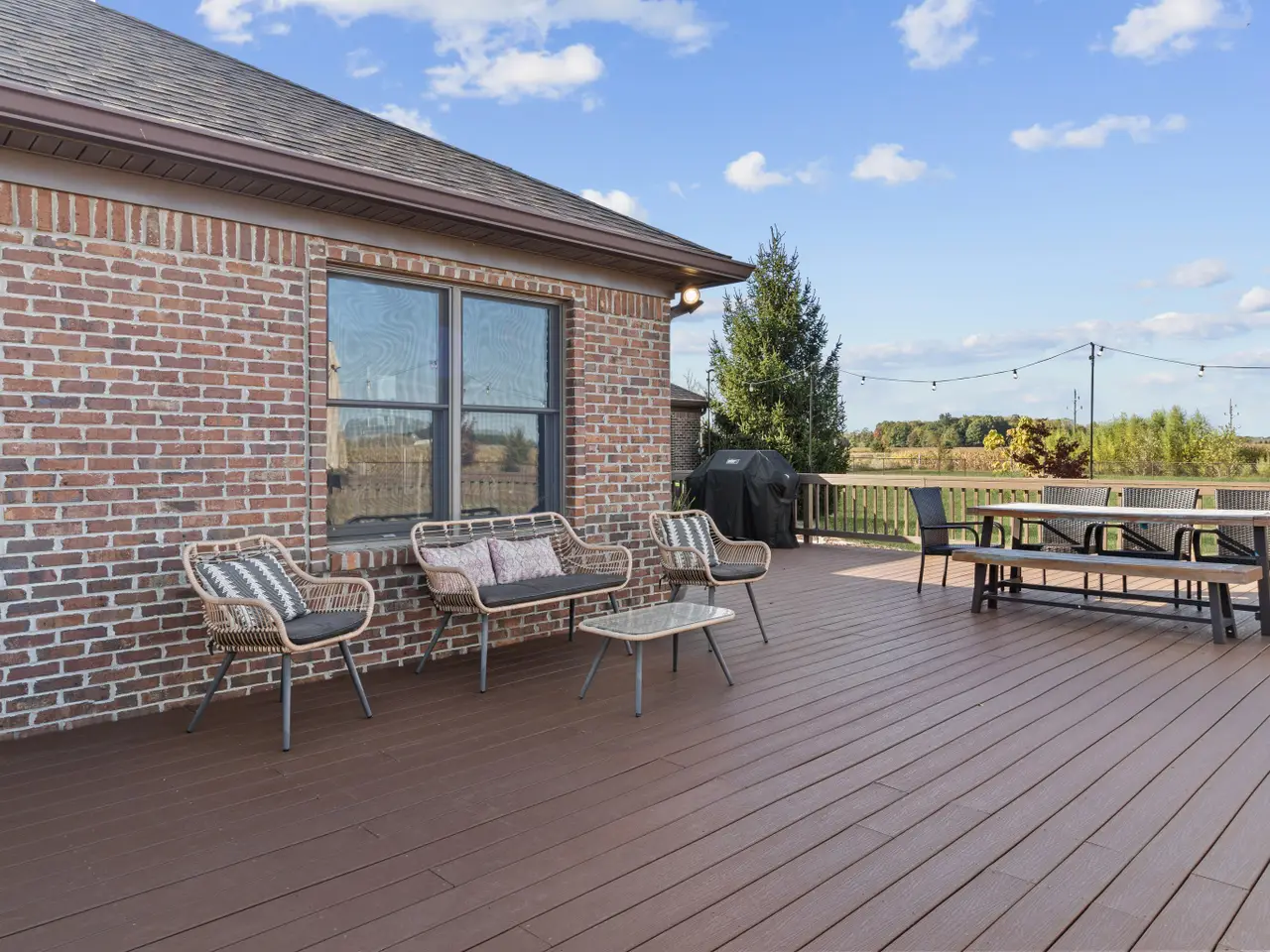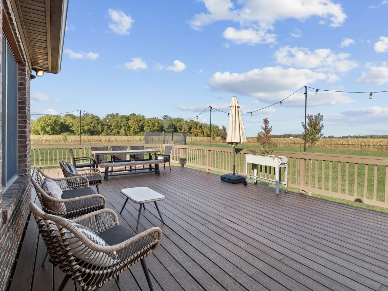 RARE OPPORTUNITY FIND with NO HOA! Custom-built well-maintained brick ranch sits on 4 acres w/no visible neighbors with finished basement. As you enter this beautiful open concept home you will see a new electric fireplace that provides the perfect ambience & will keep you warm on a chilly night. This home boasts tons of Anderson windows to allow a lot of natural light with soaring ceilings. Main floor has new LVP flooring throughout(original hardwoods underneath),freshly painted interior & white trim. Kitchen offers brand-new quartz countertop/backsplash & cooktop, walk- in pantry, lots of cabinets/soft close drawers for storage w/an oversized island that seats 4 comfortably.The spacious MBR offers a newly renovated bathroom w/tile floor,oversized tile walk-in shower,double sink vanity w/large walk-in closet w/built ins.Watch your favorite show/movie while relaxing in the tub. Roomy dining room overlooks your peaceful back yard & is great for entertaining,especially with the holidays coming up.The extra room on the main can be used for a nursery, den, office, craft room, extra storage, many possibilities.Finished basement has BR with a walk-in closet, including a bathroom w/tile floor w/ tub/shower combo.Basement bonus room can be extra LR, toy room,gaming room,workout room,options are endless.House offers central vac, reverse osmosis,EV charger,GENERAC generator 3 car garage w/8 ft doors, 6 ft chain link fence, storage shed w/Toro mower that is included,all new wood doors,new recessed lighting throughout entire home,newly laid gravel drive,too many upgrades to mention! Unwind from a busy day under your 240 sq ft covered front porch,out back on your 775 sq ft TREX deck or soak in your relaxing hot tub overlooking your gigantic back yard as you enjoy the peace and quiet while watching nature at its best. .Property has several newly planted trees & several fruit trees (apple, pear,cherry) including raspberry, blueberry & strawberries bushes. Close to Morse Reservoir.