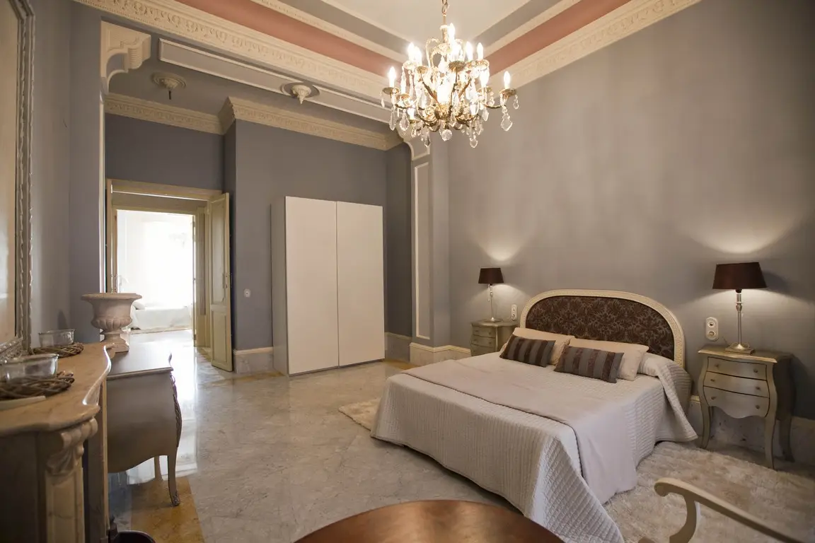 This wonderful manorial home, refurbished to the highest quality, is located on the second floor of a stunning, renovated palace in the centre of Valencia. The property has a living space measuring out at 380m2 spread over one floor and boasts a large 380m2 terrace. The property sits on a main high street in the city's old town district, close to the Mercado Central, the Plaza de la Virgen and the old Turia riverbed. The entrance is comprised of a magnificent, imperial staircase made out of Carrara marble and a dome pained in elaborate frescoes by a well known painter of the 19th century. The magnificent rooms have been restored in their entirety, including sculptures and frescoes, without forgetting the little details like the tiling and flooring from the eighteenth century. The property is split into five huge rooms, an office, three bathrooms (one of which is an en-suite to the master bedroom), a large living room situated in, which used to be, the old dance hall of the palace, an ample dining room with views of the terrace and garden, and a large kitchen with a breakfast area. The large 380m2 terrace with a charming dining area completes this unique property. The property, having previously been used as a palace, contains only four living units on each floor. The house was recently repainted and completely renovated, which makes it a large gem of a luxury property in the city of Valencia. The location in the middle of Calle Quart, a secondary street off of Calle Caballeros, is typical for small mansions, palaces and similar wonderful houses, which all feature an extraordinary architecture. The area is very much in demand, and via a rehabilitation, has been turned into a heterogeneous quarter full of life and a large night-life. In close proximity to the property, the Mercado Central, the Cathedral and the Palacio de la Generalidad award you with an bustling lifestyle, not only during the day, but at night too.