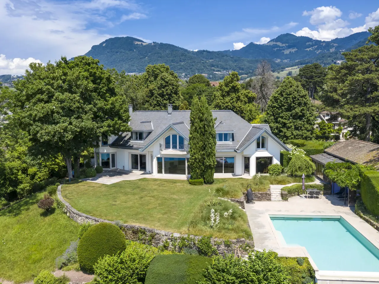 Beautiful property located on a panoramic point, with an outdoor swimming pool, situated in the most residential and tranquil neighborhood of the Riviera, free from train disturbances, offering panoramic views of the lake and mountains. Close to the St-Georges School International, the Clinique de la Prairie, and in proximity to the port of Clarens and Lake Geneva. Surrounded by a magnificent garden with large trees, a pond, shrubs, and rare plants, creating an exceptional environment that ensures a unique atmosphere and complete privacy. Perched on a hill, the villa enjoys exceptional sunlight, including the last rays of the setting sun. High-quality finishes and in a like-new condition. All bedrooms and living spaces overlook the lake to the West.