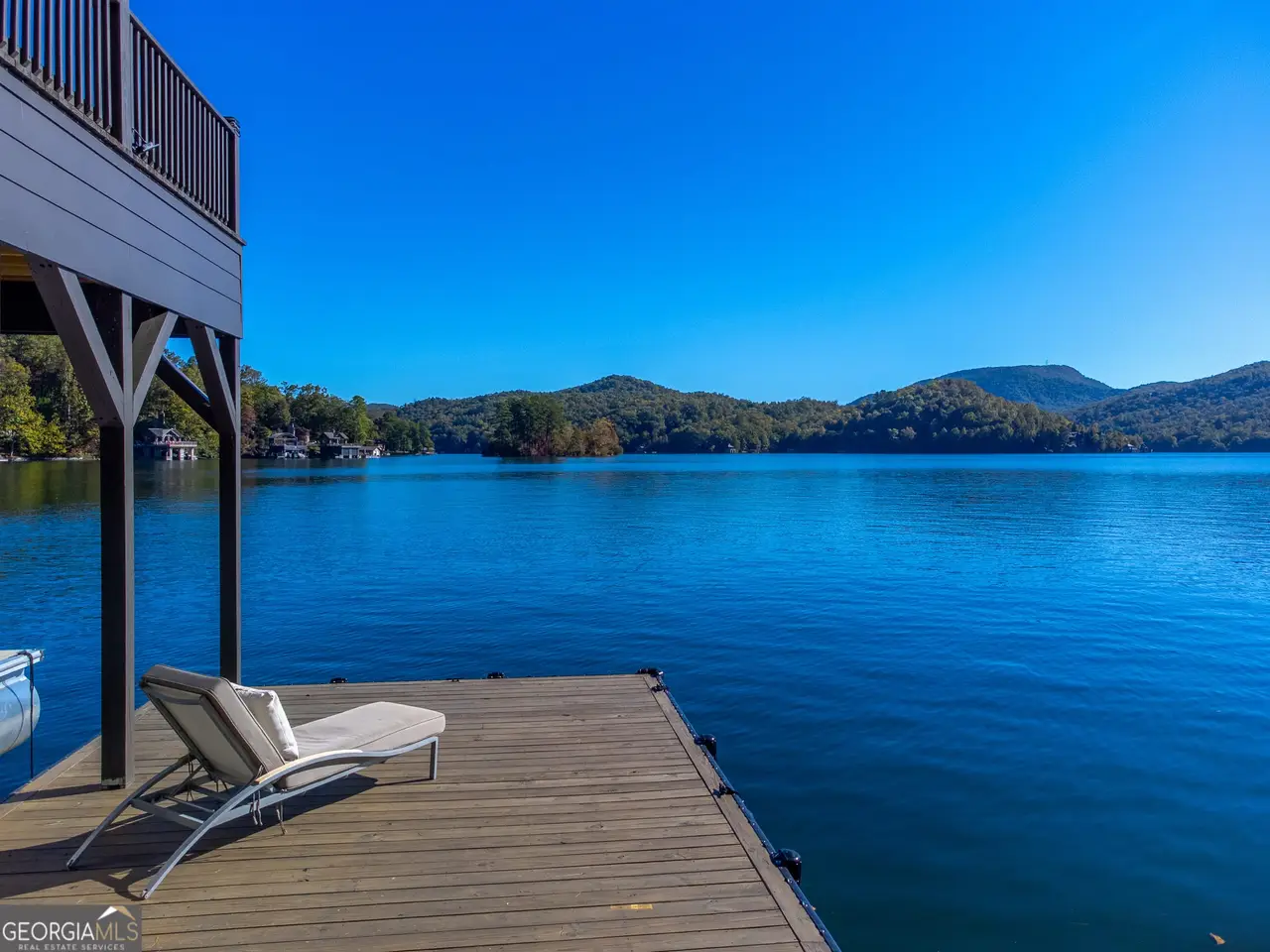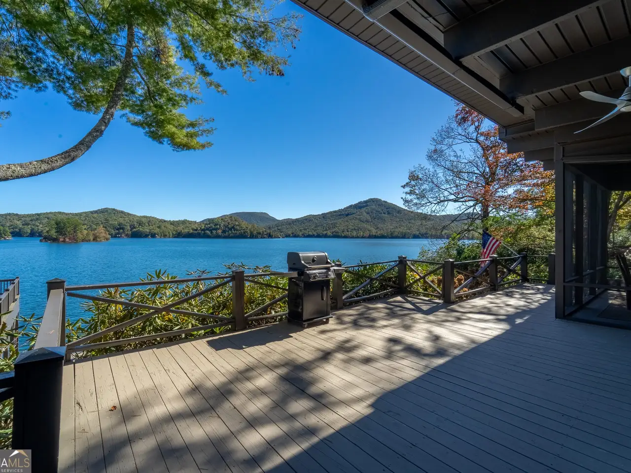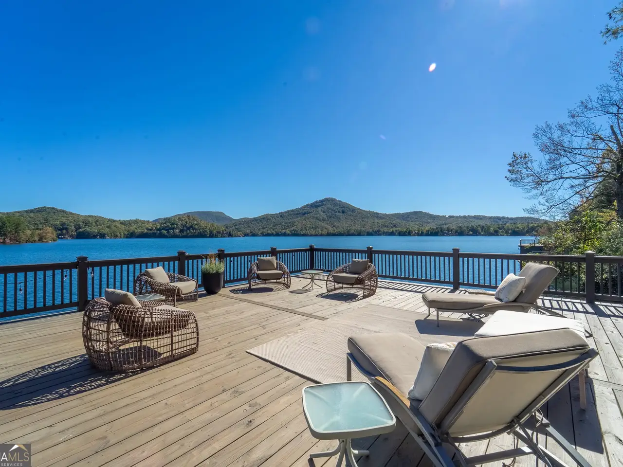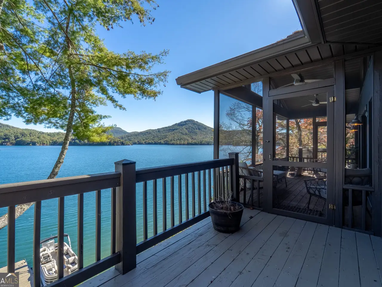 Enjoy fabulous sunrise views over Charlie Mountain from this 4 bedroom, 5 bath home on Lake Burton's big basin. This 1.34 acre property sits on deep water on the main body of Lake Burton with over 230' of shoreline. The freshly remodeled interior offers a vaulted great room with v-groove wood paneling and an all new kitchen with stainless appliances, new cabinetry and granite countertops. Enjoy expansive lake views through sliding glass doors that open to a lakeside screened porch and decks. The private master bedroom enjoys sunrise views over the lake from a private deck, a walk-in closet and newly remodeled en suite bath with a double vanity. Two spacious guest bedrooms on the main floor each enjoy lake views, walk-in closets, access to a lakeside deck and newly remodeled en suite baths. An oversized bedroom on the terrace level features lake views and a private full bath with double vanity. Also included on the terrace level are a second full bath, laundry room, kitchenette, dining area and living room with fireplace, all with lake views. A lakeside screened porch and ample decking are perched just above the lake overlooking sweeping mountain views. A new 2-story, 2-stall boathouse is easily accessed from the house and sits on deep water with coveted big water views. Don't miss this opportunity to own one of the best views on Lake Burton!