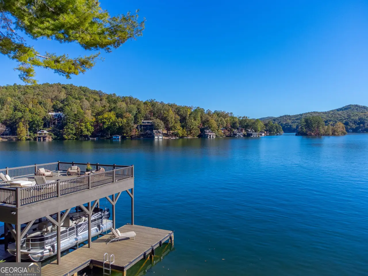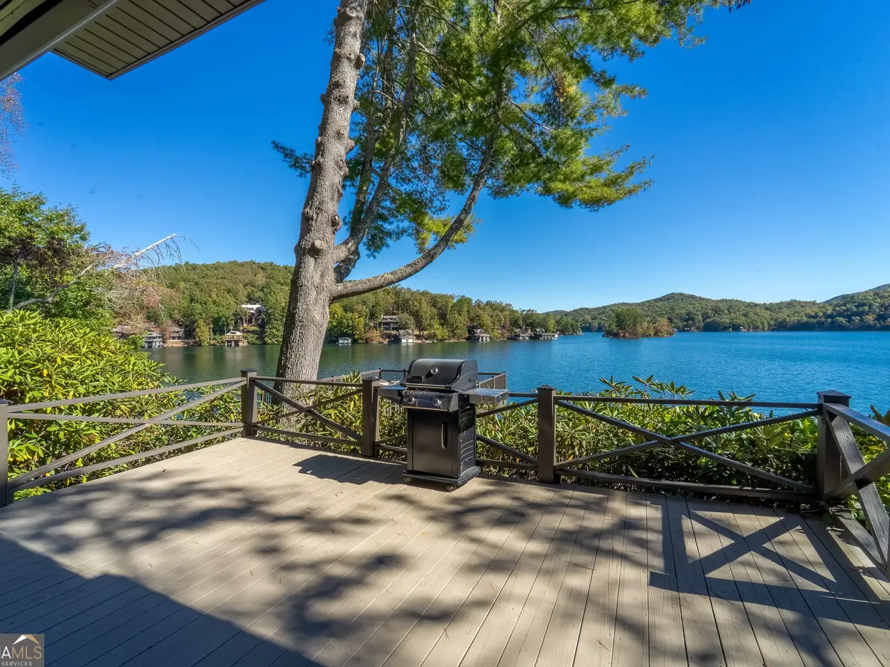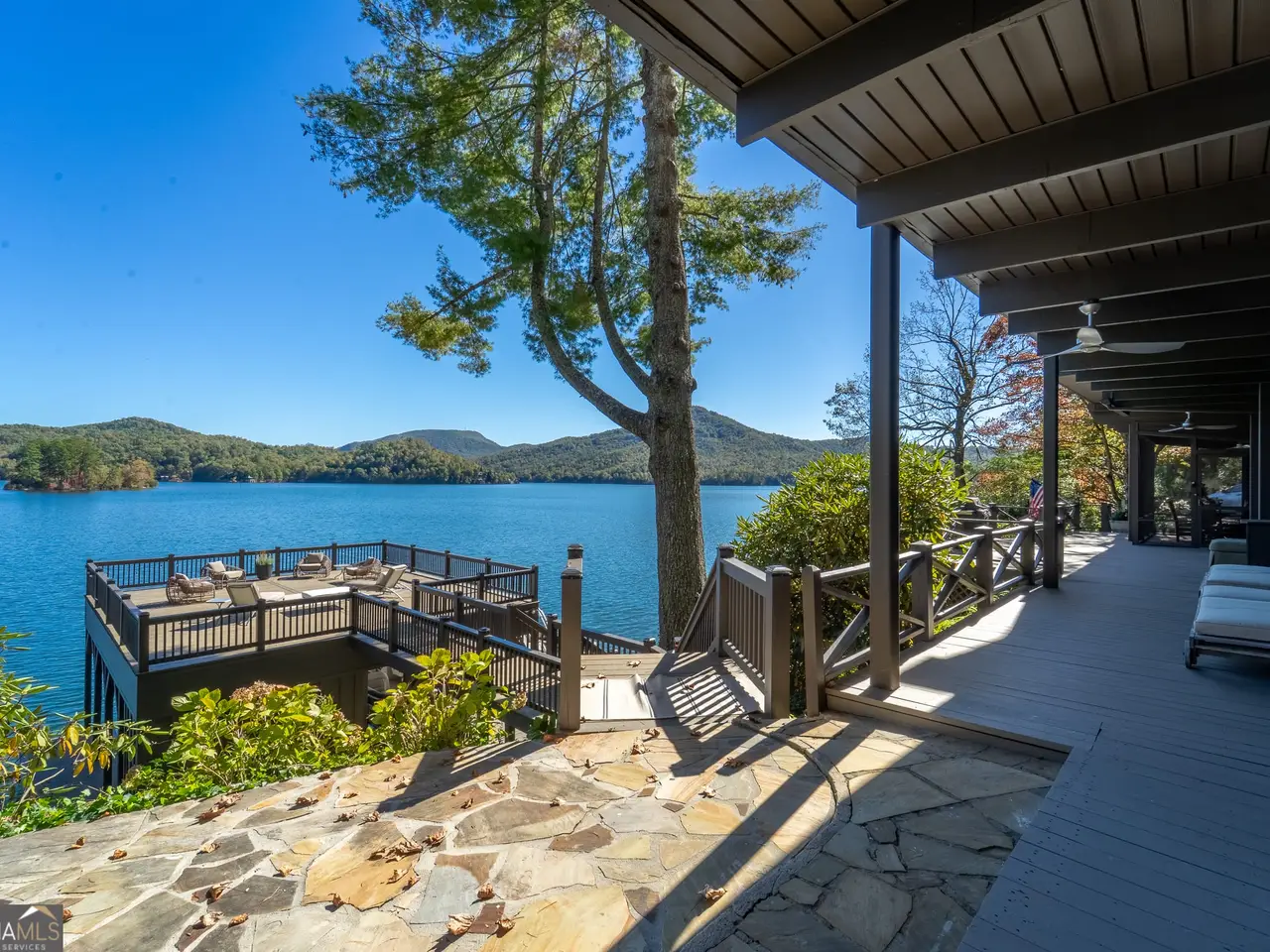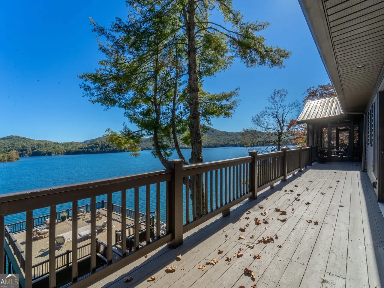 Enjoy fabulous sunrise views over Charlie Mountain from this 4 bedroom, 5 bath home on Lake Burton's big basin. This 1.34 acre property sits on deep water on the main body of Lake Burton with over 230' of shoreline. The freshly remodeled interior offers a vaulted great room with v-groove wood paneling and an all new kitchen with stainless appliances, new cabinetry and granite countertops. Enjoy expansive lake views through sliding glass doors that open to a lakeside screened porch and decks. The private master bedroom enjoys sunrise views over the lake from a private deck, a walk-in closet and newly remodeled en suite bath with a double vanity. Two spacious guest bedrooms on the main floor each enjoy lake views, walk-in closets, access to a lakeside deck and newly remodeled en suite baths. An oversized bedroom on the terrace level features lake views and a private full bath with double vanity. Also included on the terrace level are a second full bath, laundry room, kitchenette, dining area and living room with fireplace, all with lake views. A lakeside screened porch and ample decking are perched just above the lake overlooking sweeping mountain views. A new 2-story, 2-stall boathouse is easily accessed from the house and sits on deep water with coveted big water views. Don't miss this opportunity to own one of the best views on Lake Burton!