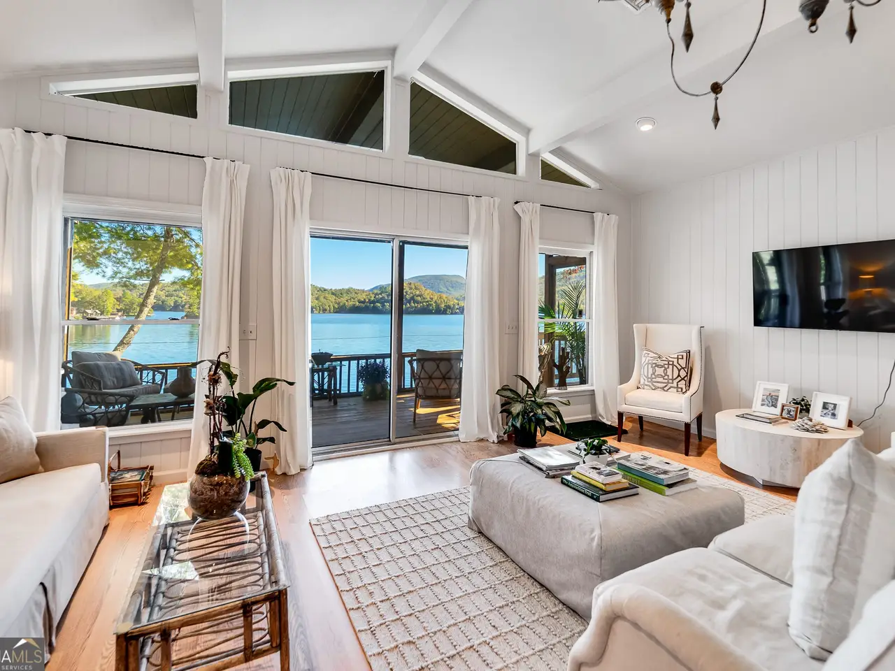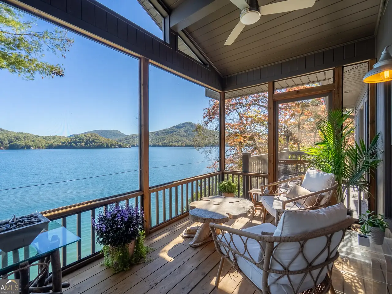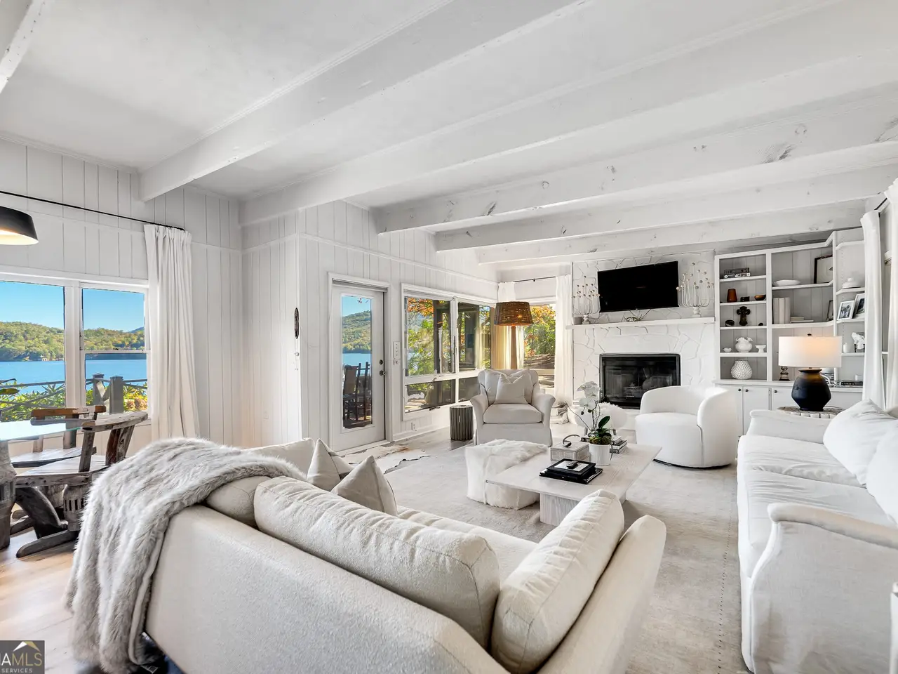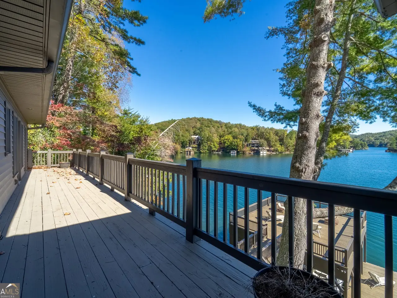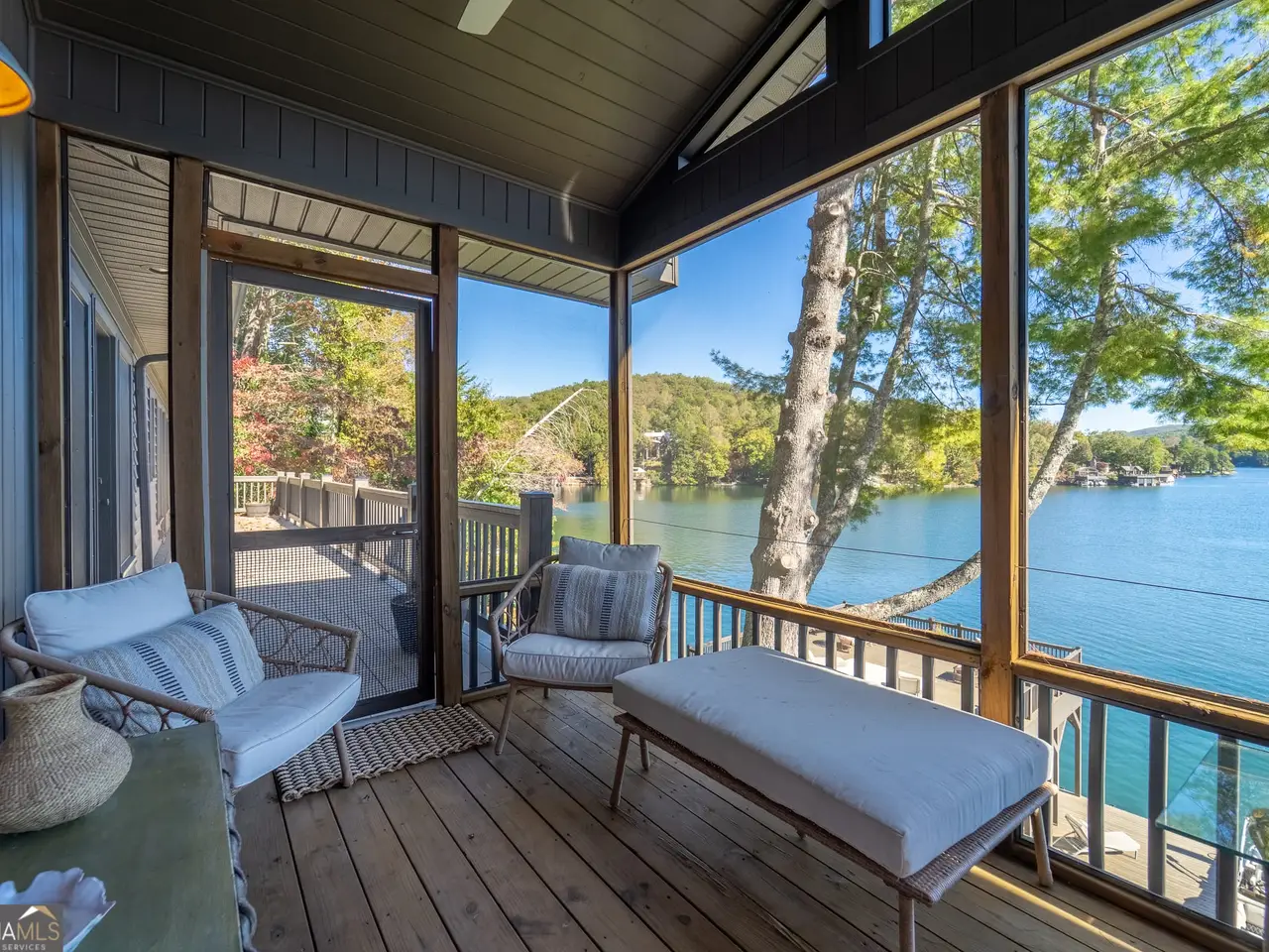 Enjoy fabulous sunrise views over Charlie Mountain from this 4 bedroom, 5 bath home on Lake Burton's big basin. This 1.34 acre property sits on deep water on the main body of Lake Burton with over 230' of shoreline. The freshly remodeled interior offers a vaulted great room with v-groove wood paneling and an all new kitchen with stainless appliances, new cabinetry and granite countertops. Enjoy expansive lake views through sliding glass doors that open to a lakeside screened porch and decks. The private master bedroom enjoys sunrise views over the lake from a private deck, a walk-in closet and newly remodeled en suite bath with a double vanity. Two spacious guest bedrooms on the main floor each enjoy lake views, walk-in closets, access to a lakeside deck and newly remodeled en suite baths. An oversized bedroom on the terrace level features lake views and a private full bath with double vanity. Also included on the terrace level are a second full bath, laundry room, kitchenette, dining area and living room with fireplace, all with lake views. A lakeside screened porch and ample decking are perched just above the lake overlooking sweeping mountain views. A new 2-story, 2-stall boathouse is easily accessed from the house and sits on deep water with coveted big water views. Don't miss this opportunity to own one of the best views on Lake Burton!