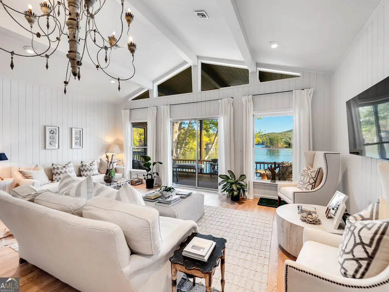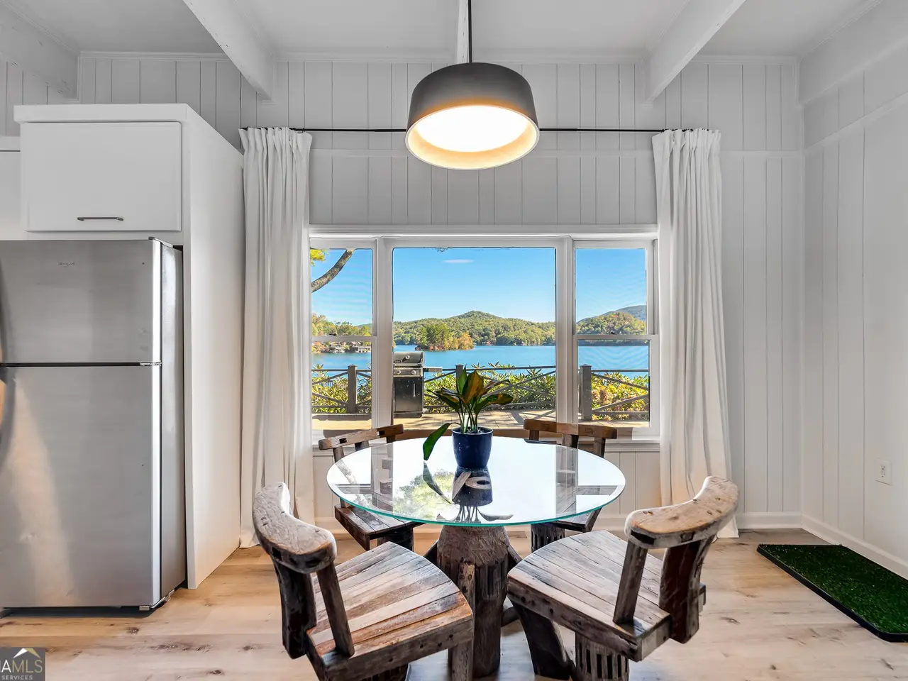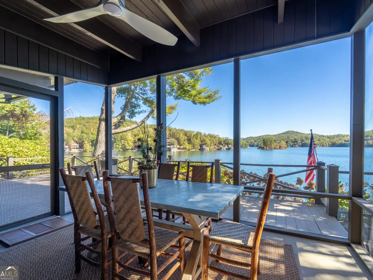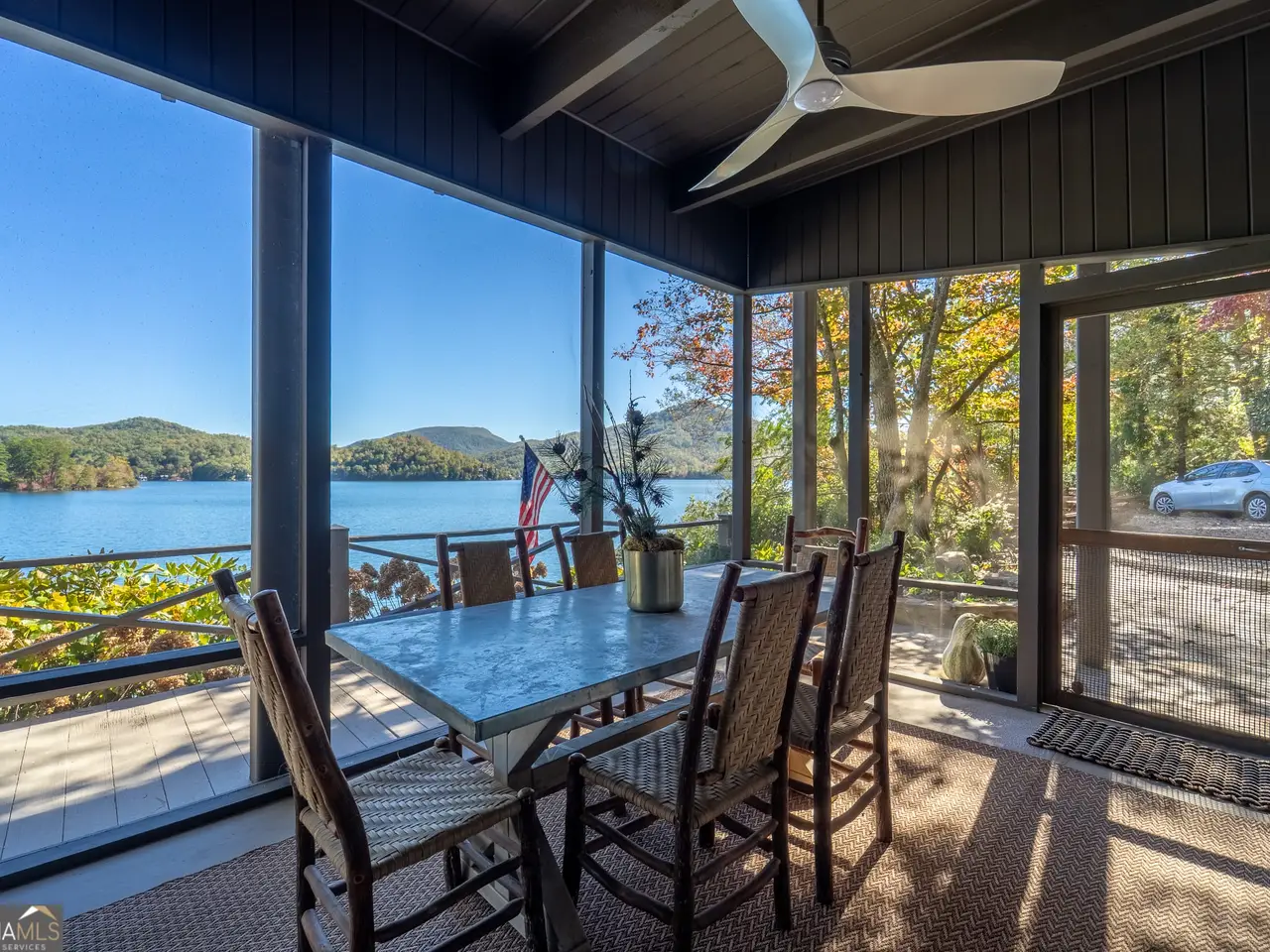 Enjoy fabulous sunrise views over Charlie Mountain from this 4 bedroom, 5 bath home on Lake Burton's big basin. This 1.34 acre property sits on deep water on the main body of Lake Burton with over 230' of shoreline. The freshly remodeled interior offers a vaulted great room with v-groove wood paneling and an all new kitchen with stainless appliances, new cabinetry and granite countertops. Enjoy expansive lake views through sliding glass doors that open to a lakeside screened porch and decks. The private master bedroom enjoys sunrise views over the lake from a private deck, a walk-in closet and newly remodeled en suite bath with a double vanity. Two spacious guest bedrooms on the main floor each enjoy lake views, walk-in closets, access to a lakeside deck and newly remodeled en suite baths. An oversized bedroom on the terrace level features lake views and a private full bath with double vanity. Also included on the terrace level are a second full bath, laundry room, kitchenette, dining area and living room with fireplace, all with lake views. A lakeside screened porch and ample decking are perched just above the lake overlooking sweeping mountain views. A new 2-story, 2-stall boathouse is easily accessed from the house and sits on deep water with coveted big water views. Don't miss this opportunity to own one of the best views on Lake Burton!