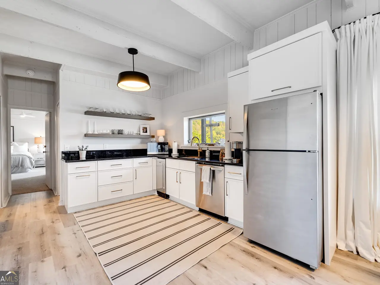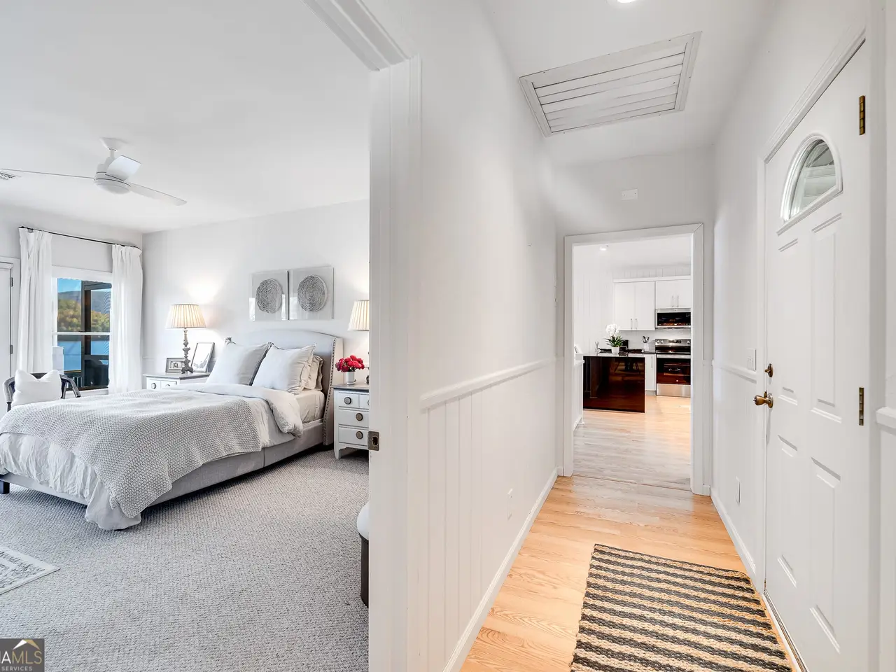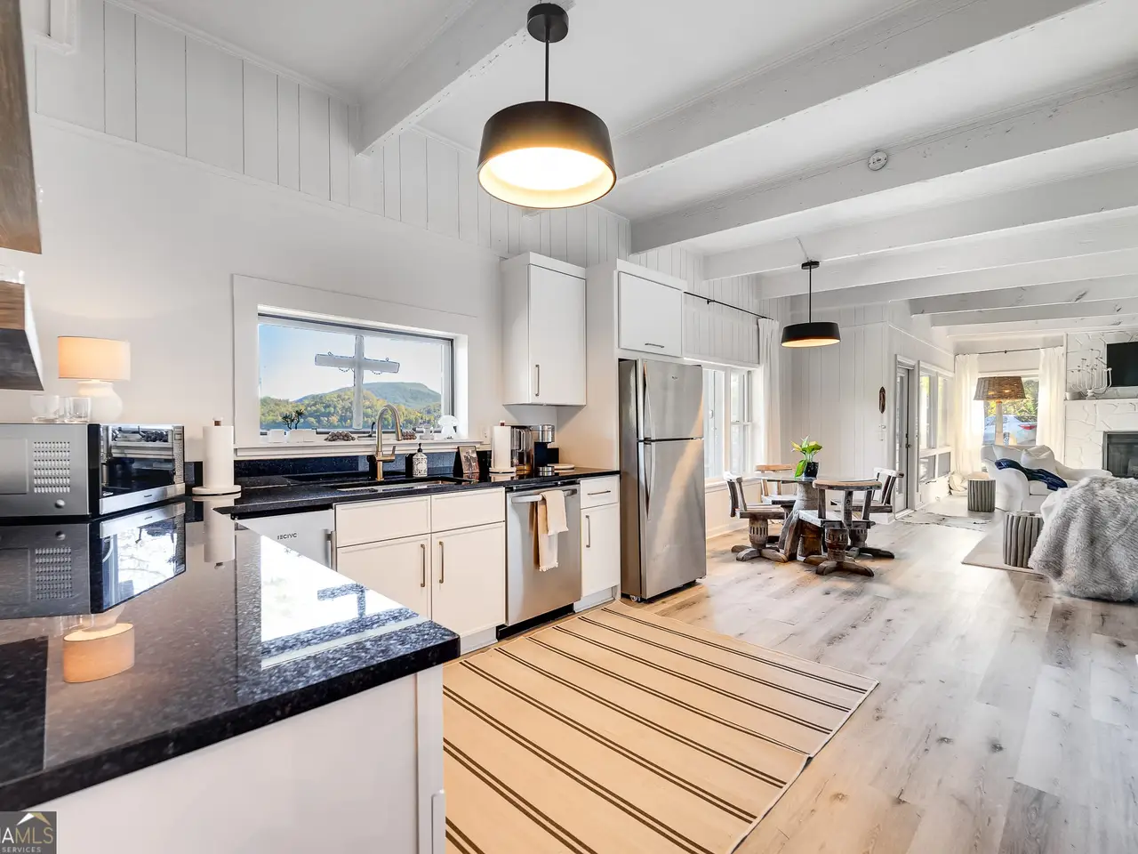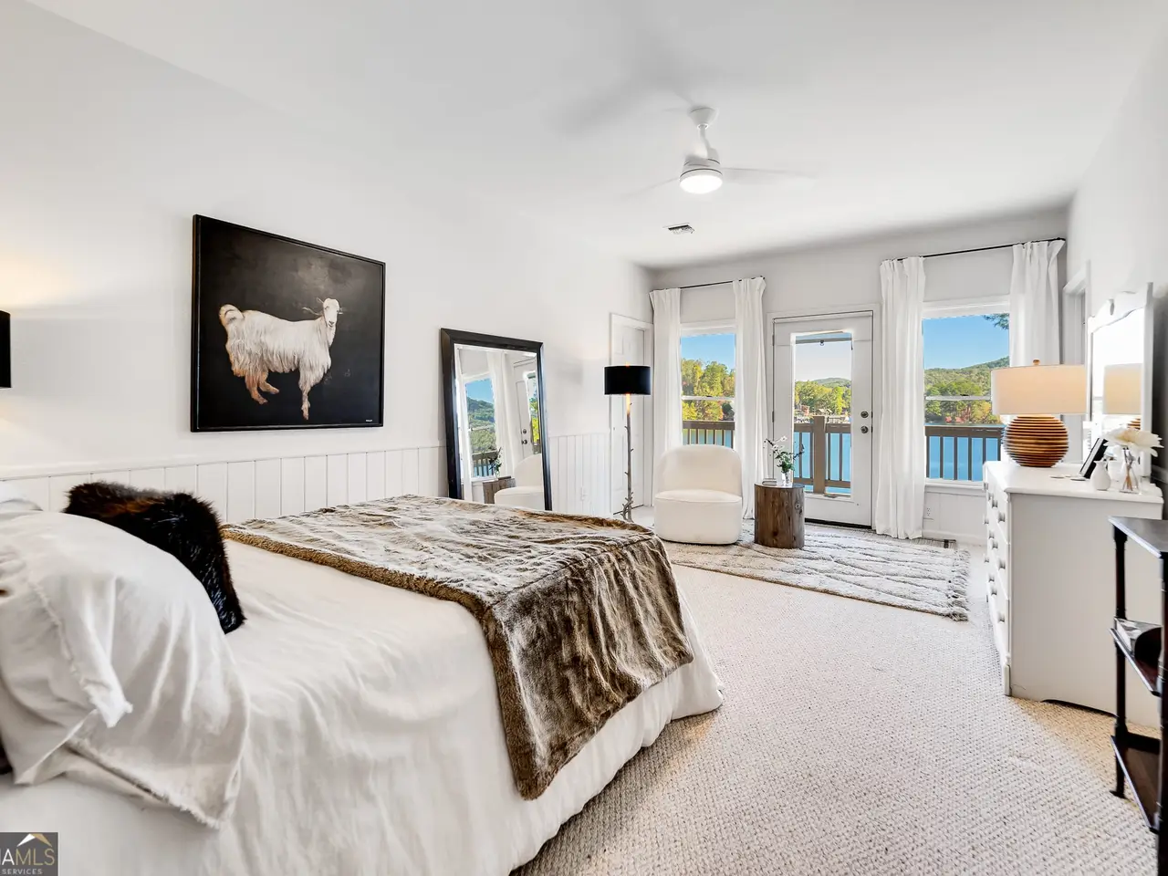 Enjoy fabulous sunrise views over Charlie Mountain from this 4 bedroom, 5 bath home on Lake Burton's big basin. This 1.34 acre property sits on deep water on the main body of Lake Burton with over 230' of shoreline. The freshly remodeled interior offers a vaulted great room with v-groove wood paneling and an all new kitchen with stainless appliances, new cabinetry and granite countertops. Enjoy expansive lake views through sliding glass doors that open to a lakeside screened porch and decks. The private master bedroom enjoys sunrise views over the lake from a private deck, a walk-in closet and newly remodeled en suite bath with a double vanity. Two spacious guest bedrooms on the main floor each enjoy lake views, walk-in closets, access to a lakeside deck and newly remodeled en suite baths. An oversized bedroom on the terrace level features lake views and a private full bath with double vanity. Also included on the terrace level are a second full bath, laundry room, kitchenette, dining area and living room with fireplace, all with lake views. A lakeside screened porch and ample decking are perched just above the lake overlooking sweeping mountain views. A new 2-story, 2-stall boathouse is easily accessed from the house and sits on deep water with coveted big water views. Don't miss this opportunity to own one of the best views on Lake Burton!