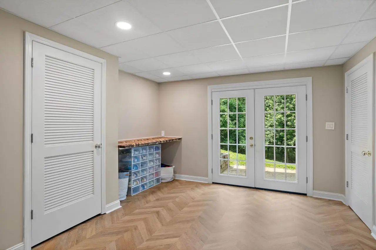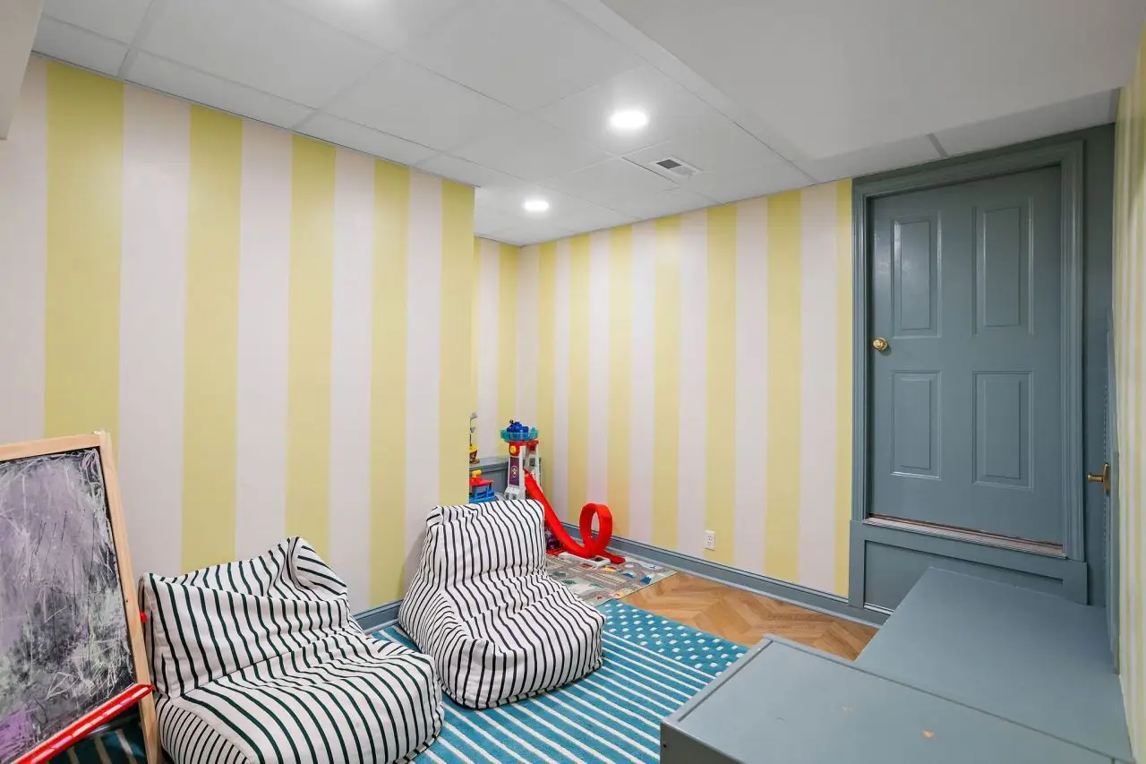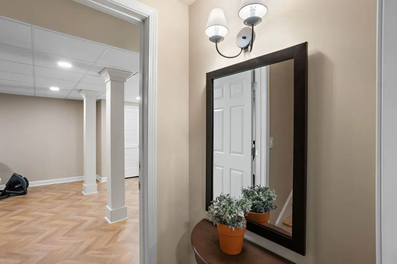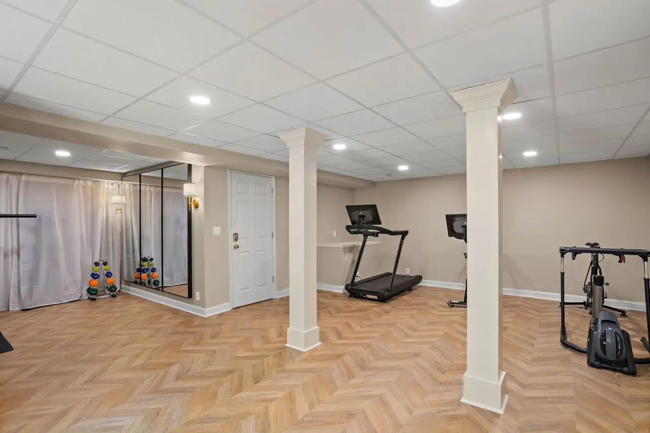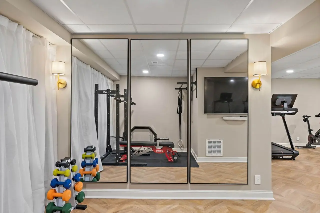 Stylish home gym in fully finished basement