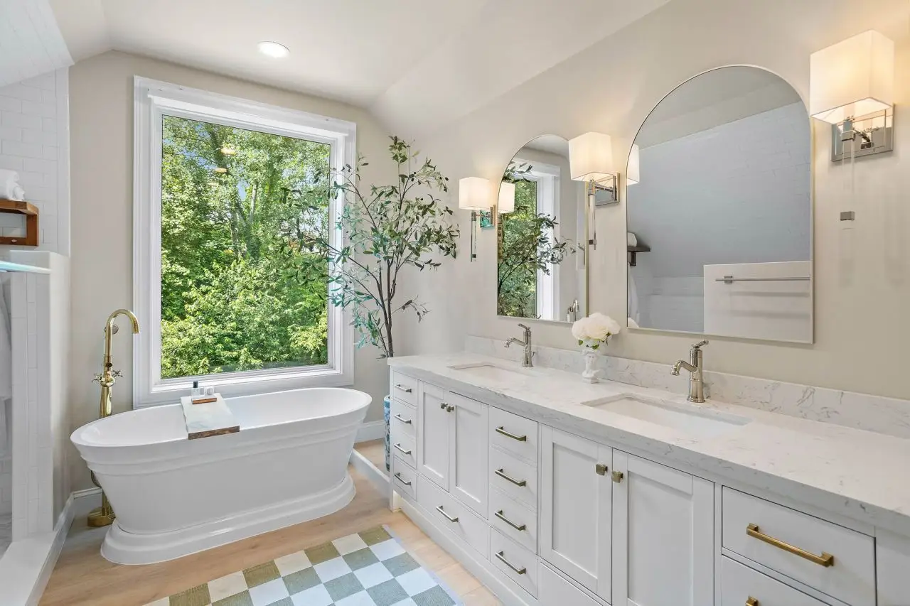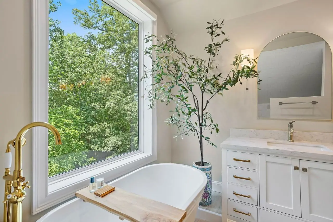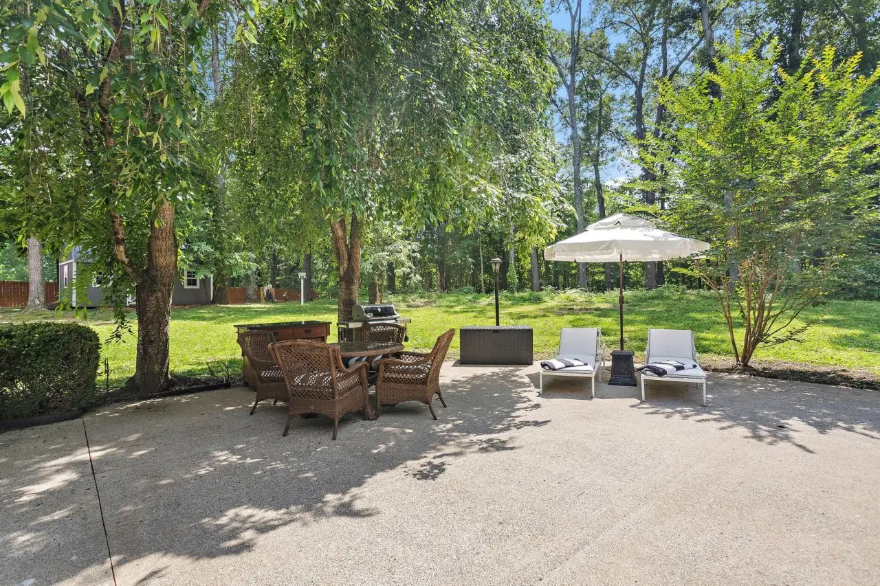 Serene backyard with lush landscaping