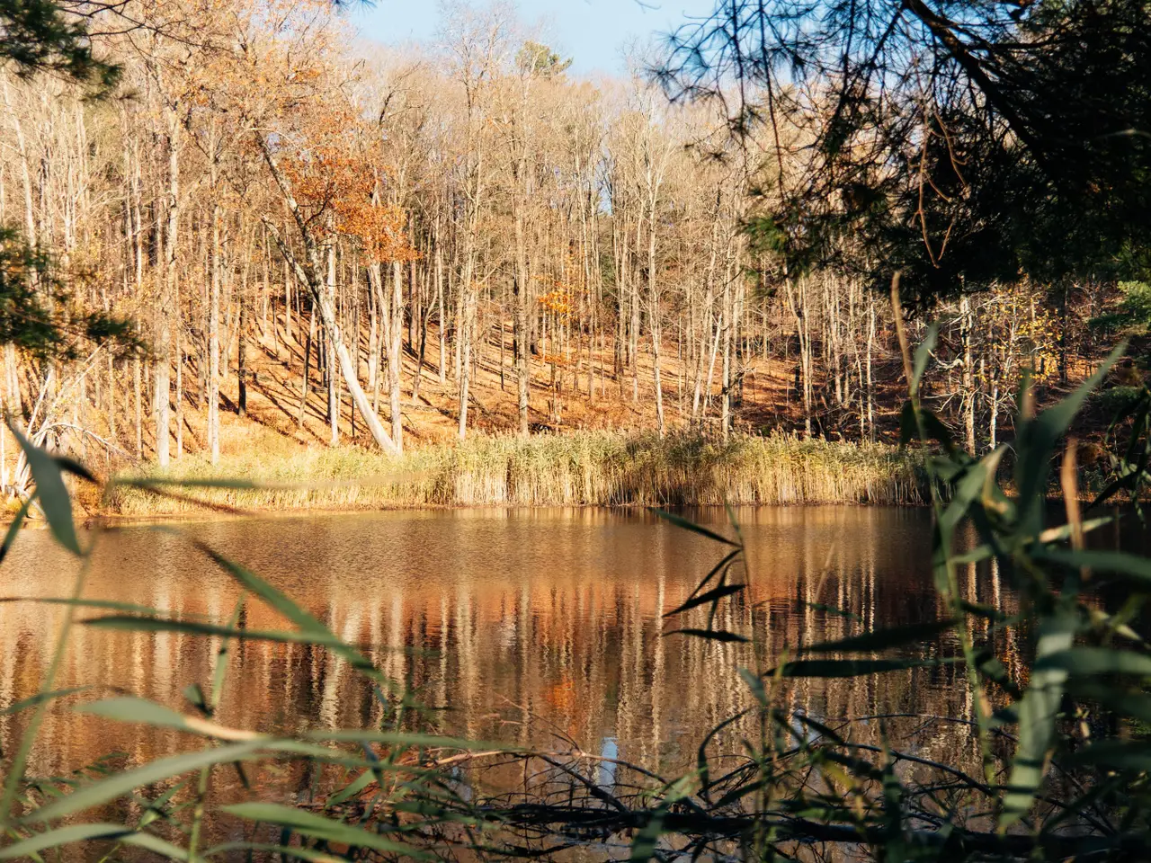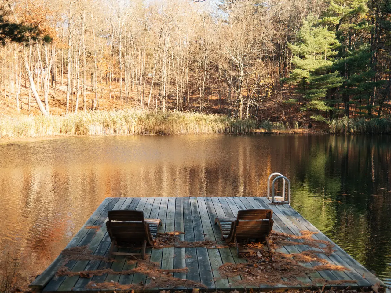 Private swimming pond with dock