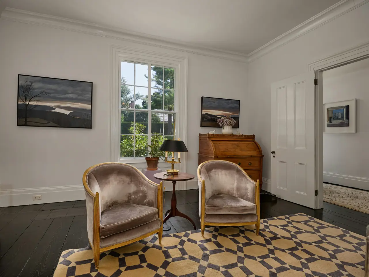 WILLIAM HENRY CHASE HOUSE On the "Gateway to Hudson" - a tree lined road graced with prominent historic homes- stands the William Henry Chase House; a stately Greek Revival residence set gracefully on four enchanting acres. Thoughtfully and comprehensively restored, the property reflects a true labor of love, where every element-from interior finishes and layout to the magical landscape beyond-has been designed with care, intention, and timeless appeal. Behind the iconic facade, interiors unfold with a quiet elegance and a sense of comfortable sophistication. A graceful entry hall is flanked by twin parlors, each anchored by a wood-burning fireplace framed in beautifully detailed mantels. Natural light pours in through tall windows, casting warmth across original wide-board floors, high ceilings and gracious rooms that blend timeless elegance with everyday ease. Off the east parlor, a screened-in porch overlooks the reflecting pool; a serene spot for quiet mornings, intimate gatherings, or listening to the chorus of birds and frogs. The inviting formal dining room-also serving as a library-offers the perfect setting for memorable dinners or quiet moments. Beyond lies the heart of the home: a bright, spacious and inviting eat-in-kitchen of beauty and functionality with views that spill out over the verdant landscape as thoughtfully designed as the house. Upstairs, the sumptuous primary suite offers a tranquil retreat. An additional en-suite, two more gracious bedrooms, and another elegant bath complete the private quarters. Storage throughout is surprisingly generous, a rare luxury in a house of this era including the original carriage house, modernized for your 3-car garage. Outdoors, the breathtaking landscape - designed by award-winning landscape architect Jamie Purinton - reveals itself in layers of inviting pathways, secluded seating areas, and seasonal beauty at every turn to feed your artful soul. Mature trees, your mini-orchard and established gardens create a rich, living backdrop that leads gently down to a marvelous cutting, vegetable and herb garden, a charming custom Amish-built garden house, and a peaceful pond that anchors the grounds with a sense of calm and rhythm. Modern comforts are subtly woven throughout, including super-efficient geothermal heating and cooling. Restored and designed by renowned professor of historical architecture where every choice has been made with an eye toward longevity, sustainability, and harmony with the home's original character Impeccable, tasteful, and effortlessly chic, the William Chase House is a rare offering-where history and modern life exist in quiet balance, wrapped in a storybook setting.