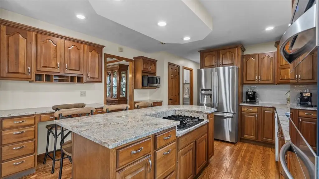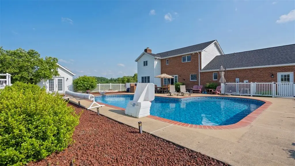 Find your escape in this beautiful Countryside Retreat! This stately home has been meticulously maintained with extras & updates galore. Welcome in & see the beautiful stair case & entry area flooded by natural light. Next, find a formal dining area & sunken living room, perfect for a music room or den. The gorgeous kitchen features stainless appliances, hardwood floors, granite countertops, & eat-in area with sliding doors to the pool patio. The adjoining cozy family room is equipped with a gas brick fireplace. Remodeled laundry room also on main floor. Upstairs, notice the large palladium window & seating area. The luxurious Owner's Ensuite was completely remodeled, offering a tiled walk-in shower, custom double vanity, linen closet & Closet by Design system. Ample size bedrooms 2 & 3 have a "secret passageway"! Downstairs find the large game room & workout room. Out back, enjoy the 40x16" pool, spa, & pool house! Detached tandem garage with oversized doors rounds out parking for 8!