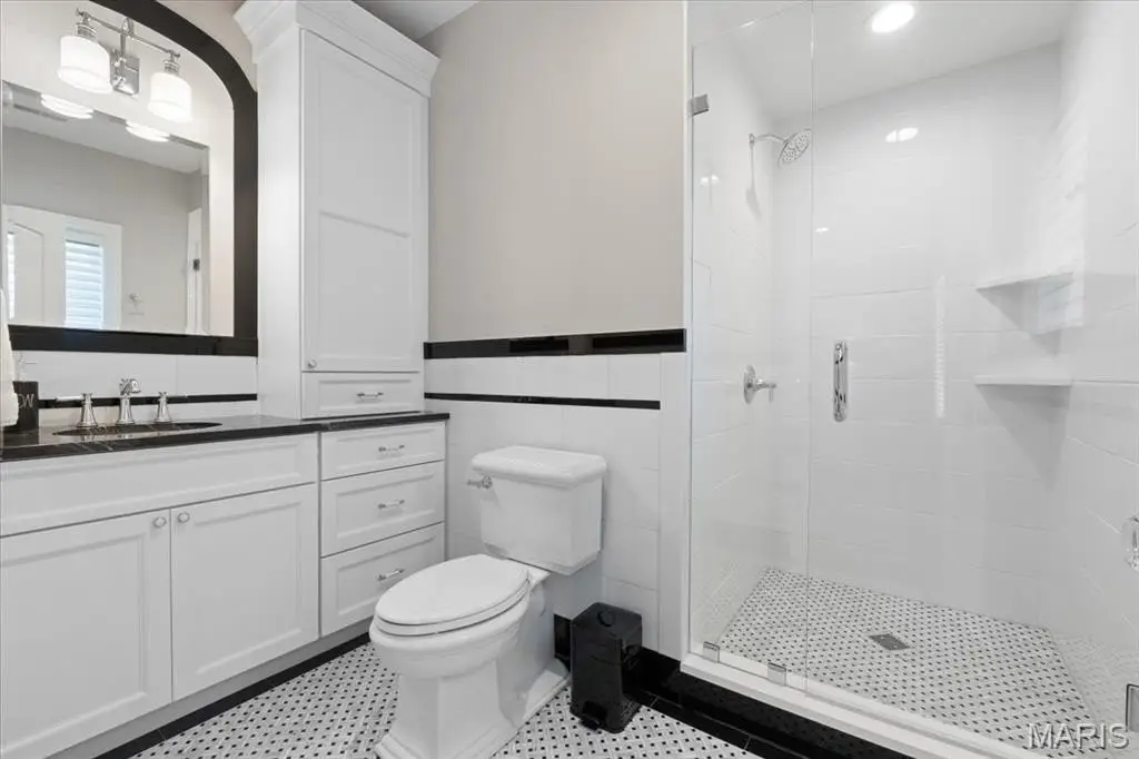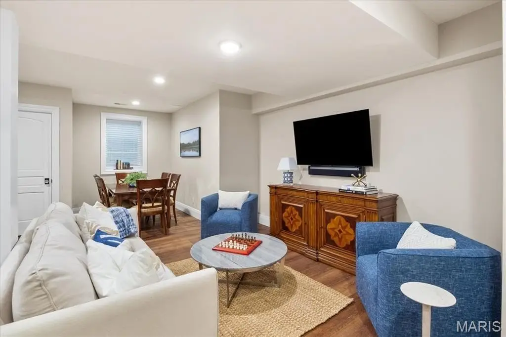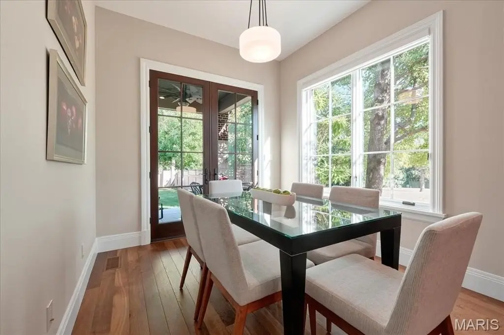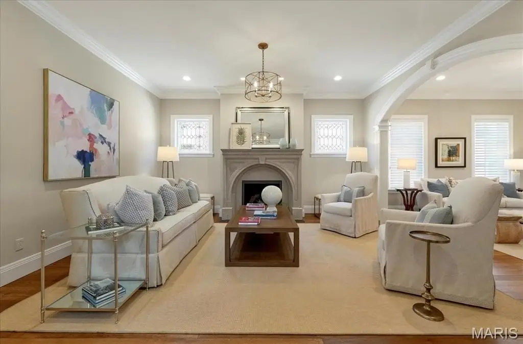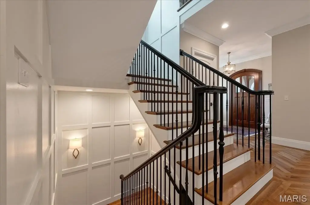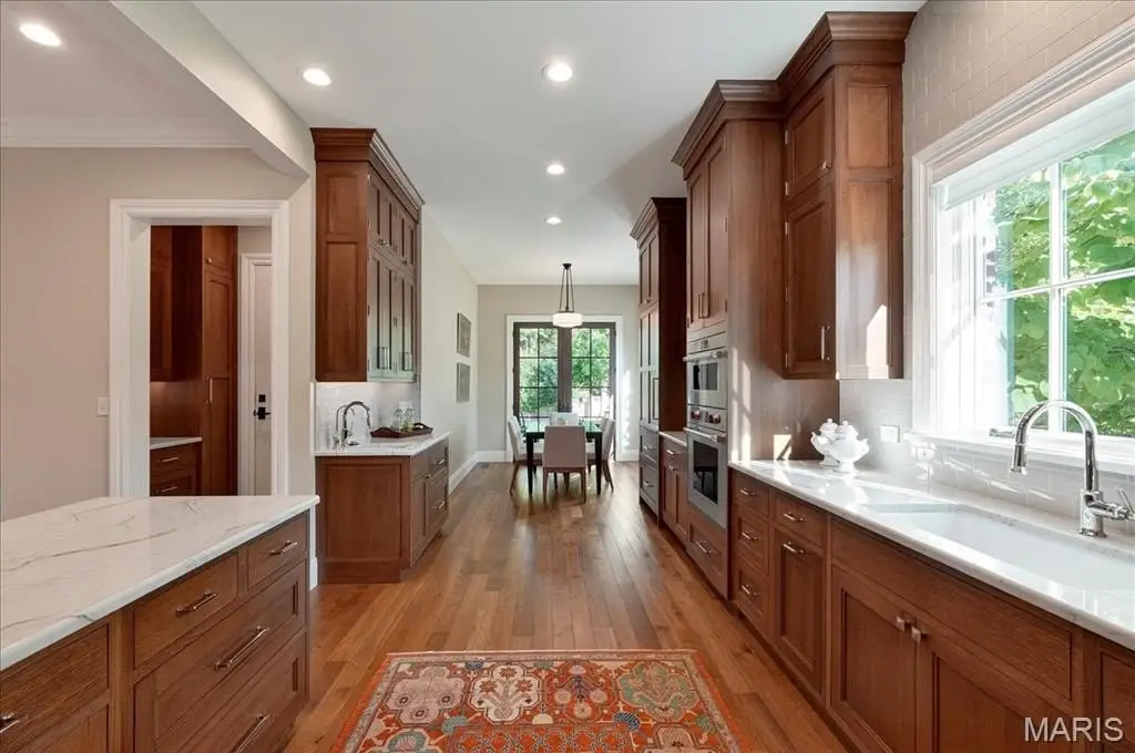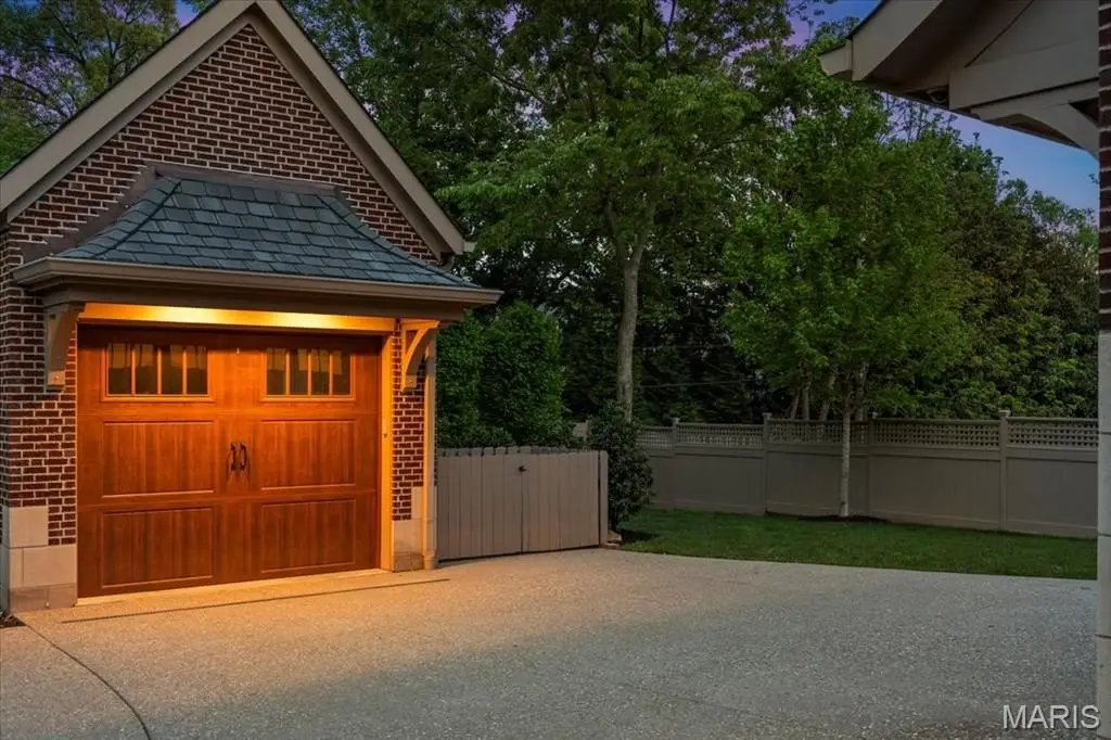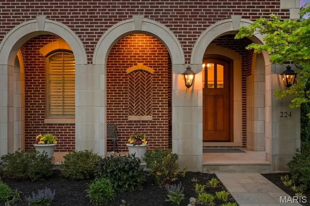 Constructed of brick and limestone, this newer home evokes the timeless charm of historic architecture while blending harmoniously into the surroundings of Old Town Clayton. Designed with impeccable attention to detail, the home boasts European oak floors, detailed moldings, and 10-foot and 9-foot ceilings on the main and second levels, offering refined comfort throughout. The gracious living room with a gas fireplace flows into a spacious dining area and a custom kitchen featuring rift-sawn Plato cabinetry, Sub-Zero and Wolf appliances, and a custom hammered stainless steel hood. The serene primary suite upstairs includes a versatile adjacent room, a large walk-in closet, and a luxurious bath with a soaking tub, steam shower, Vaughn sconces, and Robern cabinets. A second ensuite bedroom boasts restored Vitrolite tile, while a third bedroom has a direct access full bath. Completing the upper level is an oversized laundry room and a loft with leaded glass cabinetry and a window seat with views to downtown Clayton. A large family room with a wet bar, full bath, bedroom, and second laundry is found on the lower level. Additional features include geothermal HVAC, attached two-car and detached one-car heated garages, and an elevator shaft ready to serve all floors. Across from Taylor Park and within walking distance to Clayton’s shops and dining, this home offers luxury, location, and lifestyle. Optional adjacent duplex available for expanded living or investment.
