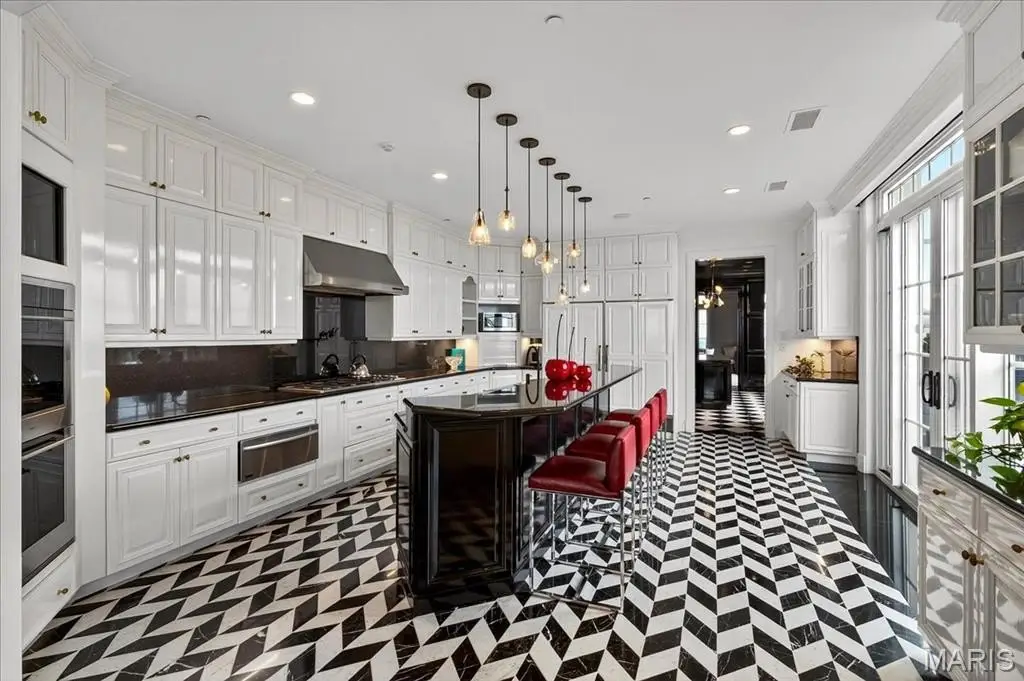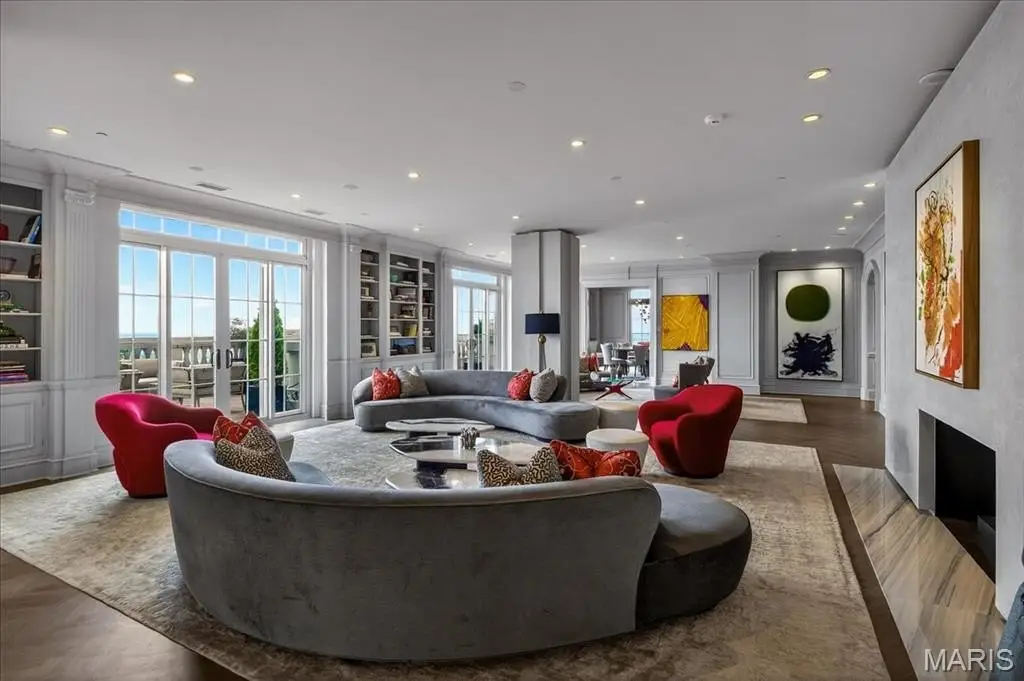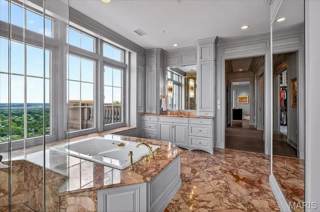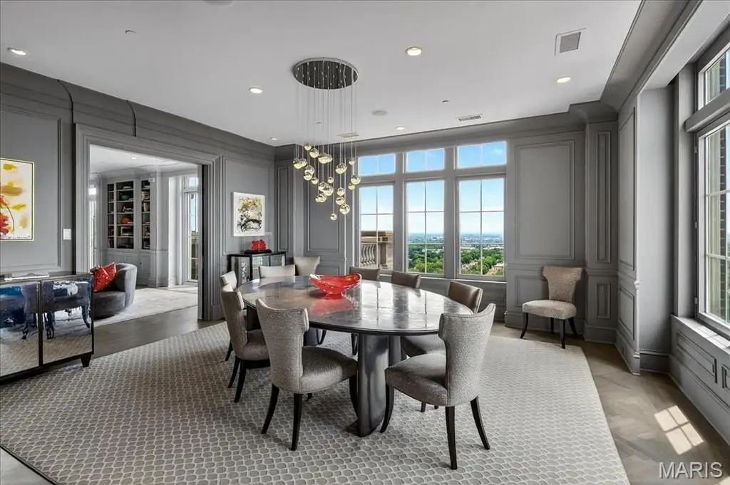 Welcome to the crown jewel of luxury living: this full-floor penthouse features 2800 square feet of outdoor living space across four expansive terraces with panoramic views in every direction. From your private elevator foyer, enter a residence of timeless architecture and refined design, showcasing exceptional millwork and custom walnut and ebony inlaid chevron floors. The Venetian-plastered living room serves as the elegant centerpiece, flanked by a formal dining room and a handsomely paneled library. Designed for entertaining and daily living, the kitchen boasts bold black-and-white marble floors, Wolf and Sub-Zero appliances, a large center island, and flows into the breakfast and family rooms. A lacquered Butler’s Pantry and Bar provides added serving space, while the 500-bottle wine room is ideal for collectors and hosts alike. The primary suite offers spectacular northern views, a sitting area, an office, and three oversized walk-in closets. The ensuite bath features dual water closets, a soaking tub, and a walk-in shower, creating a tranquil escape. Two additional bedroom suites provide comfort for family or guests, while a large laundry room with custom cabinetry and a full bath (formerly a fourth bedroom suite) adds flexibility. This extraordinary lifestyle includes 24-hour concierge service, valet parking, pool, fitness center, dog park, and four parking spaces, with Clayton’s finest eateries and boutiques just moments from your doorstep.