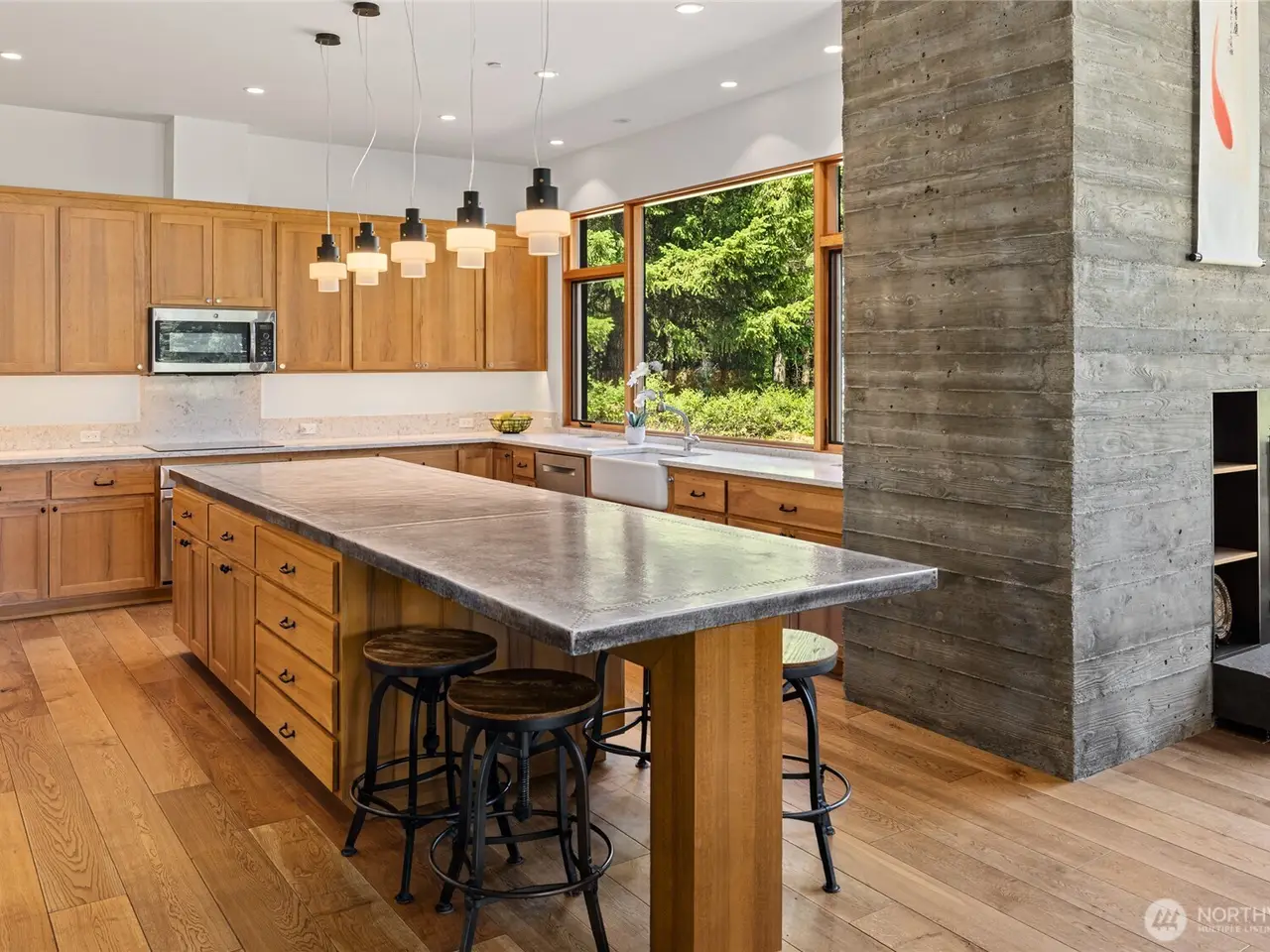 Oversized zinc island in chef's kitchen