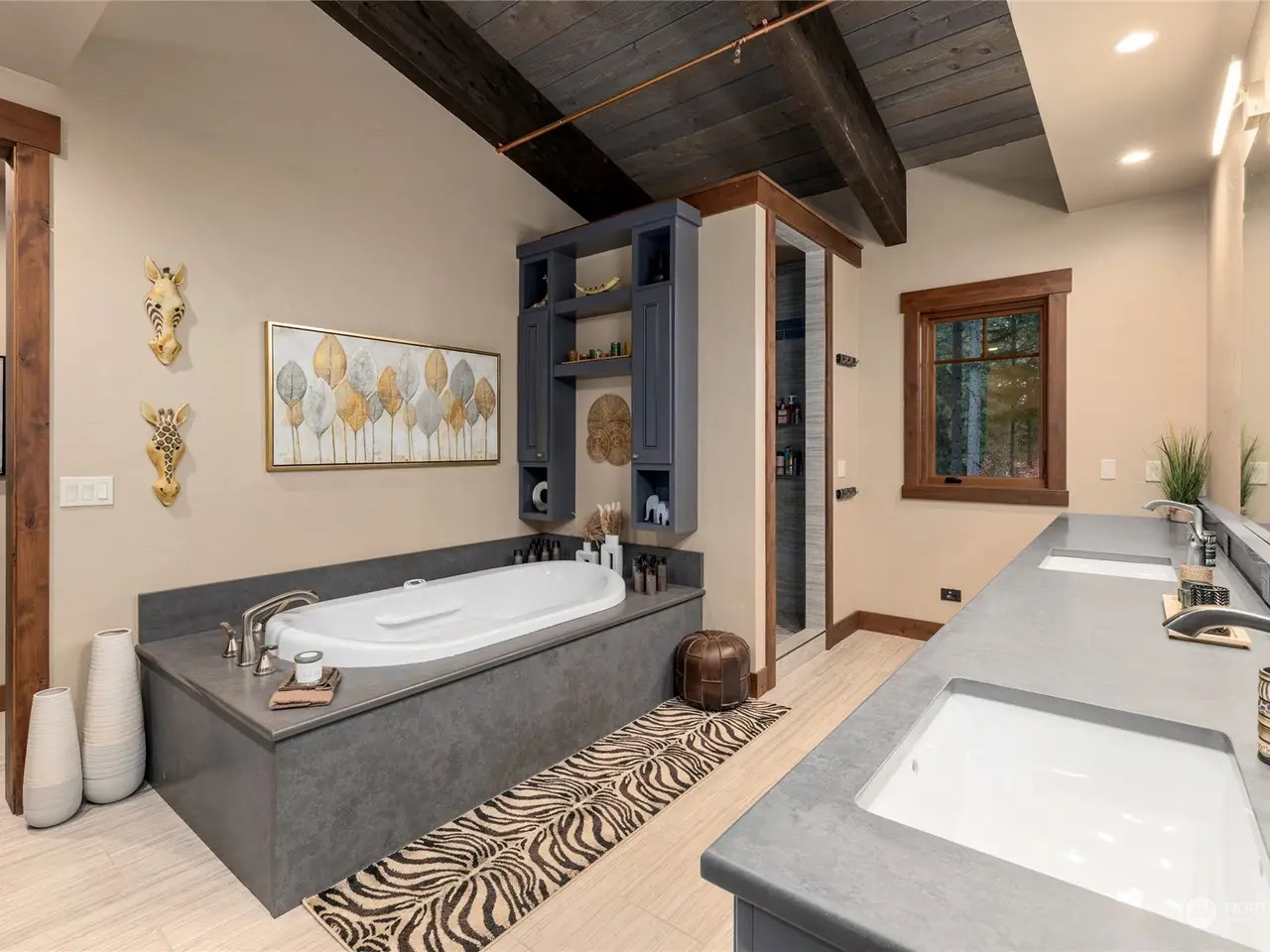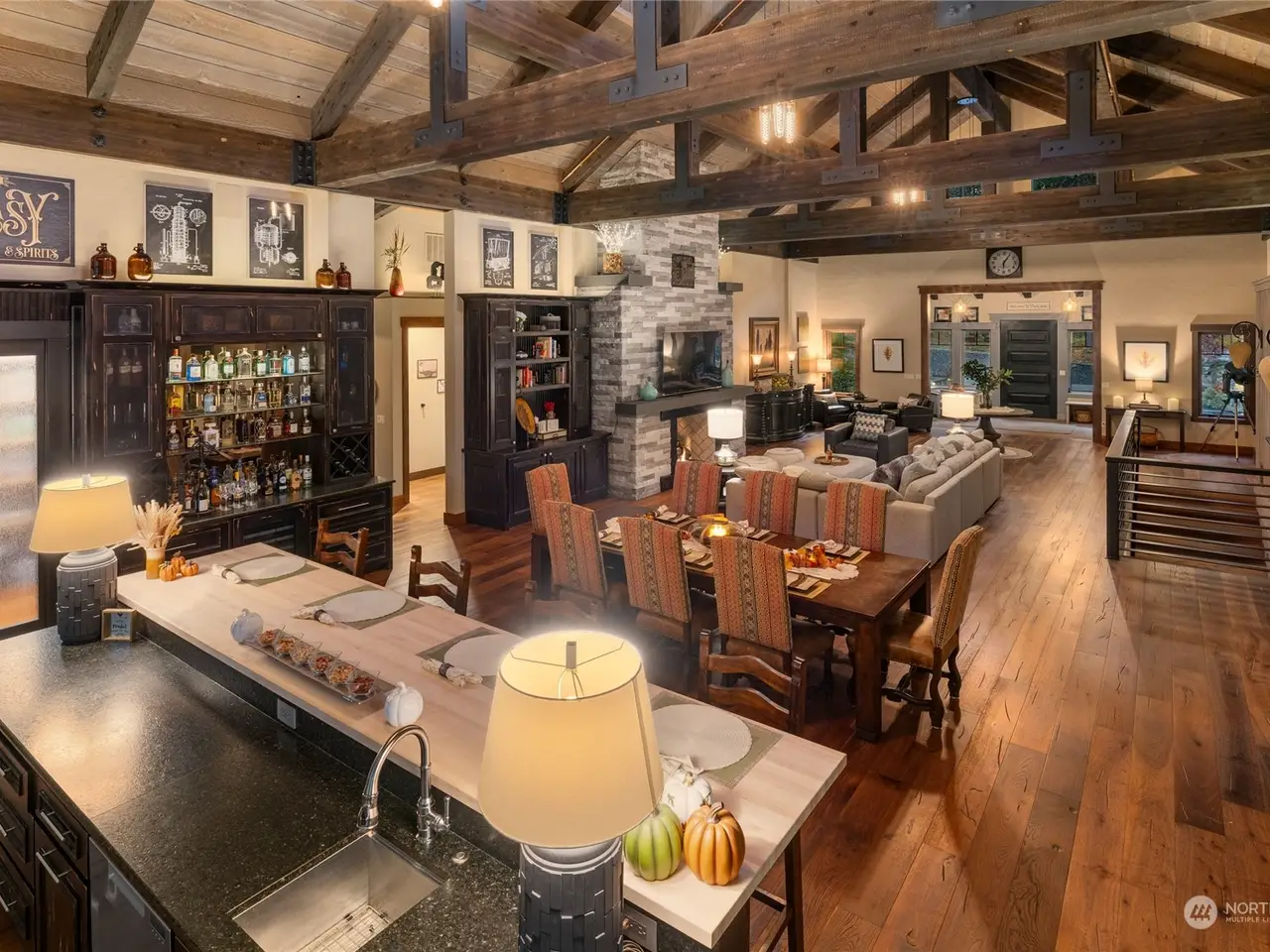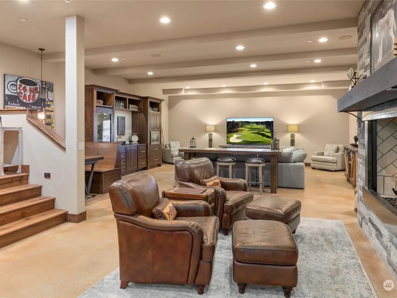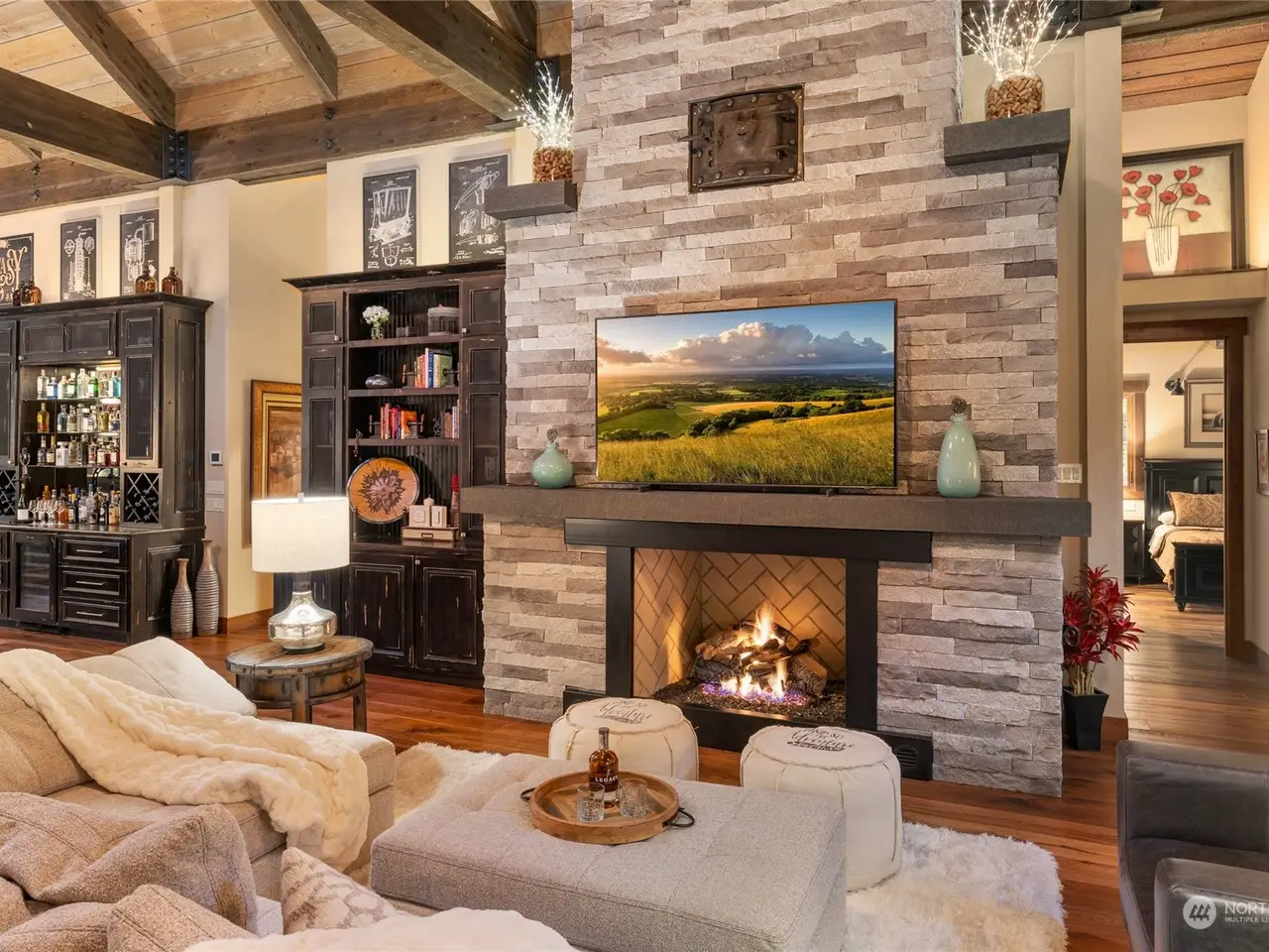Spectacular 5-Bedroom Estate w/ Mountain Views, Gorgeous Outdoor Living, & Luxury Finishes. Welcome to this breathtaking 7,260 sq. ft. custom estate nestled on a serene 1-acre lot. Featuring 5 luxurious ensuite bedrooms--3 conveniently located on the main floor--this home seamlessly combines comfort, elegance, and functionality. Entertain with ease in the two expansive great rooms, or retreat to the stunning 2,000 sq. ft. covered porch, perfect for year-round outdoor living. Enjoy partial mountain views as you grill in the fully lighted and heated BBQ area, or relax by the tranquil waterfall. The beautifully landscaped grounds offer a private bocce court, covered hot tub w/ mature trees & lush gardens creating a peaceful, park-like setting.