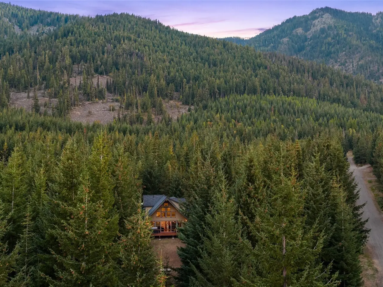 Experience the ultimate mountain retreat where luxury meets adventure on 3 acres with tranquil Stuart Mountain views. Custom-built with floor-to-ceiling windows to capture stunning vistas in every room. Designed with lifestyle in mind, the home offers 3 beds + a bonus space. Begin your mornings on the covered deck as the forest comes alive, and end your evenings soaking under the stars in the 7-person spa. The 1,400 sq. ft. garage, plumbed for heat & featuring a 13-foot RV bay door, boasts room for every toy, with miles of trails just beyond your driveway for year-round recreation. Just 4 miles from I-90, this sanctuary offers rare privacy, effortless convenience, & a daily lifestyle of both relaxation, & adventure! New carpet and paint!