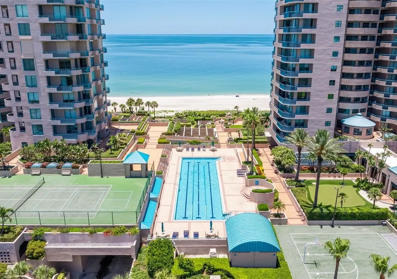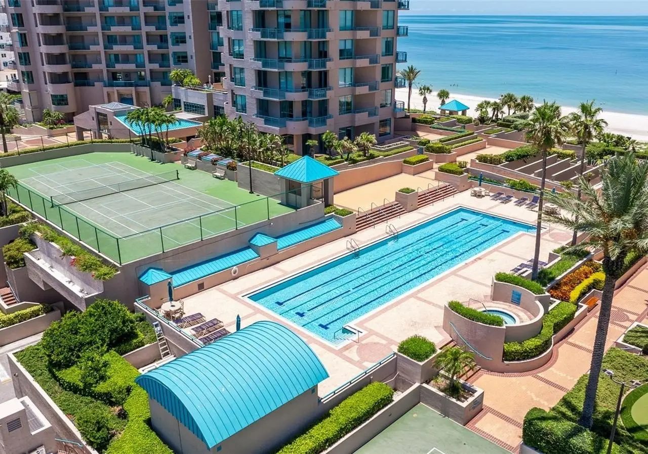 COMPLETELY UPDATED COASTAL CHIC 3 BEDROOM, 2.5 BATH DIRECT GULF FRONT CONDO!! Designer furnishings included & compliment the high end finishes in this elegant condo. Feel like you are on a cruise ship when you walk in with sweeping water views from every room of this 15th floor unit. See all the way to Honey Moon Island & beyond. Wrap around balconies off Liv/Din rooms and private balcony off Master Bedroom & Guestroom. Breathtaking Sunsets everyday! Porcelain tile floors throughout make for easy maintenance. Updated molding & baseboards. Kitchen completely opened up with painted wood cabinets, granite tops & subway tile backsplash. Cabinetry extends into dining area for great storage & serving space. Stainless steel appliances include an LG double oven range, microwave & refrigerator. Bosch dishwasher. A Gourmets delight!! All baths updated with custom vanities, granite & quartz tops. Guest bath has large walk-in shower & dual sink vanity with private water closet. Primary bath is like being at a spa. Huge walk-in shower with multiple shower heads & shower bench. Dual sink vanity with storage towers on each end. Huge walk-in closet with organizers. Large master bedroom with fantastic views. Sit in your master bed, drinking coffee while reading the paper, enjoying the gorgeous water views & watching the dolphin at play! Updated lighting throughout condo! Remote light filtering sun shades at all windows & sliders. Private Foyer with Semi-Private Elevator. PRIVATE GARAGE#28 within the parking garage. HURRICANE SHUTTERS are paid & will be installed in next couple weeks. The Ultimar is a world class condo complex on Sand Key of famous Clearwater Beach. Miles of pure white sand. Lush tropical landscaped grounds are expertly maintained. 24 hr guard gated. True Resort Style complex has 3 pools w/spas, 3 tennis courts, pickle ball, basketball ct, putting green, croquet lawn, grill area, firepit area, shuffleboard, corn hole, gym, steam & sauna, billiards rm, media rm, social rm with catering kitchen and baby grand piano. Walk to great restaurants & shops or catch the Beach Trolley right out in front of the building. A short drive to Tampa & the airport plus all of the sports venues of our championship teams & cultural centers. Call for your private tour today & START LIVING THE FLORIDA BEACH LIFESTYLE!! See video!