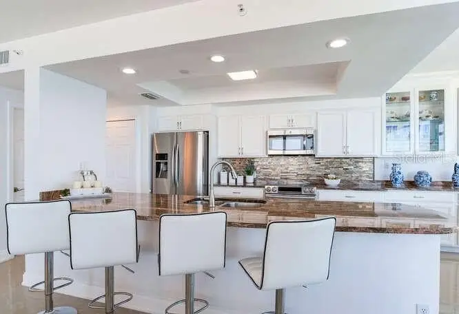 WELCOME HOME TO YOUR BEAUTIFULLY UPDATED, DIRECT BEACH-FRONT OASIS WITH AMAZING PANORAMIC VIEWS OF THE GULF OF MEXICO. IT HAS EVERYTHING YOU NEED, EVEN A PRIVATE GARAGE! WOW is the best way to describe this tastefully updated condominium with the Gulf of Mexico as your picturesque backdrop. THIS RARE AND HIGHLY SOUGHT-AFTER EXCEPTIONAL CONDO IS UNIQUELY POSITIONED ON THE NORTHWEST CORNER, OFFERING NOT ONLY UNOBSTRUCTED WEST VIEW BUT ALSO OPEN NORTHER VIEWS OF THE BEACH DUE TO THE NEIGHBORING COMMUNITY’S SETBACK, SHOWCASING SWEEPING VISTAS FROM THE GULF OF MEXICO TO CLEARWATER HARBOR. Upon entering this 3-bedroom, 2.5-bathroom spacious 1,942-sq-ft residence with open floorplan, you are greeted with an abundance of natural light and floor-to-ceiling glass, offering breathtaking panoramic water views from every room. Create lasting memories and enjoy watching sunsets from one of two balconies with incredible views. The west wrap-around balcony offers magnificent Gulf vistas, and the north balcony offers beautiful views of beach and bay! The kitchens feature contemporary cabinetry with gorgeous granite countertops, breakfast bar, and stainless-steel appliances. Adjacent to the kitchen is the dining area with magnificent open-water views. The Owner’s Suite features floor-to-ceiling sliding glass door and opens to a balcony where you can watch seasonal sunrise and feel cool gulf breezes with your morning coffee. The Ultimar on Sand Key is a desirable beachfront resort-style, gated community that offers a friendly, casual, yet luxurious lifestyle! Amenities include a clubroom with a full kitchen, TV/media center, billiard room and fitness room with steam/sauna. Outdoor amenities include three heated pools including a lap pool, three tennis courts, putting green, croquet lawn, basketball court, lush landscaping, on-site management and 24/7 guard-gate access. This condo comes with a private garage (#19) close to the semi-private lobby with coded elevator to your own floor for those looking for added privacy, security and accessibility. This property is convenient to shopping, restaurants, water activities, and to both Clearwater/St. Petersburg and Tampa International airports. Whether you’re seeking a dream vacation home or a luxurious year-round retreat, this rare direct Gulf-front gem offers a lifestyle without compromise. Schedule your private showing today!