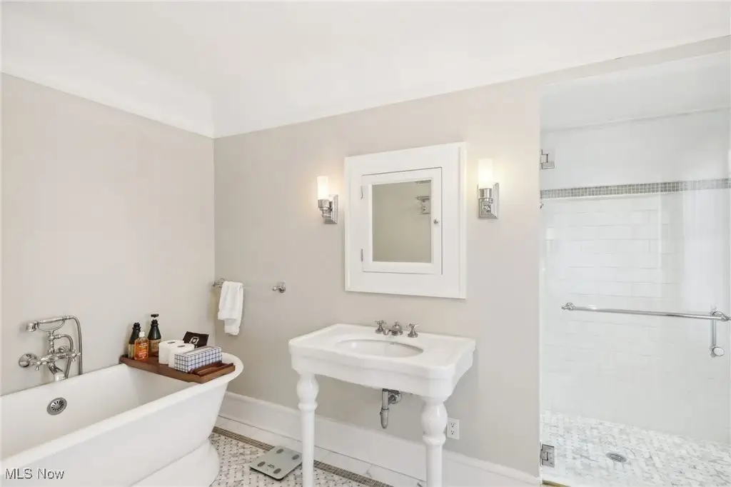 Tucked away at the end of a private brick-paved street, this classic Cleveland Heights colonial is an architectural treasure, offering over 6,000 square feet of extraordinary living space on nearly three acres of tranquility. Perfectly combining timeless charm with modern functionality, this home is ideal for both indoor and outdoor entertaining. Step into the stunning Moravian tile foyer, where leaded glass windows, plaster moldings, and fireplaces set a tone of elegance and warmth. The first floor features an impressive library, a spacious eat-in kitchen with soapstone countertops and a center island, a light-filled great room, and a huge foyer. Two half bathrooms and an enclosed porch add convenience and versatility to this level. Upstairs, the master suite is a luxurious retreat, complete with a dressing room, private deck, and a gorgeous bathroom with heated floors. Five additional bedrooms, two additional full bathrooms, a half bathroom, and a second-floor laundry room offer plenty of space for family and guests. The finished basement includes a bonus room and an additional full bathroom, perfect for a home gym, playroom, or office. Outside, your private oasis awaits. Relax on the enclosed porch or entertain on the newly installed stone patio overlooking the expansive, beautifully landscaped grounds. Additional outdoor amenities include a basketball court and a full playground. With its impeccable updates, timeless charm, and one of the largest lots in Cleveland Heights, this home is a rare gem. Don't miss your chance to make it your own - schedule your showing today!