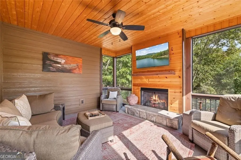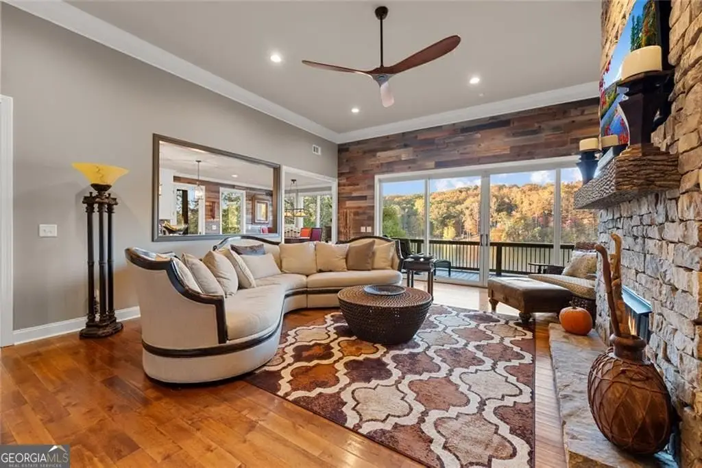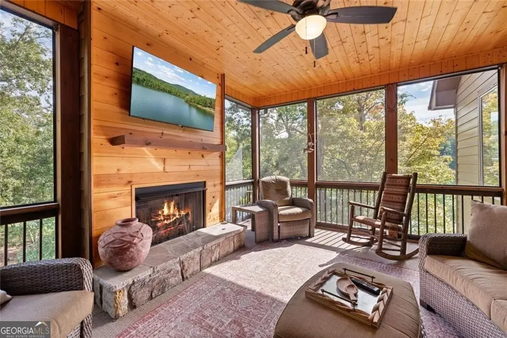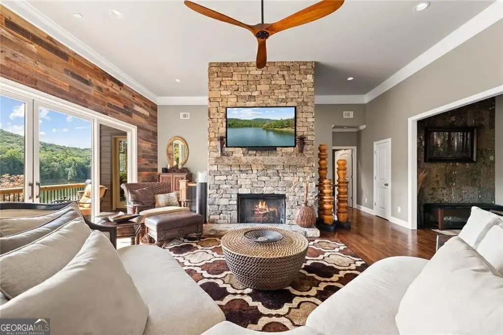 Luxurious Mountain and Lake Retreat at Lake Laceola, an Exclusive Gated Community Discover the perfect blend of elegance, comfort, and breathtaking scenery in this thoughtfully designed five bedroom, four bath home, nestled within one of the region's most sought-after, gated communities. From the moment you step inside, you're greeted by panoramic lake and mountain views framed by walls of windows, filling the spacious, open-concept living areas with natural light. Every detail has been carefully crafted, from luxury finishes to extensive custom cabinetry and thoughtful architectural touches throughout. Perfect for both intimate family living and grand entertaining, this retreat features a gourmet kitchen, an open great room with fireplace, a cozy screened in porch for enjoying crisp fall nights and a wood burning fireplace. The terrace level entertainment space, complete with billiards, bar, darts and a media theater allow for endless fun. You and your guests will be comfortable regardless of the weather with your whole house generator and tankless water heater. Enjoy the tranquility of your surroundings while still having access to first-class community features, including a clubhouse, swimming pool, private dock, pristine lake with trophy fishing. This Quiet (no-wake) lake allows for pontoons, kayaks, canoes and SUPs. You can access the lake from your backyard or from your boat in your boathouse. Outdoor enthusiasts will love the vistas from Yonah mountain, unlimited hiking trails, multiple near-by rivers, fly fishing and endless other recreational opportunities-all just outside your doorstep. This home isn't just a place to live-it's a sanctuary where luxury meets nature. Whether you're seeking a primary residence or an unforgettable vacation retreat, this property offers the perfect combination of high-end living and outdoor adventure.