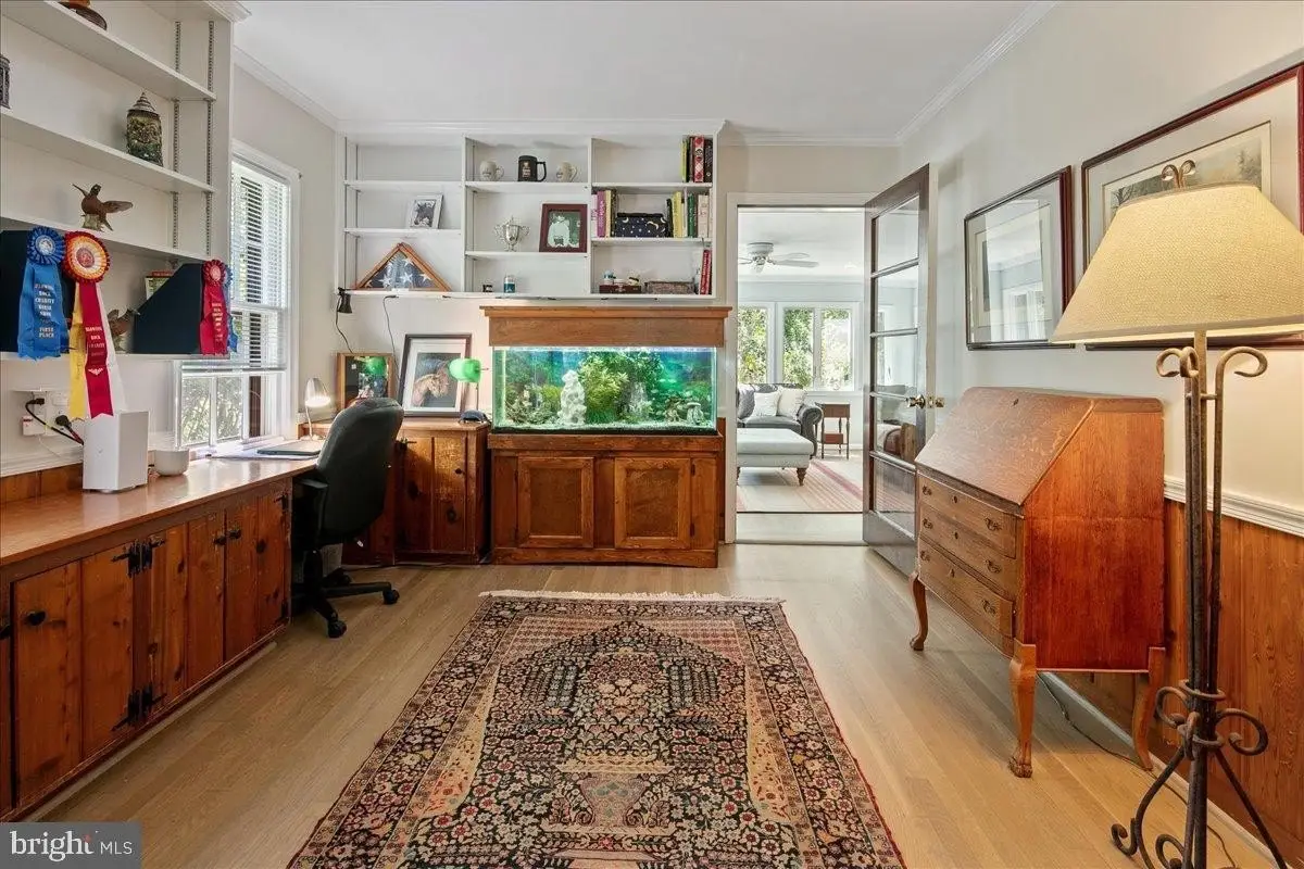 Welcome to this beautifully updated home that seamlessly blends modern design with timeless charm. Featuring a stunning open-concept kitchen, cozy living areas, and abundant natural light, this home offers both comfort and sophistication in every detail. Step into the heart of the home - an incredible gourmet kitchen designed to impress visually and functionally. Updated and expanded in 2023, the kitchen features a stunning Maldives leathered quartzite island (with no seams) with a built-in prep sink and bar seating that anchors the space. It is complemented by rich walnut cabinetry with integrated interior electrical outlets, and sleek Rugged Concrete Caesarstone quartz counters. Top-of-the-line appliances include a Wolf 6-burner gas stove with a custom hood, two dishwashers, and a cabinet-depth refrigerator and freezer. An eye-catching tile backsplash and oversized windows flood the space with light. Adjacent to the kitchen is a spacious family room with exposed wood ceiling beams and a classic brick fireplace, a perfect blend of rustic charm and modern amenities. Glass doors open to a beautiful outdoor patio, enhancing the indoor-outdoor connection. A glorious sunroom offers a relaxed retreat with wraparound windows, ideal for reading, relaxing, or hosting guests. This room is bathed in natural light and offers serene views of the surrounding pastures. The formal dining and living rooms are perfect for hosting gatherings, featuring white oak floors, plantation shutters, & custom draperies. The main level features a bedroom, currently used as an office, that includes a built-in desk. A full bathroom is also conveniently located on this level. Upstairs, the primary bedroom is a serene retreat with a walk-in closet & a beautifully updated en-suite primary bathroom with sleek double vanity, and a large, glass-enclosed walk-in shower with subway tiles. A second washer and dryer are a bonus in the primary suite. The upper level includes four bedrooms, all with hardwood floors, and two full bathrooms, both with double vanities. The finished lower level is an entertainer's dream, offering a versatile space for games and relaxation. A wet bar provides a perfect spot for serving drinks, and a large storage room with utilities offers abundant storage. Step outside to the fantastic outdoor living space, perfect for entertaining and enjoying the serene surroundings. The large patio features an outdoor kitchen, a hot tub, and two tranquil ponds. The property features a 5-stall center aisle horse barn, each with front and back doors leading to its own paddock and a wash stall. There's a separate hay barn, a grass schooling area, and multiple fenced turn-out pastures with elegant 3-board wood fencing. Direct access to incredible ride-out trails makes this a true equestrian's paradise. Beyond the barn, the expansive grounds include a sensational 100 x 50 vegetable garden, a chicken coop, and a tractor shed. A new roof was installed in 2018 and a new hot water heater in 2017. The grand circular driveway was upgraded in 2023 and provides an impressive entrance with an additional parking alcove, leading to a 2-car garage. This home is a perfect showcase of classic character and modern design.