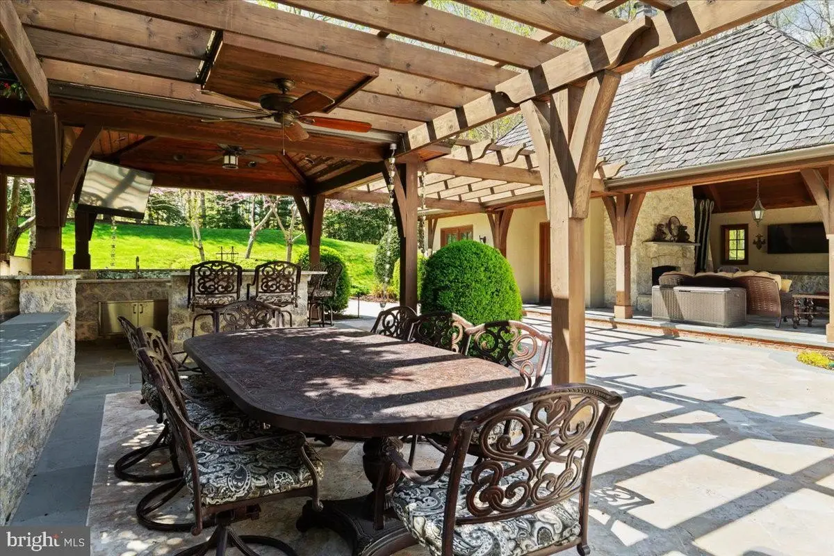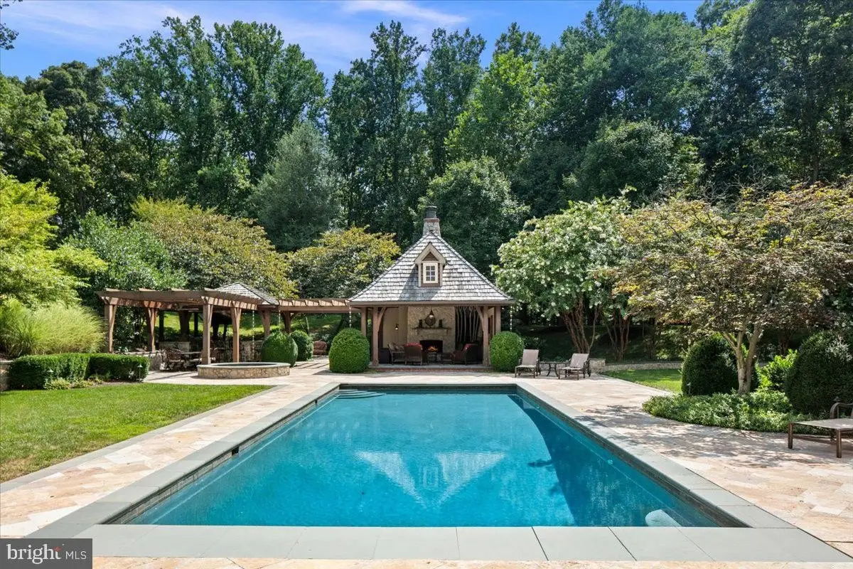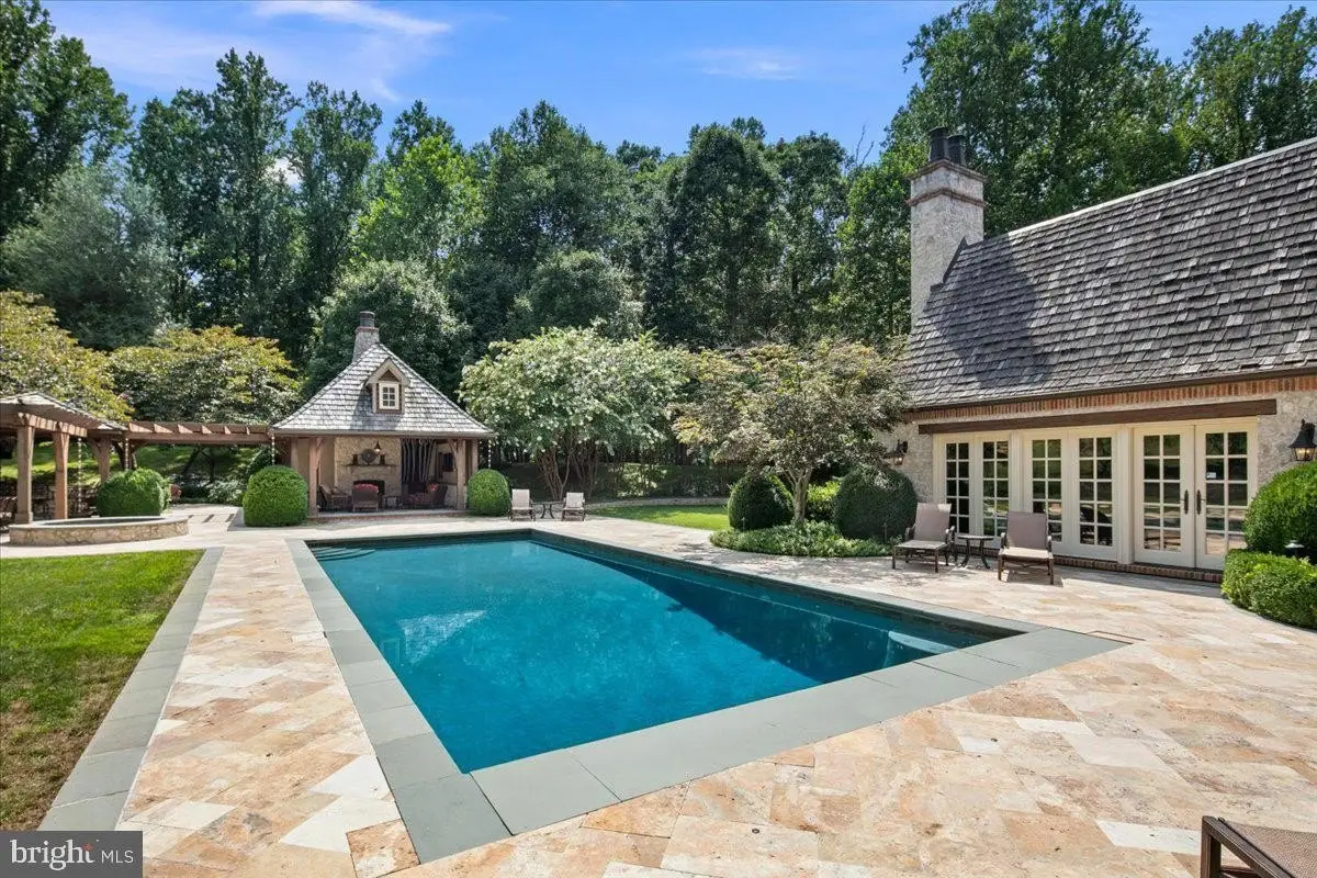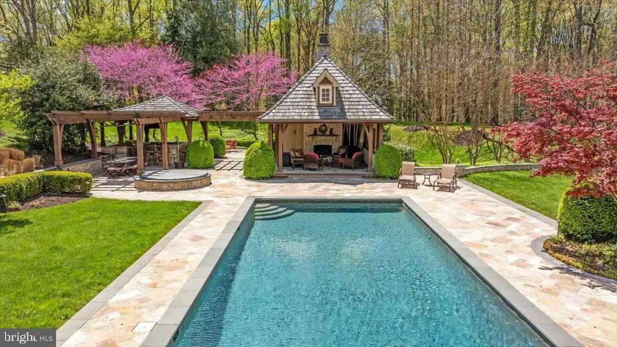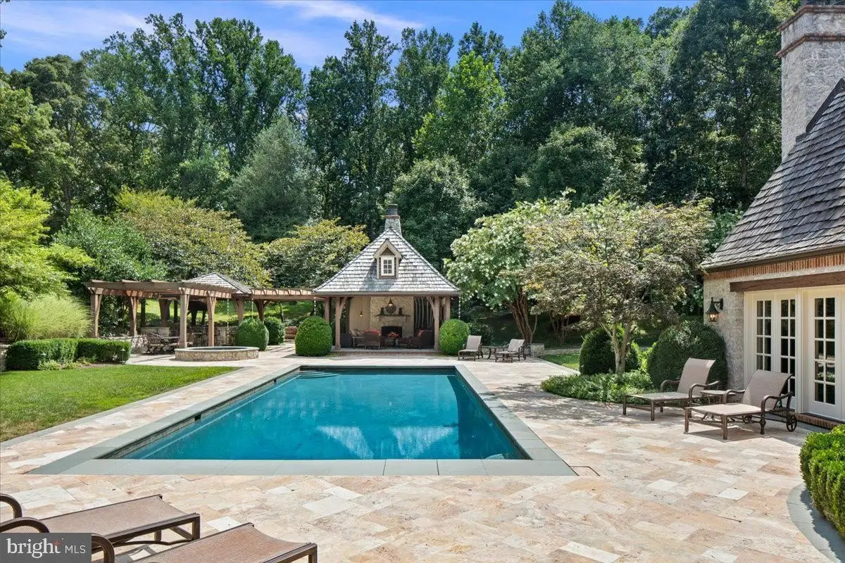 Imagine a sanctuary where meticulous craftsmanship meets resort-inspired living. This isn't just a home; it's a testament to enduring quality, a residence that whispers sophistication at every turn. The kitchen is a symphony of form and function, featuring exquisite Wood-Mode cabinetry, a professional-grade 48 Wolf range with a Wolf copper hood, complemented by a Sub-Zero refrigerator and two dishwashers. Thoughtful additions include a discreet drawer microwave, convenient Sub-Zero refrigerator and freezer drawers at the coffee bar, and a warming drawer. The first-floor primary suite is a haven of tranquility. Expansive double closets and a private fireplace invites cozy evenings. The spa-like primary bathroom is an indulgence for the senses. Privacy is paramount with separate his and hers sides with their own water closets and vanities. Her side features a luxurious all air-jetted tub with mood lighting & fireplace. The oversized shower features dual sets of high-precision Grohe fixtures, including handheld sprays, body sprays, and a rainfall showerhead. The family room offers an inviting retreat, highlighted by a dry bar with a fossilized stone counter. Above, impressive 8x8 Douglas Fir beams add architectural drama, while a stunning fireplace, crafted from marbleized cast stone with a firebox of reconstituted volcanic ash, provides a cozy focal point. The formal dining room is designed for memorable gatherings. Exquisite custom plaster molding, deep crown molding, and shadow boxes add architectural artistry. The magnificent great room is a study in scale and light, with soaring 22 ft ceilings and expansive 17 ft custom windows that frame the outdoors. Striking 10x10 Douglas Fir beams, reclaimed from 50-year-old dead standing trees in the Northwest and featuring hand-made plugs, add a touch of rustic grandeur. A second impressive fireplace, also made of marbleized cast stone and volcanic ash construction, commands attention. Step outside to a world of leisure with a resort-like pool setting that rivals the finest destinations. The exceptional pool house is a haven unto itself, featuring a beautifully appointed bedroom, a full bath, a television that gracefully descends from the ceiling & a cabana with a fireplace & TV. A second cabana connected by a beautiful pergola has an outdoor kitchen with TV. The ambiance is enriched by multiple zones of integrated speakers, and the automatic pool cover provides effortless maintenance. This incredible home also features a climate-controlled wine cellar and tasting room, a home theater, an enormous bonus game room, and a rejuvenating steam shower with a TV, a well-equipped home gym & a studio with a ballet barre. Architectural details such as 11 baseboards and elegant California corners with hand-cut moldings, showcase the meticulous attention to detail. Main & Upper level flooring is wide plank character grade rift & quartered white oak. All interior doors were handmade and all bathrooms are insulated for privacy. A whole-house generator provides peace of mind. The property is further enhanced by a dual-zone Invisible Fence, six fireplaces, three sets of laundry facilities, a basement wet bar with a dishwasher, two automatic ice machines, a whole-house water purification system, 5 Alladin light lifts, custom iron handrails and light switch plates, custom garage storage, and an oversized 3-car garage. The exterior is made of Over 130 tons of hand-quarried Midwestern stone, each piece selected for its subtle shimmer, create a facade of timeless grandeur, painstakingly installed over 3.5 months by 12 artisans employing a century-old slush and brush technique. Above, a hand sawn and cut cedar shingle roof, accented with gleaming copper valleys, roof caps, and striking 4' copper chimney caps, culminates in a distinguished copper cupola. This is more than a residence; it's a legacy, a testament to uncompromising quality and a life lived beautifully.