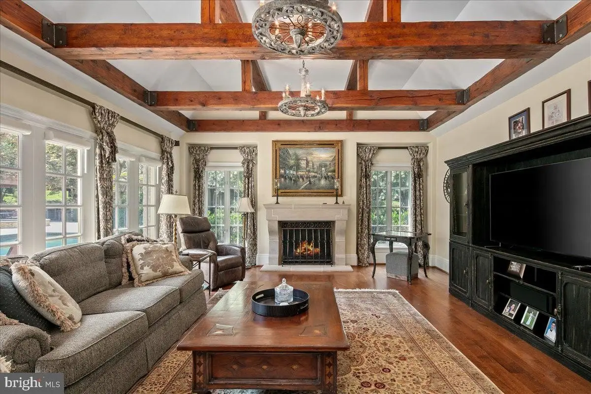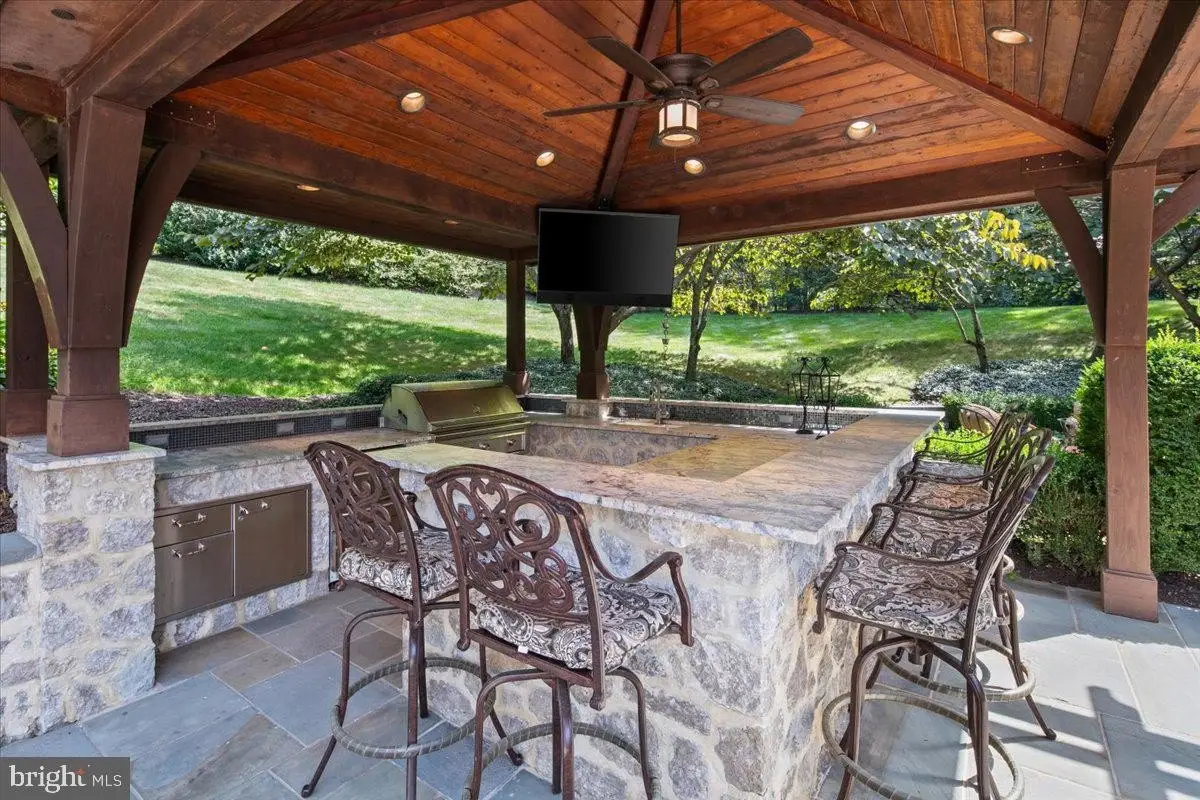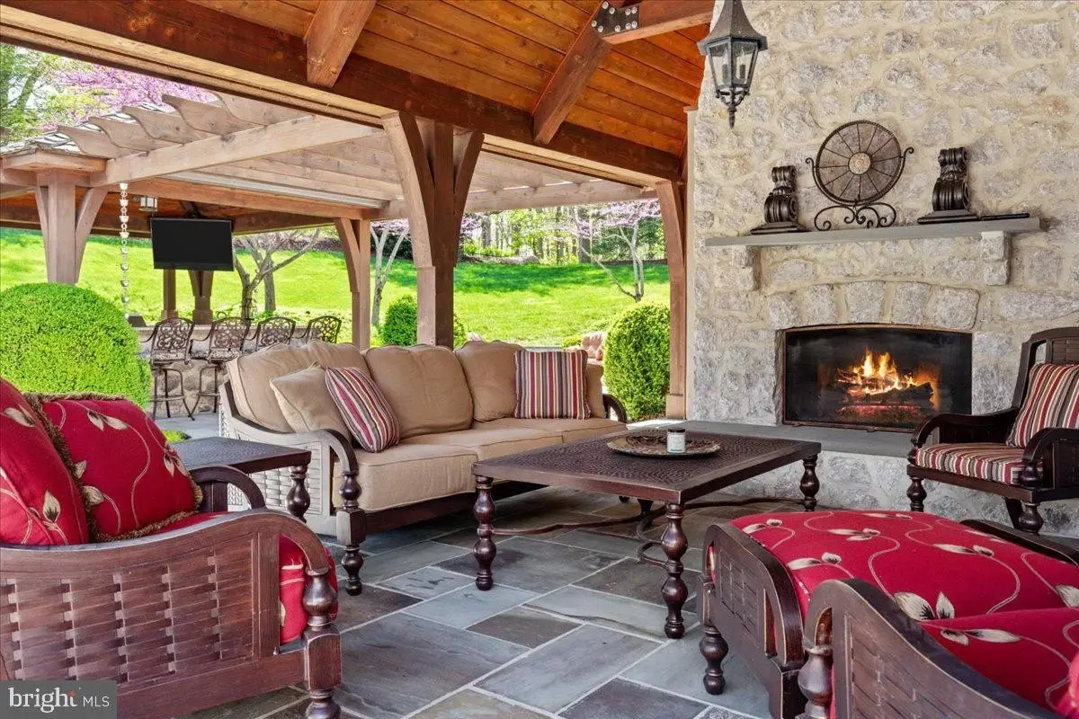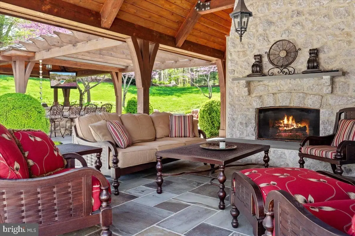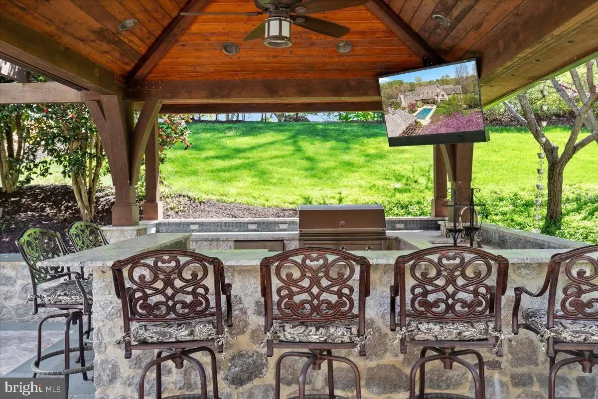 Imagine a sanctuary where meticulous craftsmanship meets resort-inspired living. This isn't just a home; it's a testament to enduring quality, a residence that whispers sophistication at every turn. The kitchen is a symphony of form and function, featuring exquisite Wood-Mode cabinetry, a professional-grade 48 Wolf range with a Wolf copper hood, complemented by a Sub-Zero refrigerator and two dishwashers. Thoughtful additions include a discreet drawer microwave, convenient Sub-Zero refrigerator and freezer drawers at the coffee bar, and a warming drawer. The first-floor primary suite is a haven of tranquility. Expansive double closets and a private fireplace invites cozy evenings. The spa-like primary bathroom is an indulgence for the senses. Privacy is paramount with separate his and hers sides with their own water closets and vanities. Her side features a luxurious all air-jetted tub with mood lighting & fireplace. The oversized shower features dual sets of high-precision Grohe fixtures, including handheld sprays, body sprays, and a rainfall showerhead. The family room offers an inviting retreat, highlighted by a dry bar with a fossilized stone counter. Above, impressive 8x8 Douglas Fir beams add architectural drama, while a stunning fireplace, crafted from marbleized cast stone with a firebox of reconstituted volcanic ash, provides a cozy focal point. The formal dining room is designed for memorable gatherings. Exquisite custom plaster molding, deep crown molding, and shadow boxes add architectural artistry. The magnificent great room is a study in scale and light, with soaring 22 ft ceilings and expansive 17 ft custom windows that frame the outdoors. Striking 10x10 Douglas Fir beams, reclaimed from 50-year-old dead standing trees in the Northwest and featuring hand-made plugs, add a touch of rustic grandeur. A second impressive fireplace, also made of marbleized cast stone and volcanic ash construction, commands attention. Step outside to a world of leisure with a resort-like pool setting that rivals the finest destinations. The exceptional pool house is a haven unto itself, featuring a beautifully appointed bedroom, a full bath, a television that gracefully descends from the ceiling & a cabana with a fireplace & TV. A second cabana connected by a beautiful pergola has an outdoor kitchen with TV. The ambiance is enriched by multiple zones of integrated speakers, and the automatic pool cover provides effortless maintenance. This incredible home also features a climate-controlled wine cellar and tasting room, a home theater, an enormous bonus game room, and a rejuvenating steam shower with a TV, a well-equipped home gym & a studio with a ballet barre. Architectural details such as 11 baseboards and elegant California corners with hand-cut moldings, showcase the meticulous attention to detail. Main & Upper level flooring is wide plank character grade rift & quartered white oak. All interior doors were handmade and all bathrooms are insulated for privacy. A whole-house generator provides peace of mind. The property is further enhanced by a dual-zone Invisible Fence, six fireplaces, three sets of laundry facilities, a basement wet bar with a dishwasher, two automatic ice machines, a whole-house water purification system, 5 Alladin light lifts, custom iron handrails and light switch plates, custom garage storage, and an oversized 3-car garage. The exterior is made of Over 130 tons of hand-quarried Midwestern stone, each piece selected for its subtle shimmer, create a facade of timeless grandeur, painstakingly installed over 3.5 months by 12 artisans employing a century-old slush and brush technique. Above, a hand sawn and cut cedar shingle roof, accented with gleaming copper valleys, roof caps, and striking 4' copper chimney caps, culminates in a distinguished copper cupola. This is more than a residence; it's a legacy, a testament to uncompromising quality and a life lived beautifully.