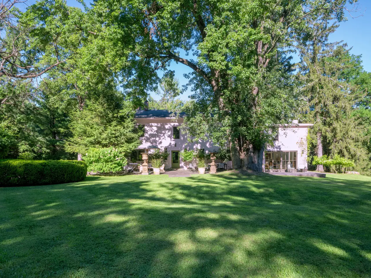 Nestled in the quaint hamlet of Clinton Corners, this rare and tasteful 18th-century Georgian stone house offers classic proportions and timeless charm on beautifully established, landscaped grounds. The home seamlessly blends original architectural details including preserved woodwork, deep sill windows, six fireplaces, refinished floors, and classic Georgian symmetry with modern updates such as central air, new windows, and a dramatic wall of windows overlooking the terrace. A 10-foot-wide hallway runs the length of both floors, with Dutch doors at either end, leading to well-appointed rooms including a formal living room, dining room, TV/family room, and a large kitchen all with fireplaces plus a full bathroom on the main level. The attached cottage adds functionality with a mudroom/laundry area, second kitchen, sunroom, studio space, and an additional bedroom and bathroom on the upper level. In the main house, the second floor features four spacious bedrooms and two full bathrooms. Surrounded by mature trees, high fencing, and rolling countryside, this meticulously maintained property is just 10 minutes from Millbrook, 20 minutes from Rhinebeck, and close to all that the Hudson Valley has to offer making it the perfect full-time residence or idyllic weekend retreat.