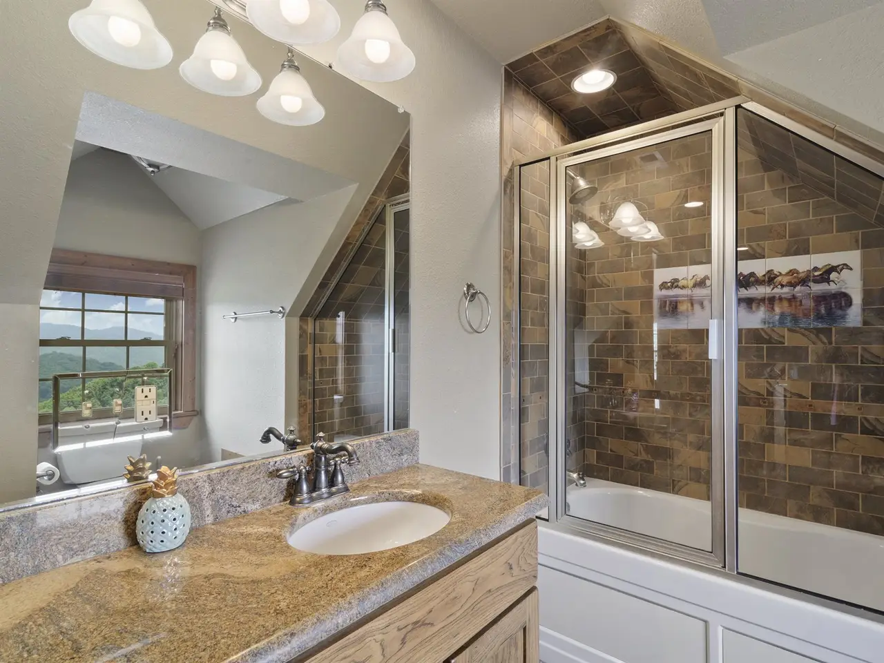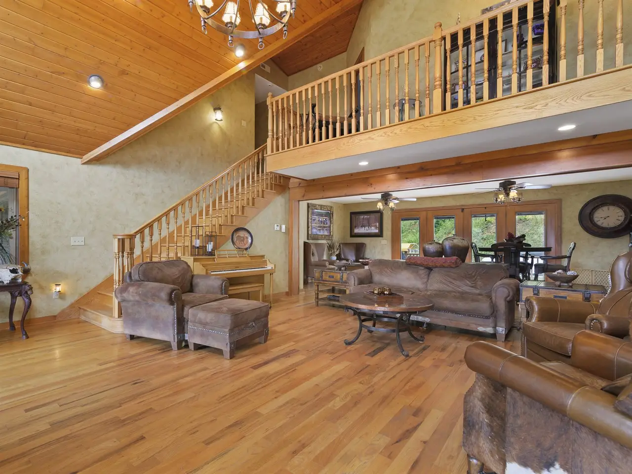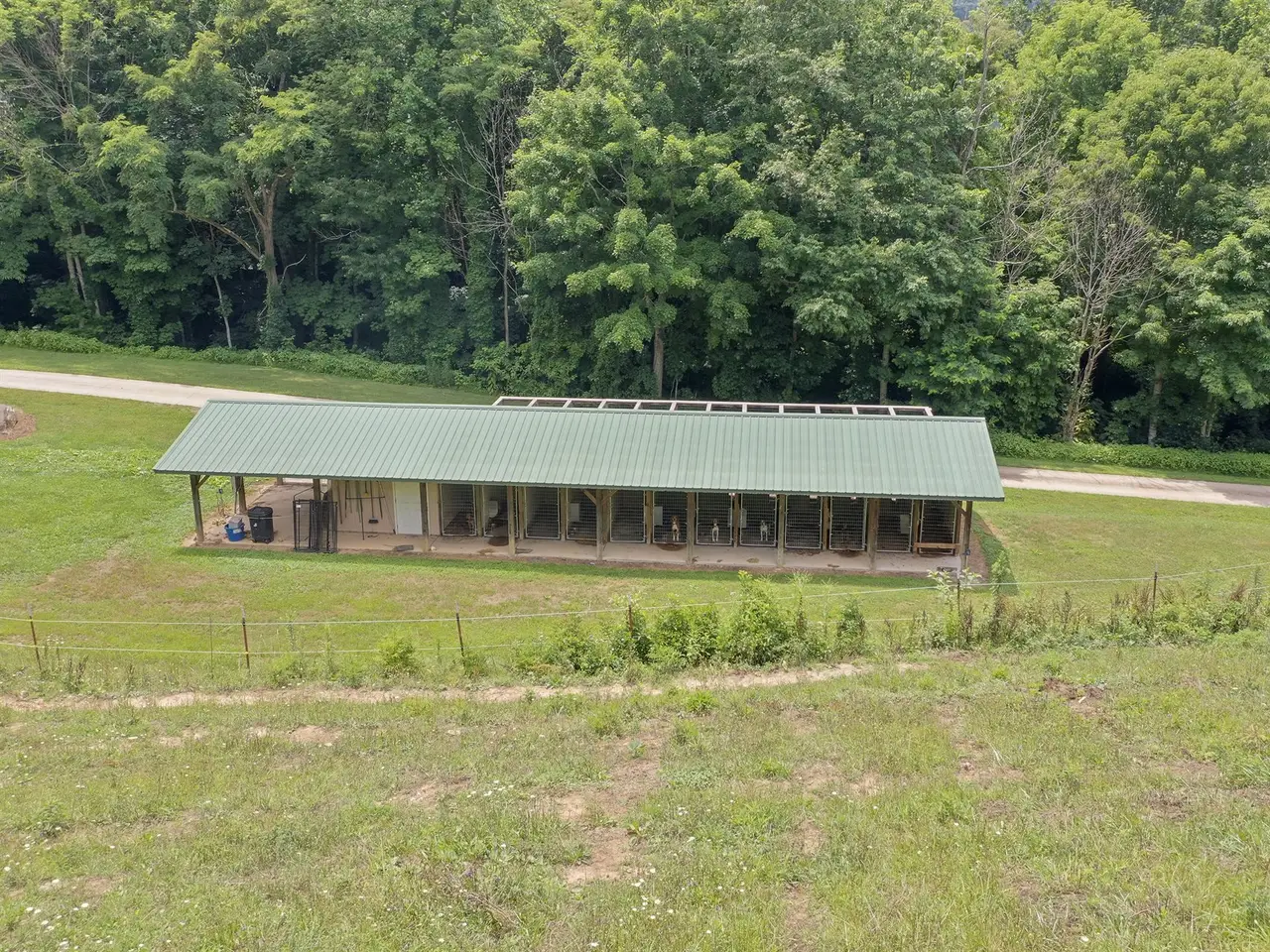Atop 56+ picturesque acres in Fines Creek, this expansive estate offers unparalleled amenities. Boasting long-range views, an in-ground saltwater pool w/a cascading waterfall, an outdoor firepit, fenced pastures, a 3-bay detached garage w/a tractor shed, & private trails leading to a nearby creek, the property truly has it all. The traditional brick home was vastly expanded in 2007, featuring a grand foyer, a 2-story great room w/vaulted ceilings & a beautiful fireplace, a primary suite w/a gas fireplace, a bay window, a granite double vanity, a jetted tub, & a large walk-in shower, as well as 2 large BR suites on the upper level & an updated laundry room. The original section boasts 1 BR/1 bath on the main level, + a bonus room & bath upstairs, a dining room w/vaulted ceilings, a loft, and a kitchen equipped w/granite countertops, like-new appliances, a wine cooler, and a walk-in pantry. The fully-finished basement w/a full bath and a rec room flows effortlessly out to the pool deck.