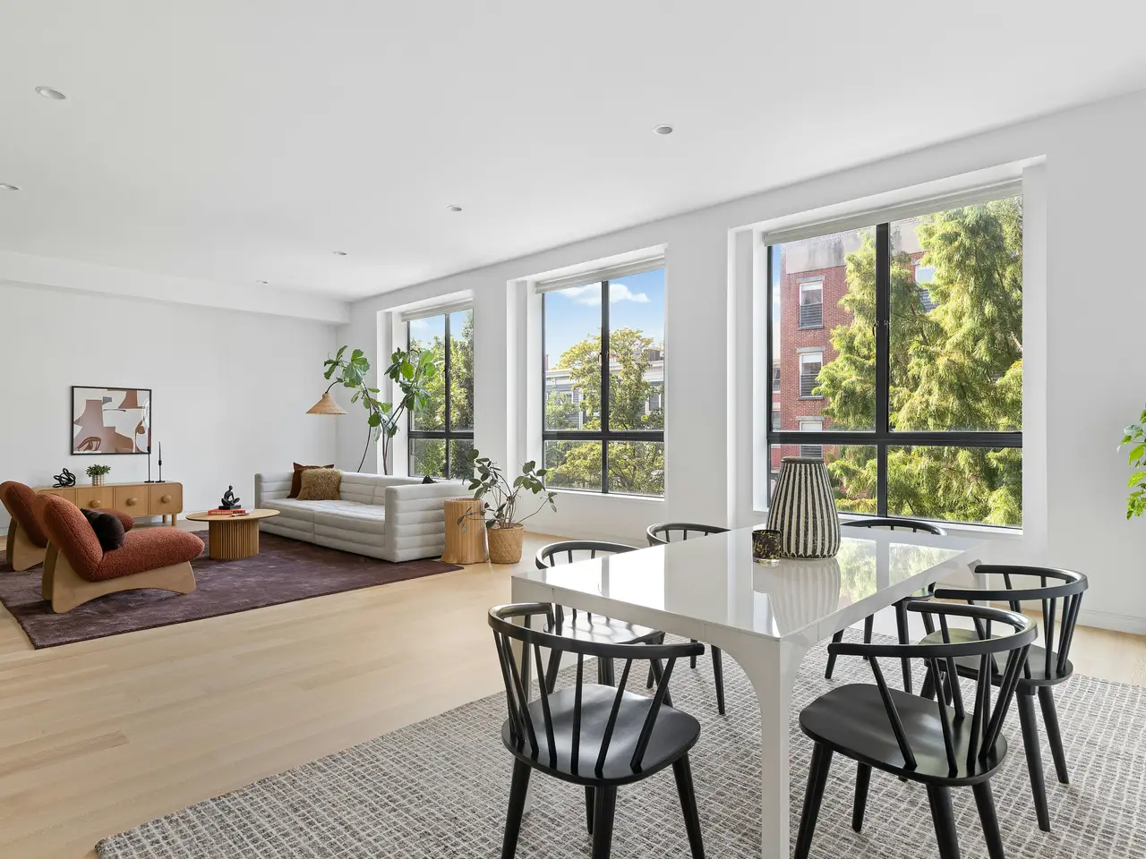 This rare, full-floor condo is an expansive three-bedroom, two-and-a-half-bathroom with modern design features that offers a unique combination of scale, light and private outdoor space in a boutique four-unit condominium. Located at the crossroads of Boerum Hill and Cobble Hill, this home is approximately 2,253 square feet and incorporates superb functionality with its thoughtful layout. Access is via a keyed elevator that opens directly onto a stunning 35-foot wide by 20-foot deep great room with 10-foot ceilings and a wall of three expansive south-facing windows that flood the space with natural light. The open-concept layout is ideal for both living and entertaining, anchored by a spacious living and dining area and a beautifully appointed kitchen outfitted with a Sub-Zero refrigerator, a Viking range, a Miele dishwasher, a GE Profile microwave, and a breakfast bar. Just off the kitchen, a versatile nearly 10-foot by 10-foot bonus space can serve as a home office area or play area. There is a separate large laundry room with a new Miele washer/dryer and room for storage. The unit has its own two-zone central heating and AC systems for comfort. Newly installed 6" white oak flooring runs throughout this beautiful home. The oversized primary bedroom suite features a custom walk-in closet and a serene ensuite bathroom constructed of natural stone, and includes a double-sink vanity, soaking tub, and separate shower. In addition to this primary bedroom suite, there are two more bedrooms that rival the primary in size, natural light and accessibility. These extra-large bedrooms can easily accommodate a king-sized bed along with other bedroom furniture with room to spare. The two bedrooms share a well-appointed full bathroom, and there is a stylish powder room just off the great room that services guests. All three bedrooms open onto an approximately 181 square-foot, north-facing private terrace with views of the garden below - perfect for relaxing, dining, or enjoying a quiet moment outside. Originally built in 2009, 17 Bergen Street is a boutique, elevator condominium with just four residences. Perfectly positioned in one of Brooklyn's most coveted neighborhoods, the building is surrounded by historic brownstones, acclaimed restaurants, artisan shops, and charming cafés. Trader Joe's is around the corner; Brooklyn Bridge Park is just a short distance away, and there is excellent subway access-the 2, 3, 4 and 5 lines are at nearby Borough Hall, and the F and G trains are just 1.5 blocks down Bergen Street-that puts all areas of Manhattan within easy reach. This is a co-exclusive with Compass. This is not an offering. The complete offering terms are in an offering plan available from the sponsor. File No. CD070629. The sponsor reserves the right to make changes in accordance with the terms of the plan.