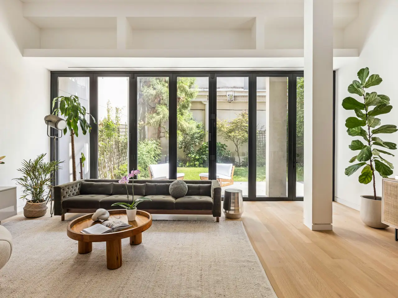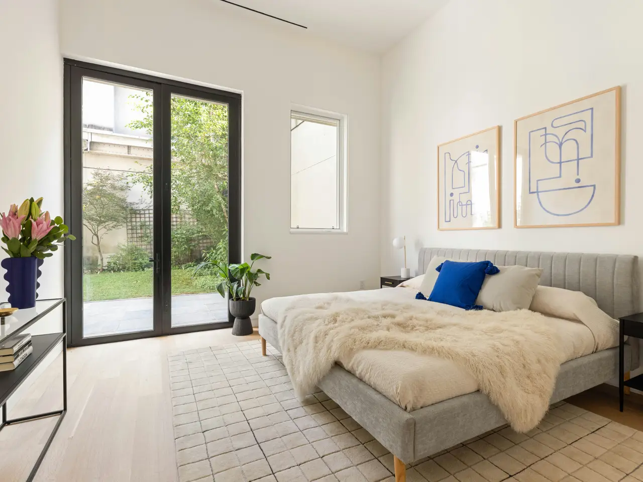 Located at the crossroads of Boerum Hill and Cobble Hill and designed with scale, sophistication and comfort in mind, this expansive, lofty home with modern design spans approximately 1,670 square feet. It features an exceptional layout, soaring 14-foot ceilings, and a lush private garden and patio totaling approximately 1,180 square feet. This unique home has a grand living room bathed in light from floor-to-ceiling bifold glass doors that open to the garden creating a seamless indoor-outdoor experience ideal for entertaining or everyday living. The open kitchen is both sleek and functional, beautifully outfitted with custom cabinetry, limestone countertops, a breakfast bar, a Sub-Zero refrigerator, a Viking range, and a Miele dishwasher. The expansive primary bedroom suite also opens to the garden through glass doors and offers a tranquil retreat, complete with a custom walk-in closet and spa-like ensuite bathroom featuring a rain shower, soaking tub and double-sink limestone vanity. The generous dining area features a long gallery wall offering an ideal space for art and leads to a second full bathroom. A large laundry closet with a new Miele washer/dryer is adjacent to the second bath. A sleek modern staircase leads to the second bedroom-an airy, flexible space with two south-facing windows, perfect for a second bedroom, home office, guest room, or den. Newly installed 6" white oak flooring runs throughout this beautiful home, which also has its own central AC and heating units. Originally built in 2009, 17 Bergen Street is a boutique, elevator condominium with just four residences. Perfectly positioned in one of Brooklyn's most coveted neighborhoods, the building is surrounded by historic brownstones, acclaimed restaurants, artisan shops, and charming cafés. Trader Joe's is around the corner; Brooklyn Bridge Park is just a short distance away, and there is excellent subway access-the 2, 3, 4 and 5 lines are at nearby Borough Hall, and the F and G trains just 1.5 blocks down Bergen Street-that puts all areas of Manhattan within easy reach. This is a co-exclusive Compass. This is not an offering. The complete offering terms are in an offering plan available from the sponsor. File No. CD070629. The sponsor reserves the right to make changes in accordance with the terms of the plan.