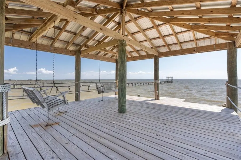 Price reduction on this waterfront homenow $1.149,900. If youve been dreaming of a waterfront investment home, welcome to this brand-new, Gold Fortified, bayfront home located on Mon Luis Island, built by Steve Greene, designed for both relaxation and entertainment. With 5 spacious bedrooms and 5 baths, plus a bonus room, theres room for everyone to enjoy the Gulf Coast lifestyle. Thoughtfully designed and handicap accessible with a built-in elevator, this raised home combines functionality with elegance. Step into the open-concept living and kitchen area, where custom cabinetry, quartz countertops, and included stainless steel appliances create the perfect space for gathering and unwinding. The entire back of the home opens to a full-length screened-in porch, offering panoramic bay views and front-row seats to breathtaking sunsetsyour new favorite hobby. Outside, a brand-new bulkhead and sturdy pier with dock and two charming swings invite endless hours of waterfront enjoyment. A tankless water heater ensures comfort, and Starlink internet keeps you connected no matter where you are. This home is packed with extras: a large storage room on the main level, a full ground-level bath, and a newly installed pickleball court!! A brand new camera system has been installed and will convey to the buyers. Plus, theres ample parking for at least 6 vehicles under the home, with additional gravel parking in back. Whether youre looking for a serene second home or a full-time waterfront retreat, this bayfront haven is turn-key and ready to impress. Dont miss your chance to own a slice of paradise! Buyer should verify all pertinent information, including square footage.