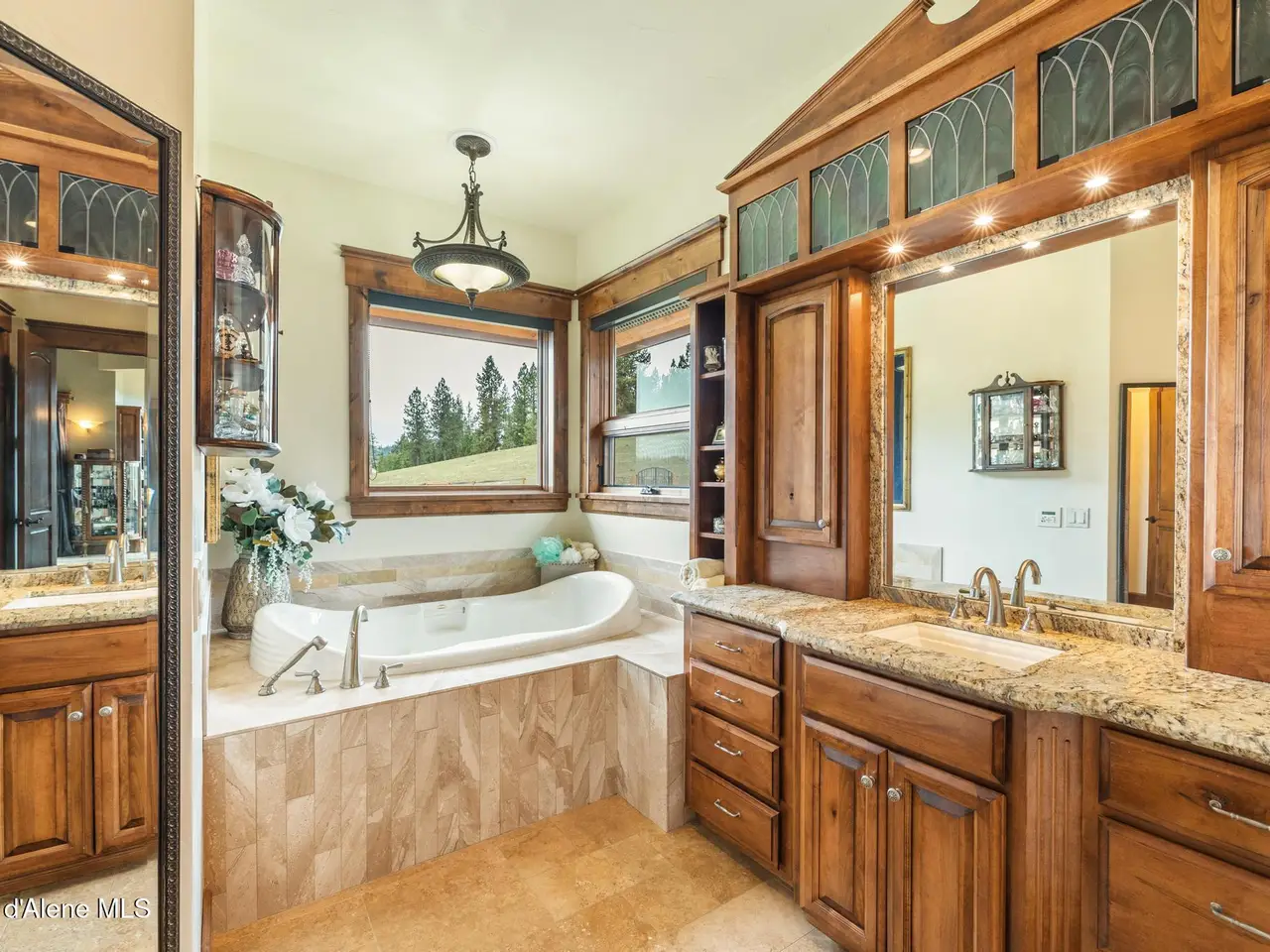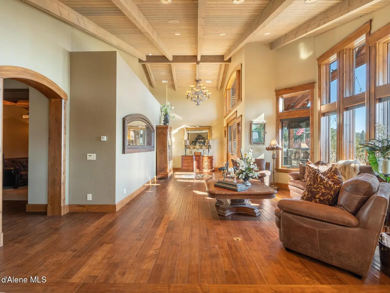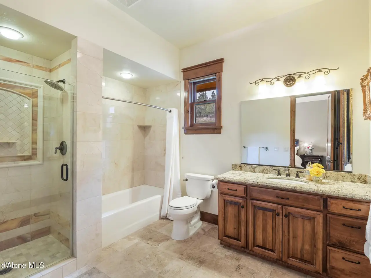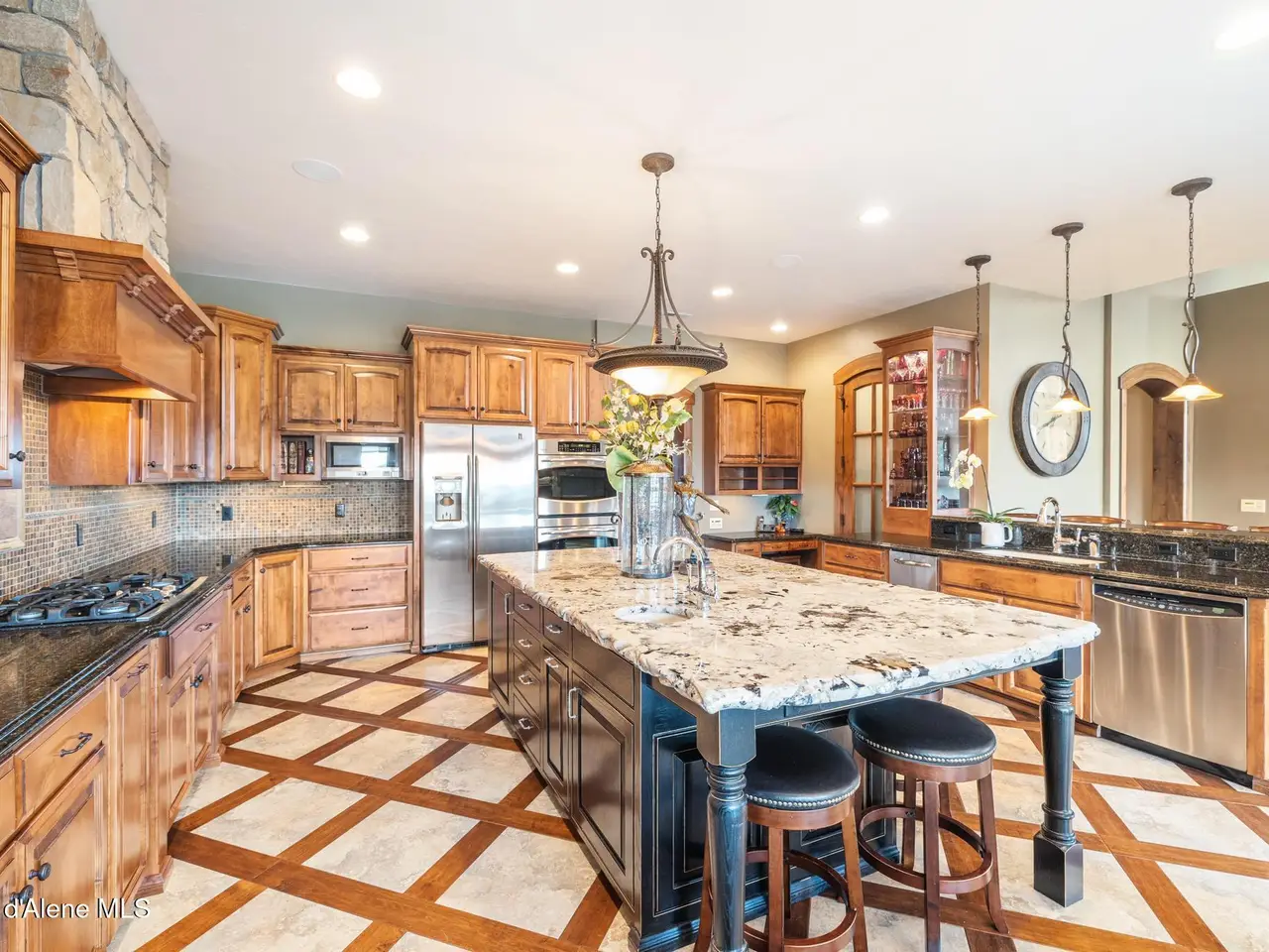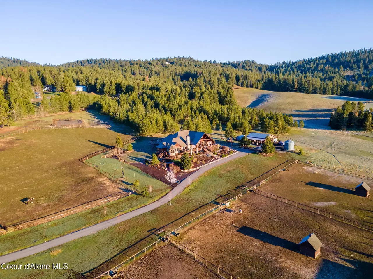 Absolutely Exquisite Home in Cougar Gulch, specially designed for Multi-Generational Living. This truly special residence was custom built to combine two homes in one, with two full high end kitchens and (5) En Suite's across 4808 Sq. Ft. of luxury main floor living. From the extensive list of luxury amenities, gorgeous panoramic views, and incredibly convenient location to downtown Coeur d'Alene; you'll love what this fine estate has to offer. Highlighted features include: Stunning master suite, beautiful gourmet kitchen, downstairs entertaining room, home movie theater, massive deck with outside fireplace, 48x60 finished shop with additional 576 Sq. Ft. studio apartment, and a highly customized sports bar silo. This Luxury Estate is being offered with an option to acquire an adjacent 5.25 Acre parcel, as well as a fully furnished option. Horse amenities/infrastructure has been mostly removed, except for perimeter fencing. Come discover the Coeur d'Alene lifestyle with very convenient access to downtown (Approx. 12 min) and enjoy paved county roads all the way home.