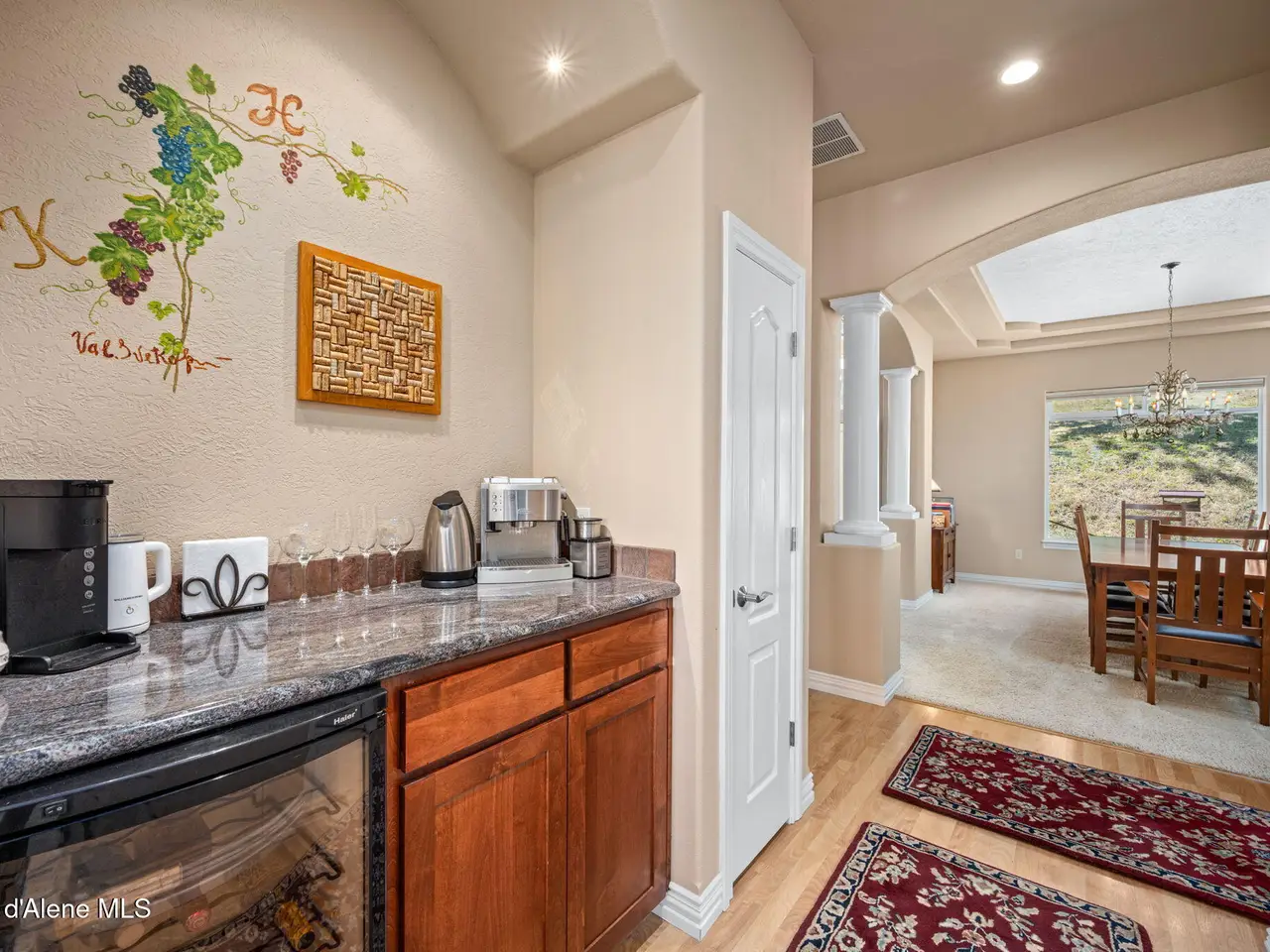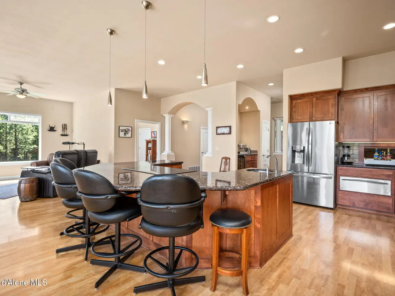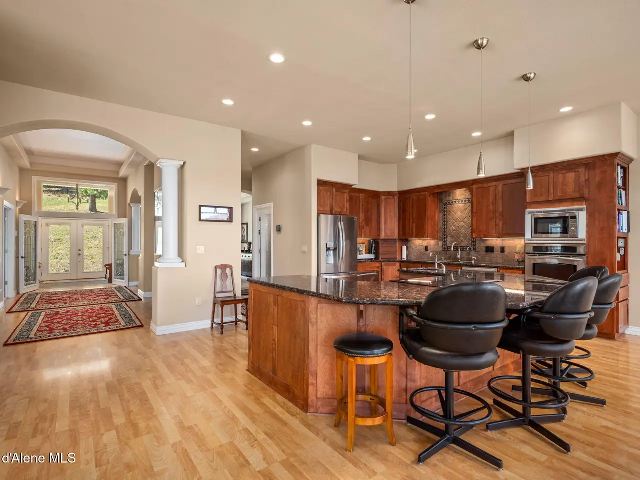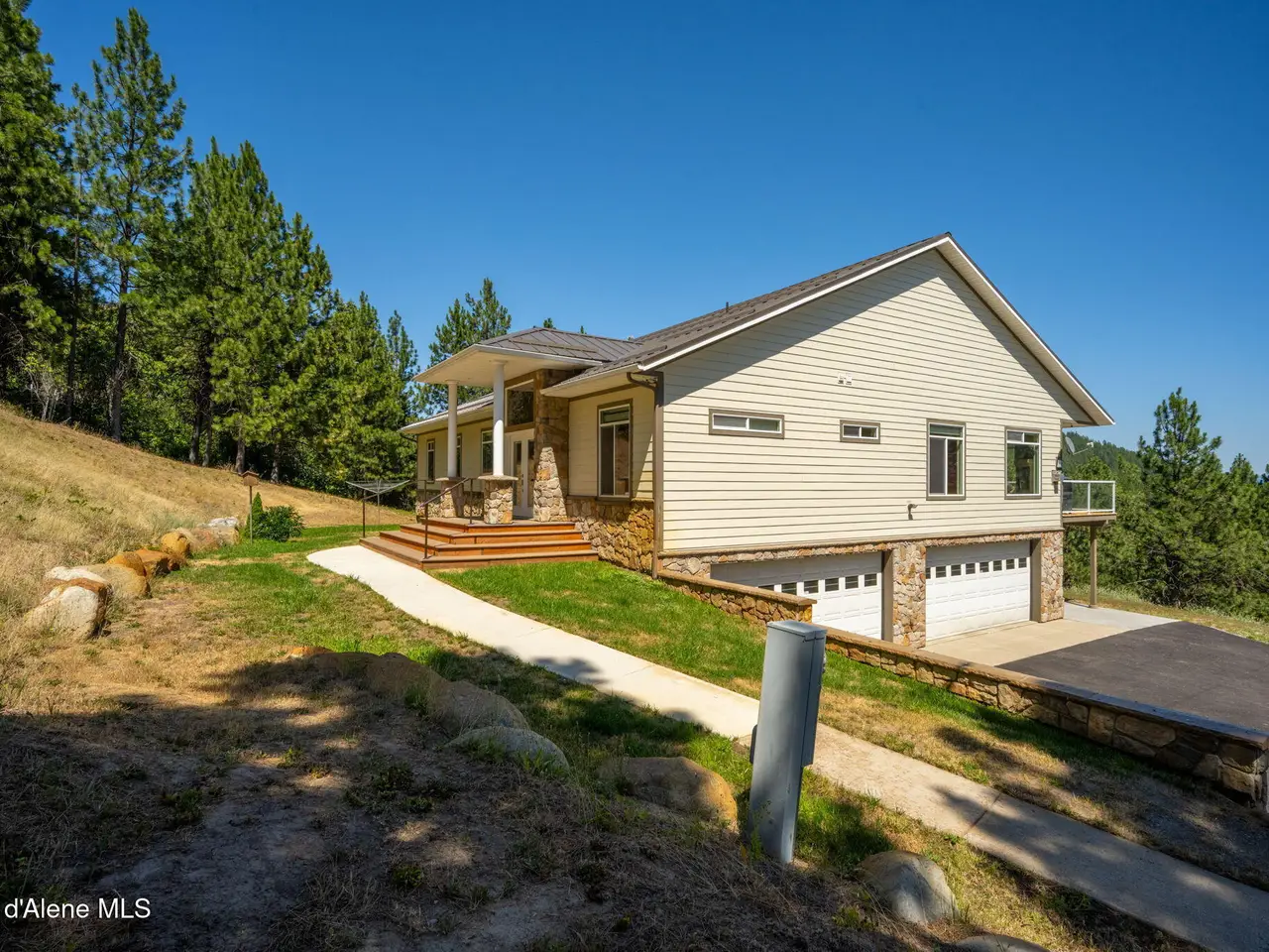 Nestled south of the Spokane River on 16.29 acres, this 2,948 square foot, 3-bed, 3.5-bath home (built 2003) is a serene oasis just 23 min from Coeur d'Alene's Sherman Ave, 13 min from Post Falls, and 40 min from Spokane Airport. Enjoy a grand double-door leaded glass entry, hardwood floors, 10' ceilings, and a gourmet kitchen with granite counters, cherry cabinets, and a large island. The primary suite stuns with a walk-in closet, jetted tub, and two-sided gas fireplace. Relax on the trex deck with million dollar views or in the 3-person spa. A 40x60 shop and 12x60 lean-to, spray foam insulation, and 220v power sits on a concrete slab. Updates include a 2019 metal roof, Hardie board siding, and asphalt driveway. With an elevator, zero-step entries, 4-car garage, 3-zone sprinklers, and a security system, this home is also wired for generator that offers luxury and accessibility. All appliances stay! Low taxes with timber exemption. Your dream retreat awaits! Exquisite Private North Idaho Estate - Your Ultimate Sanctuary Awaits! Escape to a world of unparalleled luxury and tranquility with this breathtaking 2,900 sq ft, 3-bedroom, 3.5-bathroom masterpiece (Sitting on a 2,882 sq ft basement!), nestled on 16.29 acres of pristine North Idaho landscape, just south of the Spokane River. Built in 2003 and meticulously updated, this estate offers a harmonious blend of modern sophistication, accessibility, and rugged outdoor beauty. Perfectly positioned for convenience, you're only 23 minutes from the vibrant Sherman Avenue in downtown Coeur d'Alene, 13 minutes from the charming heart of Post Falls, and a mere 40 minutes from Spokane International Airport. Whether you seek a private retreat, a family haven, or a versatile property for work and play, this home delivers it all. A Grand Arrival: As you approach through the automatic iron gate, a 1,200-foot asphalt driveway, newly paved in 2024, guides you effortlessly to the property. Designed for easy maintenance and snow plowing, the driveway features an extended trailer turnout, ensuring seamless access for vehicles of all sizes. The gate, operable by code or clicker, adds a layer of security and exclusivity to your private oasis. Beyond the gate, the sprawling estate unfolds, revealing meticulously maintained grounds, a 3-zone sprinkler system, and a charming fire pit area in the front yard - the perfect spot for cozy evenings under the stars. Architectural Elegance Meets Modern Comfort: Step through the double-door leaded glass entryway, a stunning prelude to the home's grandeur, and into a welcoming foyer with a tray ceiling and gleaming hardwood floors. A second French door adds an extra touch of sophistication, ushering you into a world of refined living. The open-concept interior, with 9' ceilings throughout, exudes warmth and spaciousness, enhanced by Hunter Douglas window coverings that frame breathtaking views of the surrounding landscape. The heart of the home is the gourmet kitchen, a chef's dream designed for both functionality and style. A large center island with a sink, seating for four (stools included), and granite countertops anchors the space, while cherry wood cabinets and a separate pantry provide ample storage. Adjacent, a cozy breakfast nook invites morning coffee with a view, and a formal dining room with a tray ceiling sets the stage for elegant gatherings. For wine enthusiasts, a dedicated wine bar with granite counters and a wine refrigerator adds a touch of indulgence. The living room, warmed by a gas fireplace, flows seamlessly onto a expansive rear deck crafted with low-maintenance trex decking and sleek glass-panel handrails. Here, you'll find a 3-person spa just steps from the primary bedroom, offering a private retreat for relaxation. A direct propane stub makes outdoor grilling a breeze, perfect for summer barbecues with family and friends. A Primary Suite Like No Other: The primary bedroom suite is a sanctuary of luxury, designed for ultimate comfort and serenity. A two-sided gas fireplace creates a cozy ambiance, connecting the bedroom to the spa-inspired ensuite bathroom. Unwind in the jetted tub, refresh in the spacious walk-in shower, or enjoy the convenience of upgraded vessel sinks and granite countertops. A generous walk-in closet provides ample storage, ensuring your personal retreat remains clutter-free. Step directly onto the deck to soak in the hot tub or savor the stunning views that stretch across the property. Accessibility and Versatility: This home is thoughtfully designed for accessibility, with zero-step entrances from the 4-car garage to the basement, from the basement to the elevator, and from the elevator to the main floor. The OTIS elevator, paired with wide hallways, ensures seamless mobility throughout the home. The walk-out basement, complete with a full bathroom, additional entry point, and dog kennel, offers endless possibilities - a guest suite, home office, or recreational space. A water softener, sand filter, and central vacuum system add convenience, while a home security system provides peace of mind. Modern Updates for Effortless Living: No detail has been overlooked in maintaining this home's pristine condition. In 2018, a new air handler was installed, followed by a comprehensive 2019 exterior overhaul, including a durable metal roof with snow breaks, new gutters, Hardie board siding, rock siding, and a reimagined front entryway. The old deck was removed, and new decking was added to accommodate the hot tub, complete with updated deck stairs. Inside, the laundry room boasts granite countertops, and all appliances - included with the home - are ready for immediate use. The property's infrastructure is equally impressive. A 500-gallon leased propane tank powers the home's two gas fireplaces and outdoor grill stub, while a well head just 50 feet from the house delivers excellent water quality (well driller's report available). The septic system features both primary and backup dra