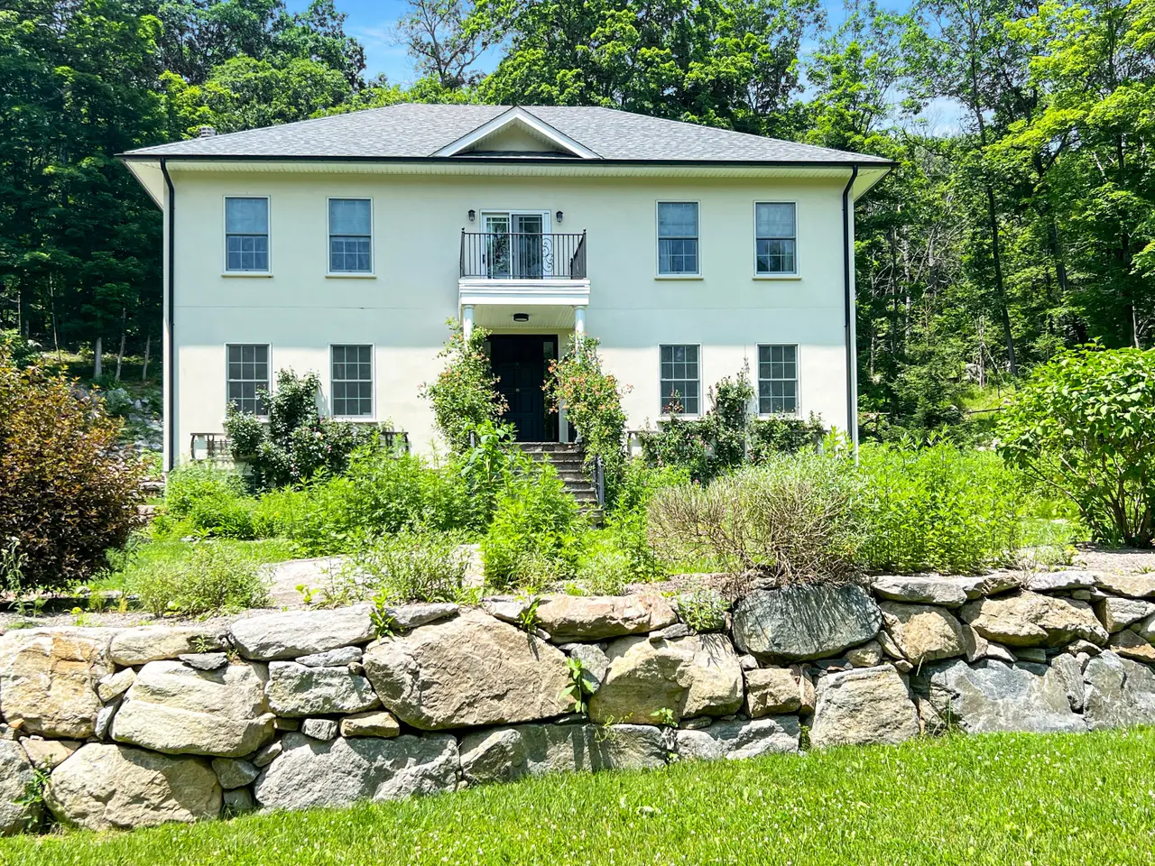 Modern Farmhouse recently built by a local craftsman. Situated on over 9 acres, this four-bedroom home has many custom details including 9' ceilings throughout, recently refinished wood flooring, custom trim and cabinetry, and built-in closets. Light and bright, the heart of the home is the open-concept chefs kitchen with magnificent walnut island and matching walnut shelving, Viking appliances, generous storage, walk-in pantry, wine fridge. Two gorgeous stone fireplaces in the dining and living rooms, arched doorways, solid wood doors, stone counters and quality oil-rubbed hardware throughout the home. The primary suite has a private nook and balcony, an open double shower, large soaking tub, double sinks, dressing table, radiant floor heat, and a functional walk-in closet. The upper level has three additional bedrooms and laundry, and a generous bathroom. Below, a large walkout flex space (office, playroom, den...) has a full bath, radiant heat, and lots of storage. This custom home nestles into a dramatic rocky hillside with stone walls, a large flat yard, gorgeous perennial plantings, and a fenced vegetable garden, with areas for your bonfire pit and even a future pool. This Cold Spring gem is just perfect for entertaining and built-to-last. Other assets include high-efficiency heating and cooling systems, a well-insulated home envelope, low energy costs, an automatic whole-house backup generator, on-demand propane heater, large hot water capacity, and two-car garage with storage. Private Road with shared maintenance agreement. Only 10 minutes from either Cold Spring Village (train, hiking trails and shops) or Fishkill. Blue Ribbon Haldane Schools!