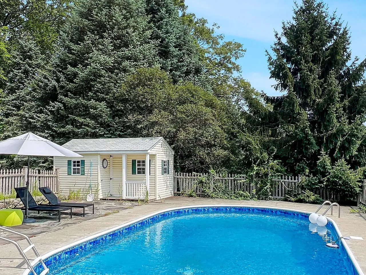 One-of-a-kind hilltop estate in the Haldane School District. Spacious, private, and picturesque getaway just minutes to Cold Spring Village. Proudly perched on almost 10-acres of Hudson Highlands woodlands, this well-appointed home is the idyllic setting for entertaining and country living. A magnificent chef's kitchen is surrounded by a formal dining room, billiard room/library, family room, sunken living room with huge gable windows, are all light-filled and elevating. There is also a bonus playroom and private office for the perfect work-from-home situation. Two separate powder rooms and laundry also on the first floor. A private second floor has a primary suite, three additional bedrooms, and hall bath. The basement is great for storage, a wine cellar, and was once a small gym. Relax overlooking the mountains of Fahnestock Park, Glynwood Farms, Stonecrop Gardens and the Equestrian Center from the magical screened front porch. Spend lazy afternoons beside the lovely inground pool just off the large back Trex deck. For sports enthusiasts, there is also a batting cage and golf green. The property has plenty of flex space, with several outbuildings for cars or perhaps studio space. Nature is all around, strolling the landscaped perennial gardens, listening to the daily visiting songbirds, taking in the fresh air and admiring the magical mountain laurels, or sitting quietly and hearing the many nighttime owl calls. Get active with plenty of nearby hiking and biking trails, swimming and paddleboarding - all just minutes from Cold Spring's restaurants, shops, entertainment, and schools. Easy access to Taconic, Route 84 and NYC trains. Equipped with a whole-house generator for backup electric, two adjoined water wells, high-capacity stainless steel fuel storage, and alarm system. Home has been freshly painted and waiting for you to move right in!