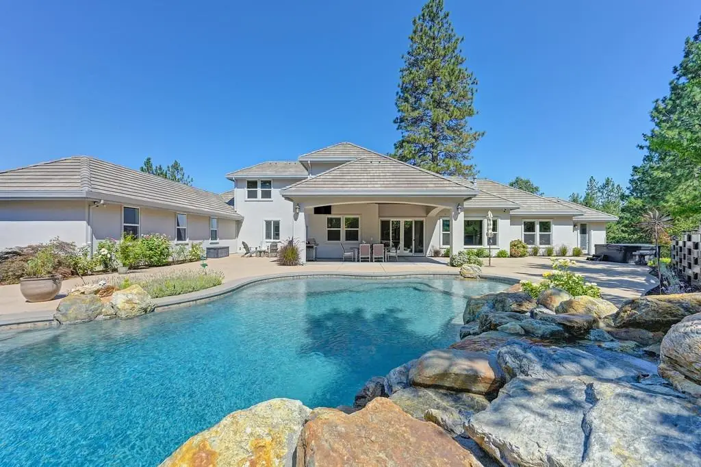 2 Homes with separate driveways! This exceptional property features a custom-built 2016 main home (approx. 2,784 sq. ft.) with 3 bedrooms + den + game room and 2.5 baths. Thoughtfully designed, it lives like a single-level with two bedrooms and a bath upstairs. The attached oversized garage and massive 16'x70' RV garage provides ample storage. Inside, hickory floors, a chef's kitchen with Thermador appliances, granite counters, and custom cabinetry set the stage for elegant living. The primary suite offers outdoor access, a large walk-in closet, dual sinks, and a luxurious shower. Outdoor amenities include a sparkling pool with a waterfall, a spa, a covered patio plumbed for an outdoor kitchen, and a gas fire pit. A whole-house generator ensures peace of mind. The second home (approx. 1,000 sq. ft., built in 2004) offers 2 beds, 2 baths, a 1,000 sq. ft. garage, and a separate driveway, PG&E meter, and septic-ideal for multi-generational living or rental income. Conveniently located 5 minutes from I-80, this private foothill retreat is a must-see! Schedule your private tour today!