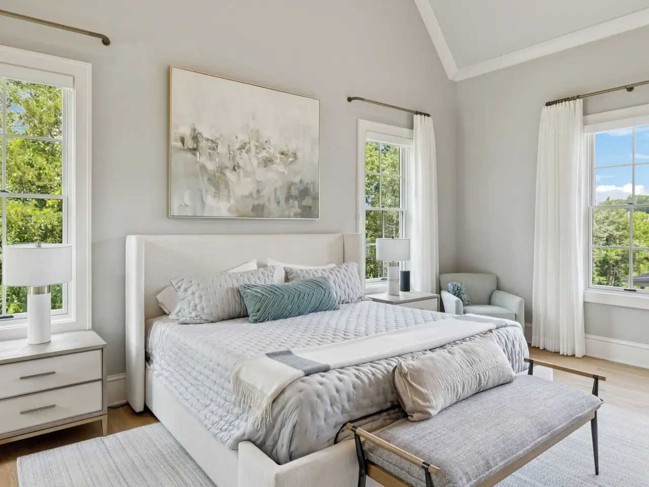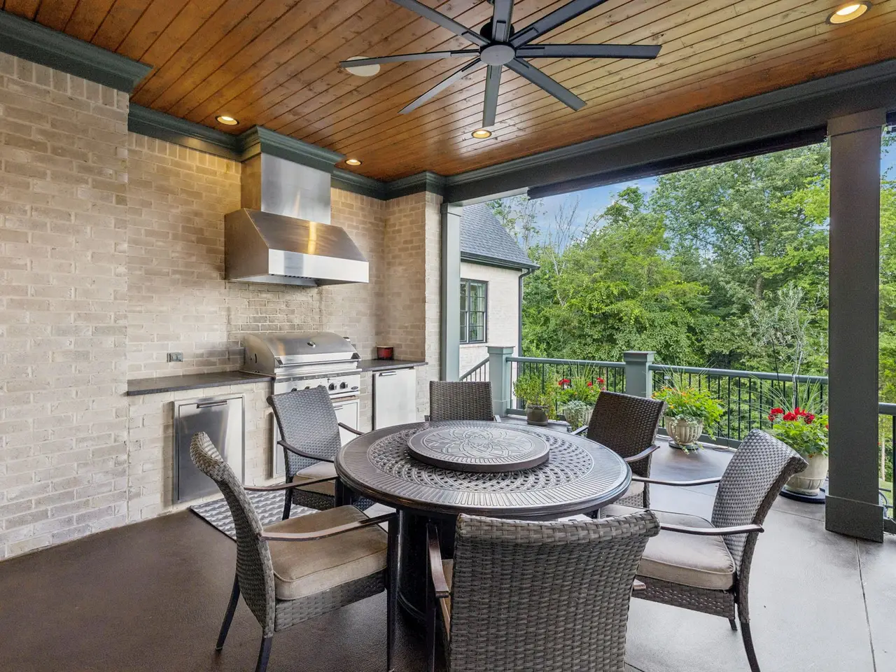Located in the highly sought-after Grove community, this stunning home offers refined luxury and access to world-class amenities--including a grand manor clubhouse, resort-style pools, a full-service spa, state-of-the-art fitness center, and more. Inside, you're welcomed by a soaring two-story ceiling in the light-filled living room and an open-concept layout designed for both everyday comfort and elegant entertaining. The chef's kitchen features top-of-the-line Thermador appliances, ceiling-height cabinetry, a built-in gas range, double ovens, a coffee nook or dry bar, and a dreamy butler's pantry with abundant storage and a beverage center. The main-level primary suite is a true retreat with vaulted ceilings, a cozy fireplace, soaking tub, double vanities, a dedicated vanity area, a morning bar, an oversized walk-in closet, and direct access to the laundry room for ultimate convenience. A guest bedroom and full bath are also located on the main level. Upstairs offers two additional en-suite bedrooms, a loft with craft room and a spacious rec room with a charming library with a powder bath. Enjoy peaceful outdoor living with a covered back porch featuring a fireplace, built-in grill, and a patio shaded by mature trees and beautiful landscaping, including blooming hydrangeas. A fully conditioned & climate controlled crawl space and a 3-car garage (one oversized) complete this extraordinary property.