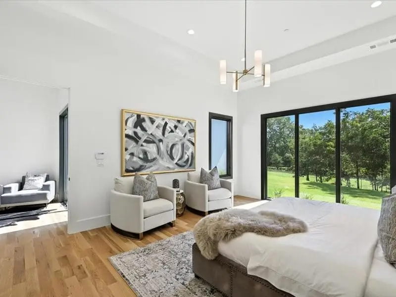 Welcome Home to this brand new, gorgeous Calais Custom Home. Nestled in the quiet, back part of the prestigious Old Grove neighborhood, this modern home offers an unparalleled living experience, exceptional floor plan, light and bright finishes and a spacious backyard for you to create your backyard dream oasis. As you enter the impressive steel and glass pivot front door, you are greeted with 21 foot soaring ceilings, walls of windows, gorgeous wood floors and open plan living. Blending luxurious finishes with modern design, this home features highest end Wolf and Sub-Zero appliances, stone countertops, designed hardware and plumbing fixtures, and white oak floors. The open-concept offers a large Family - Breakfast - Chef's Kitchen with huge island with quartizite counters, for family and friends to enjoy. Step into the Game Room with wet bar with sliding doors to the oversized backyard, covered patio and serene views. The dream Primary Retreat features lovely backyard view, a lavish spa bath and expansive closet. 2nd Primary suite is also downstairs. Upstairs offers 3 large Bedrooms with en-suites and walk-in closets, plus a Exercise Room, Loft and Bonus space. As you head into the backyard, you find a large veranda, complete with a with cozy fireplace for year-round enjoyment, and surrounded by exquisite landscaping and mature trees that enhances the home's secluded ambiance. Home also boasts an Executive Study, Prep Kitchen, large Laundry room, tons of storage, a spacious 4 car garage. This is a truly extraordinary residence, and a rare combination of privacy, elegance, and functionality.