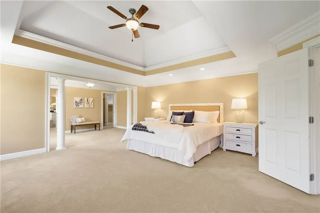 Welcome to this beautiful home located in the desirable Nevillewood community. Featuring a grand two-story foyer with soaring ceilings in the family room, this home offers an open and inviting layout filled with natural light. Freshly painted throughout with new carpet in the family room, the main level includes a formal living room, private home office, spacious family room, kitchen with adjacent dining area, and convenient laundry room. The level backyard is perfect for outdoor entertaining or relaxing. Upstairs, you'll find generous sized bedrooms and excellent closet space. The primary suite boasts elevated ceilings, a sitting area, and en suite bath. The finished lower level is designed for fun and entertainment, complete with a game area and an impressive home theatre featuring seating for 12 and premium Paradigm speakers. Additional highlights include professionally designed landscaping with built-in lighting, a full home security system, and close proximity to The Club at Nevillewood.