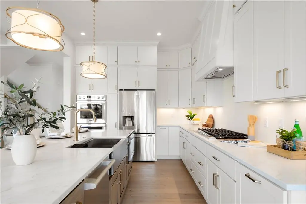Stunning New Construction by Stambrosky Homes in Prime Location. Featuring an open-concept layout filled with natural light, the main level showcases detailed moldings, built-ins, and custom cabinetry throughout. A spacious mudroom connects the garage to the back hallway for everyday convenience. The kitchen opens to a covered patio with a cozy fireplace perfect for outdoor dining and entertaining set against the backdrop of mature landscaping. Upstairs, all bedrooms are generously sized and uniquely designed. The luxurious primary suite includes a spa-like bathroom w/ an oversized shower, freestanding soaking tub, and high-end finishes. Every closet is outfitted with custom shelving and versatile storage options. The finished lower level offers space for entertaining and additional storage. This model home highlights the exceptional craftsmanship and attention to detail that define Stambrosky Homes.
