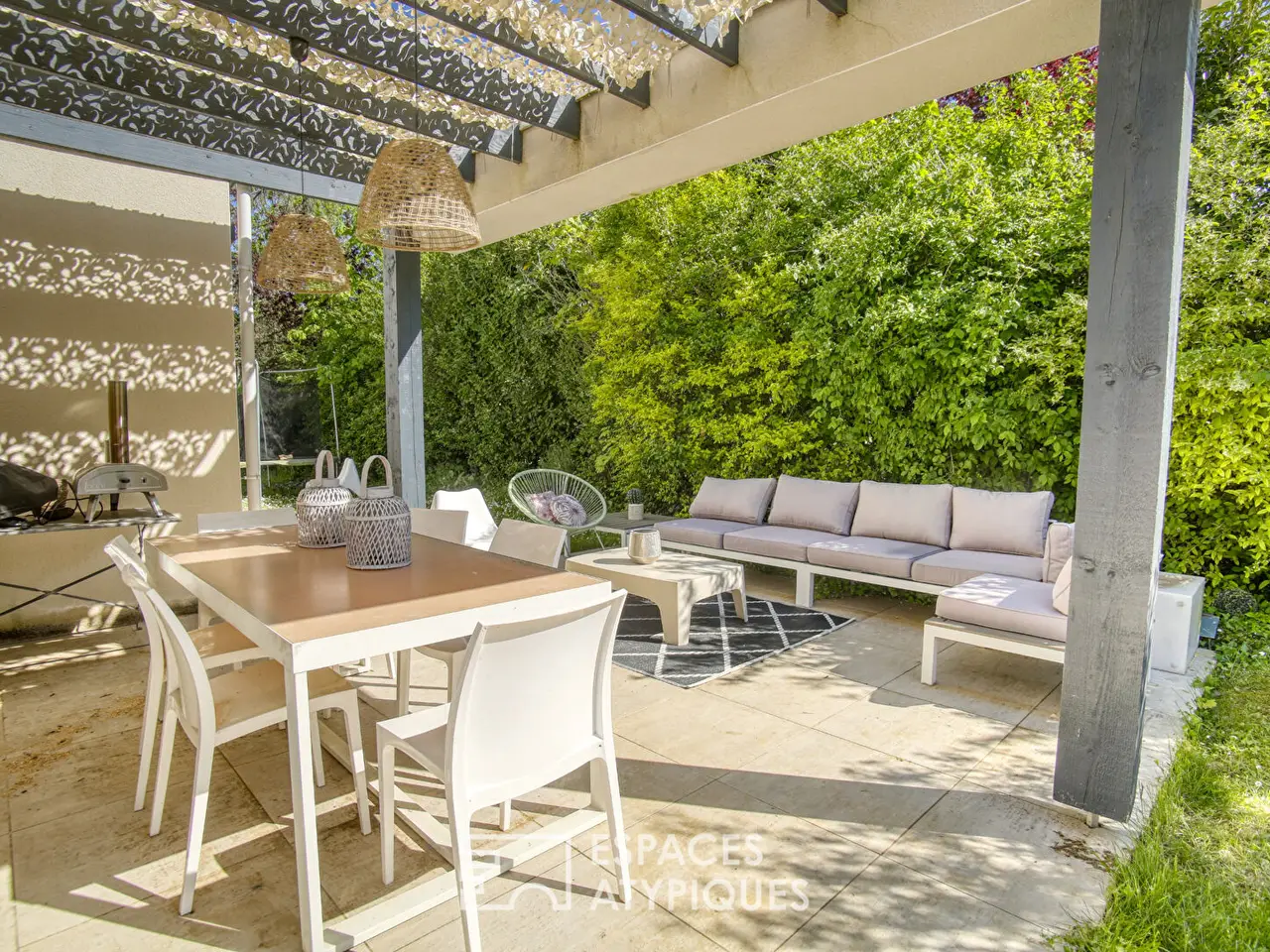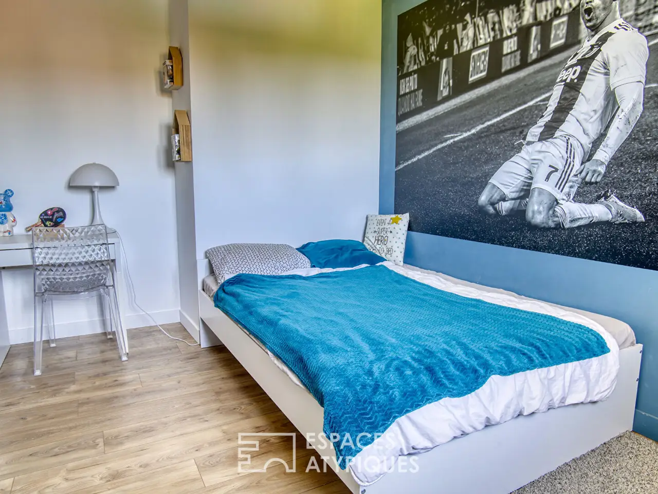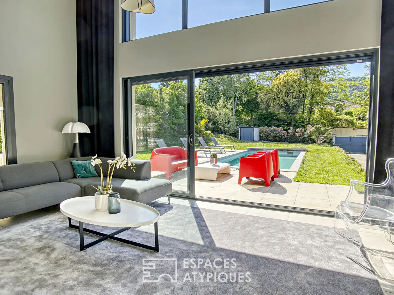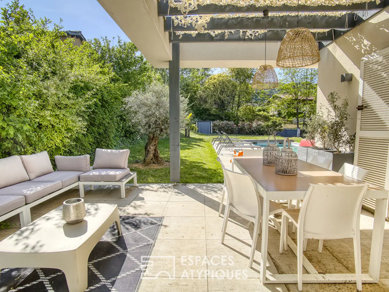 At the end of a cul-de-sac and in absolute calm, this house of approximately 200m2 of living space is built on a flat plot of approximately 1000m2, not overlooked, on the heights of Collonges-au-Mont d'Or. The entrance to the house opens onto a large double living room opening on one side onto a contemporary kitchen with clean lines and on the other onto the terrace and the garden. The cathedral ceiling of the living room and its double window give a certain cachet to this living room. On the same level, a bedroom with its bathroom allows a sleeping area on the ground floor. A laundry room and a games room complete this level. Upstairs, a beautiful master suite takes place with its dressing room and its private bathroom. For the children, two bedrooms and a bathroom complete this level. The land, well exposed, landscaped and not overlooked, benefits from a terrace area under a pergola and a heated swimming pool with heat pump. Air/water heat pump with underfloor heating. Reversible air conditioning. Bus and school nearby. DPE: C /. GES: C Contact: Guillaume - 06 67 69 73 00REF. 11012Additional information* 6 rooms* 4 bedrooms* 1 bathroom* 2 shower rooms* Outdoor space : 1000 SQM* Parking : 2 parking spaces* Property tax : 1 422 €Energy Performance CertificateEPC blank or in progressAgency feesThe fees include VAT and are payable by the vendorMediatorMediation Franchise-Consommateurswww.mediation-franchise.com29 Boulevard de Courcelles 75008 ParisInformation on the risks to which this property is exposed is available on the Geohazards website : www.georisques.gouv.fr