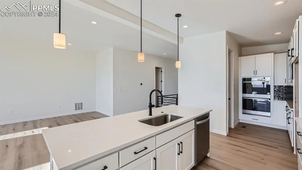 Brand new ranch home in sought-after Kissing Camels Estates! Modern finishes with views of downtown Colorado Springs and the Front Range! Main level offers a great room with indoor/outdoor two-way fireplace, Primary Suite features an attached bath, floor-to-ceiling tile shower, and walk-in closet, laundry room, half bath, and secondary bedroom with attached bath. Large, open-concept Kitchen with quartz countertops and island with breakfast bar, Kitchen-Aid appliances, walk-in pantry, and a Breakfast Nook with walk-out to covered patio. Landscaping to be completed in the Spring. Full finished basement features an expansive Family Room, 1/2 bath, two bedrooms, a full bath, and a flex room. three-car attached tandem garage. Storage Room, radon system, central air, and tankless water heater are added amenities in this home. HOA dues includes 24-hour gated security and patrol, three access gates (2 are private residential only), snow removal on streets, trash removal, and common area maintenance. Within easy walking distance to the Garden of the Gods Club and Resort and Kissing Camels Golf Club. Use of Garden of the Gods Club and Kissing Camels Club facilities requires a separate membership. Close to shopping, dining, and easy access to I-25. Don't miss this opportunity to live in a brand-new home in an exclusive, gated community in a prime location!