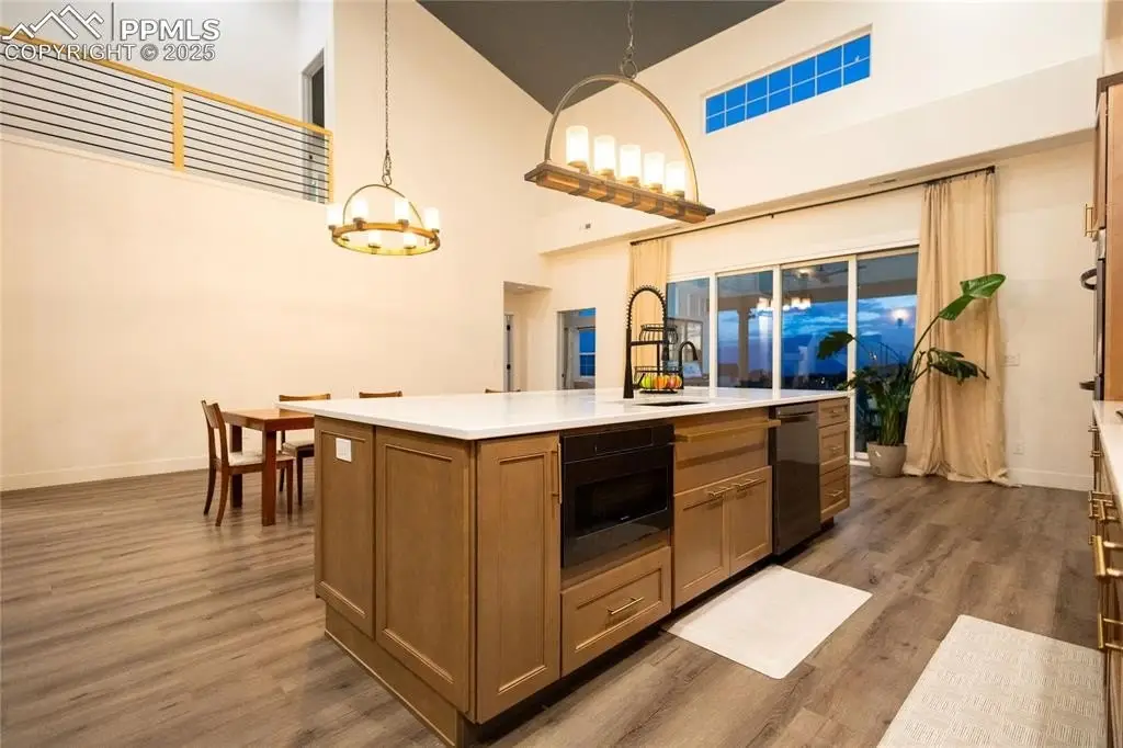 It is a rare occasion when a residence successfully harmonizes the tranquility of pastoral living and contemporary luxury. Situated within the distinguished Highland Park community, just beyond the vibrant Woodmen and Powers corridor, this estate offers both seclusion and convenience. On 2.7 expansive acres, the property affords an unparalleled sense of space, with the Rocky Mountains themselves serving as the backdrop to your daily rhythms. The barndominium has rapidly grown in popularity. Searched nearly 17,000 times per day. Yet, many quickly discover the complexity of constructing one from the ground up. This home resolves that challenge by presenting a barndominium-style residence already masterfully designed and built. Allowing you to skip plans and permitting, and instead step directly into a finished expression of the lifestyle you desire. Comprising six bedrooms, four and one-half baths, and nearly 4,000 square feet, this residence is both generous and thoughtfully configured. The main level offers three secondary bedrooms, perfectly suited for multigenerational living, guest accommodations, or private workspaces, while the primary suite occupies a distinct wing, ensuring privacy and retreat. The primary ensuite evokes a spa-like atmosphere, one typically reserved for curated design publications. The garage features a pull through design for convenience and includes a second level loft an adaptable space ideal for a private office, workshop, or studio. Inside, the sense of openness is enhanced by vaulted ceilings, elevating the home’s architectural character while flooding the interiors with light. The culinary heart of the home is equally impressive a chef’s kitchen designed for both daily living and elevated entertaining, complemented by a butler’s pantry that offers discretion and utility. And with step free exterior entry, this property is designed to grow with you equally accommodating for vibrant living today and graceful aging tomorrow.