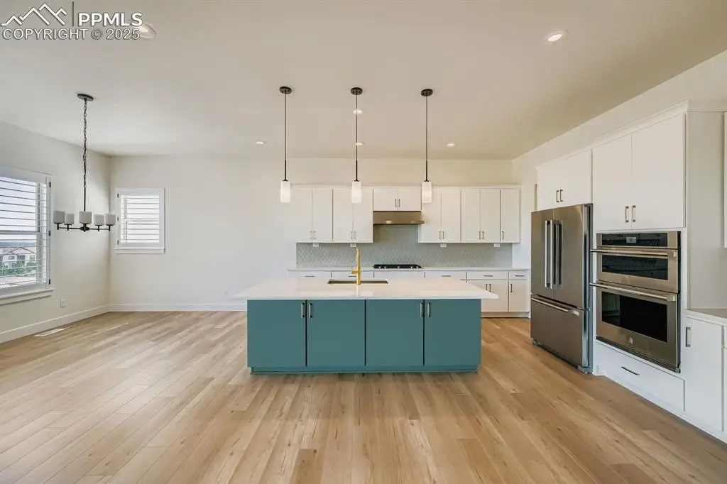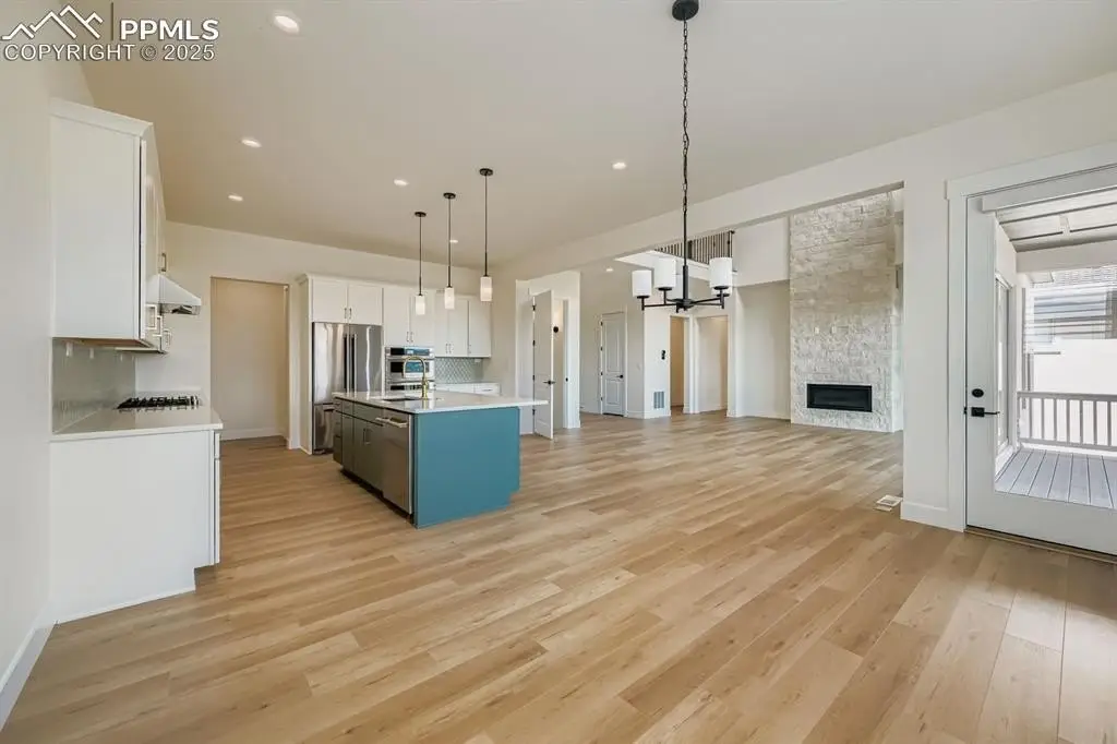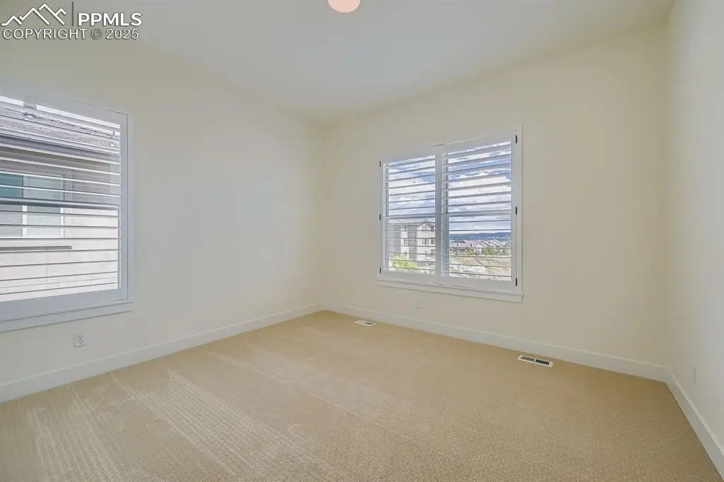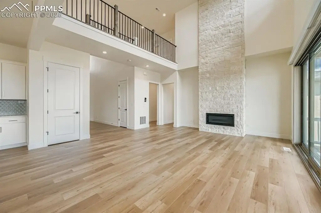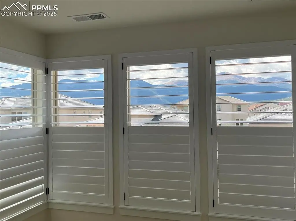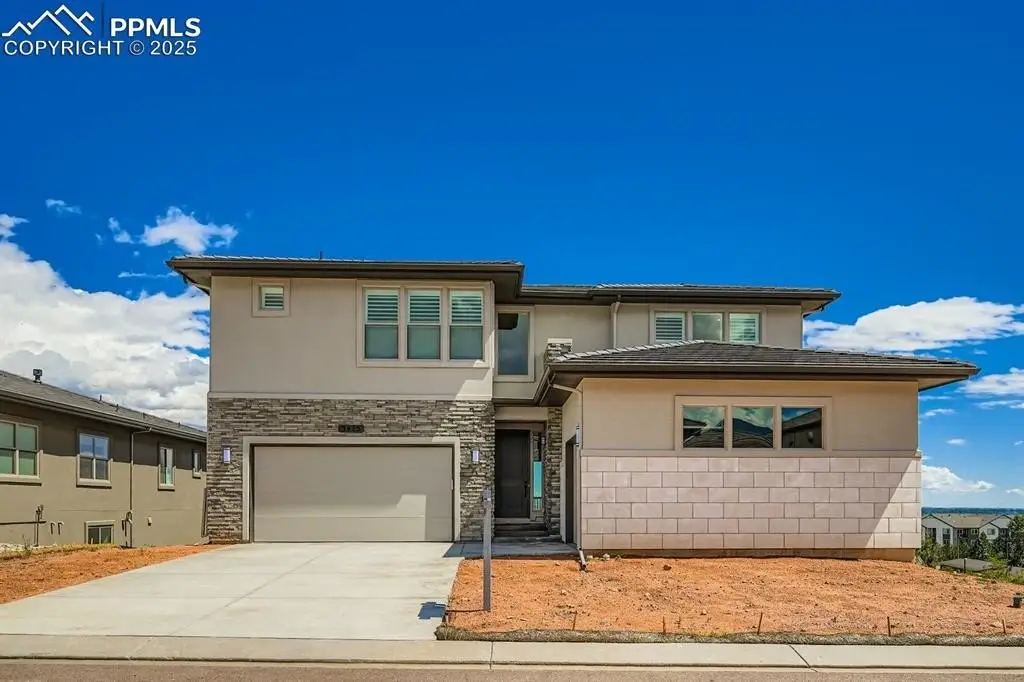 The elegantly crafted Fleetwood Prairie home features a luxurious blend of indoor and outdoor living spaces that are perfect for relaxing and entertaining. The inviting two-story foyer and extended hallway flow past the private office to the grand, two-story great room with alluring views of the city, beyond the expansive covered patio. Don't miss the beautiful Eldorado white elm stone, floor-to-ceiling fireplace! The carefully designed kitchen, overlooking a bright, casual dining area, features JennAir appliances, a sizable walk-in pantry, as well as ample counter and cabinet space that surrounds an oversized center island with a breakfast bar. Highlighting the superb primary bedroom suite is an impressive 16x10 walk-in closet and a primary bath enhanced with dual vanities, a large soaking tub, a luxurious shower, linen storage, and a private water closet. Secondary bedrooms, one with a sizable closet, sharing a hall bath and two with walk-in closets and a private shared bath, are central to a versatile loft space. The second floor also features easily accessible laundry, while another bedroom with Pikes Peak views and bathroom can be found off the loft space. A large unfinished basement offers a separate walkout deck and provides additional room for storage. HOA dues include manned security, snow removal on private streets & trash removal. Walking distance to the Garden of the Gods Resort and Kissing Camels Golf Club, which offers numerous amenities including spa, gym, swimming pools, hot tubs, pickleball & tennis courts, and fine dining, with club membership. Plentiful hiking & biking trails close by. Excellent location only minutes from downtown, Manitou Springs, & Kissing Camels Golf Club. Rare opportunity to acquire a view property in exclusive Red Rock Point at Kissing Camels. One of the last new homes available in Kissing Camels!