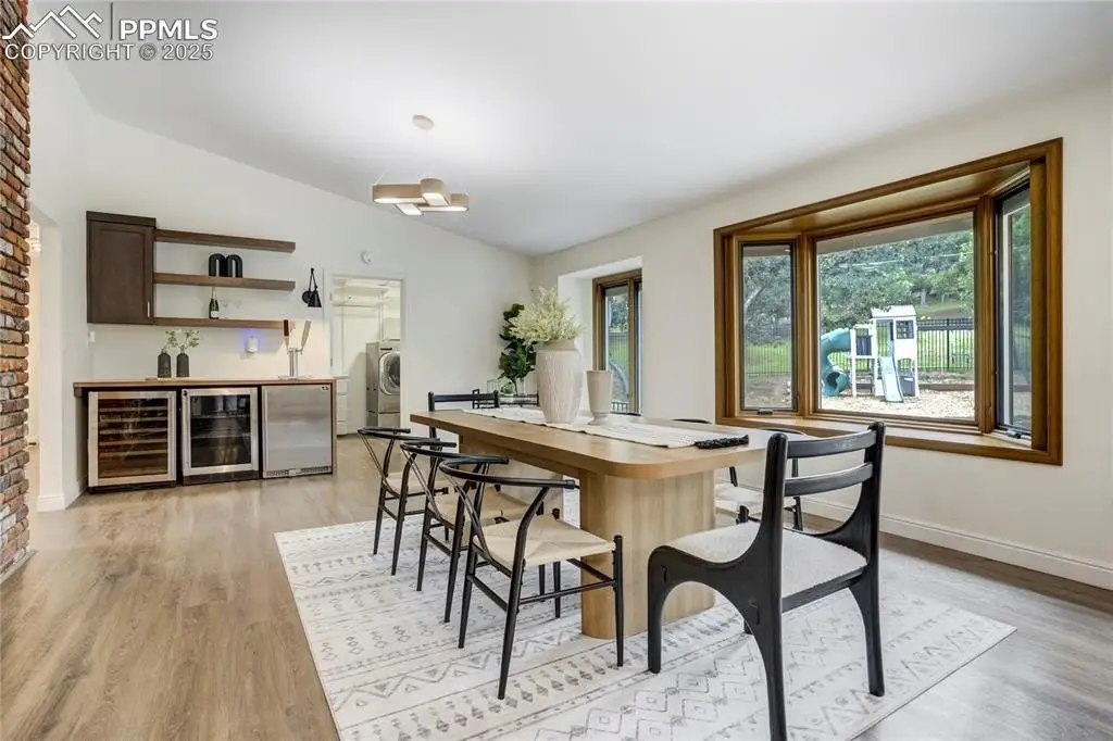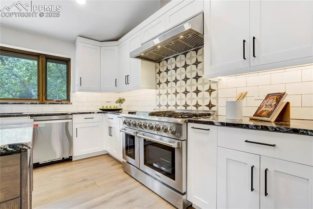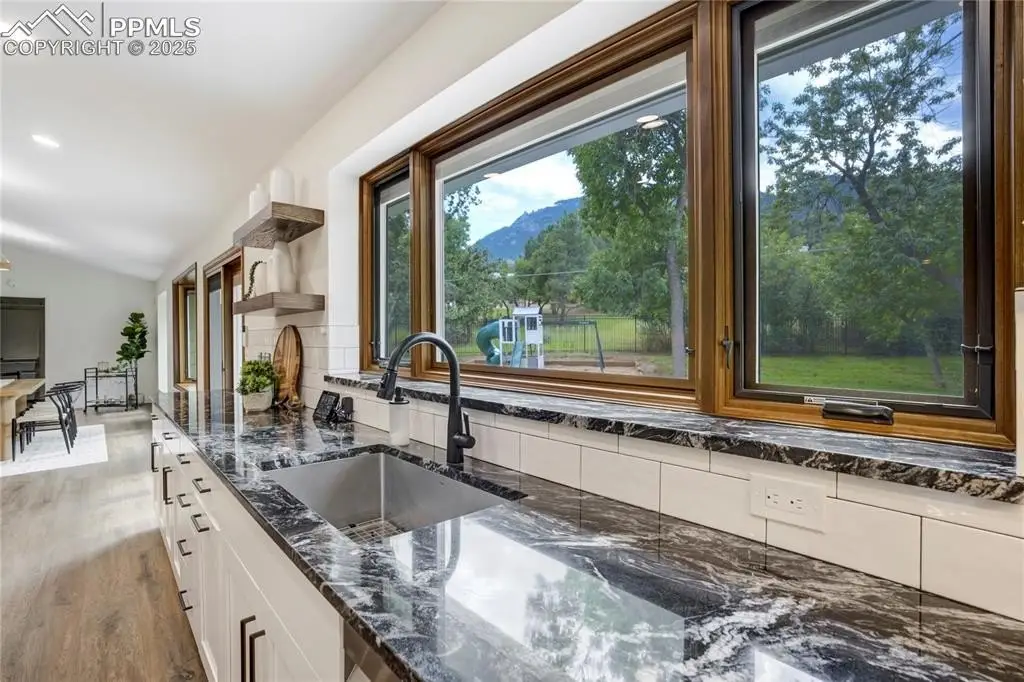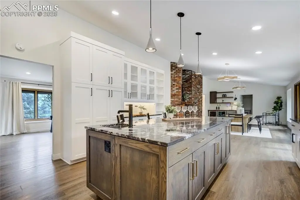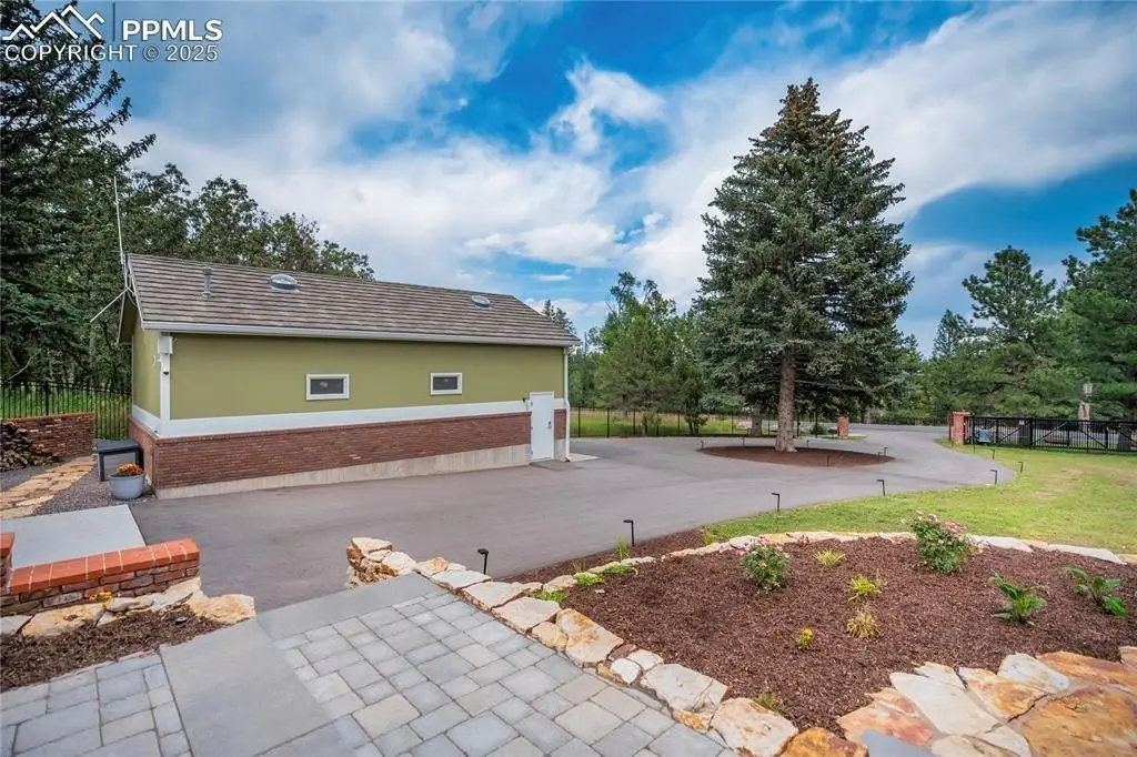 Completely remodeled & upgraded inside & out! Gated entry & paved circle drive w/direct access to detached heated 4-car garage. Custom wood door entry opens to ceramic tile landing & striking modern wood stairway w/metal railing. The great rm has vaulted ceilings & a wall of windows that flood the space w/ natural light. A flr-to-ceiling stacked brick FP anchors the rm, complemented by floating custom cabinets w/hidden storage, & TV w/media system. Nearby gourmet kitchen w/expansive island & granite countertops, designer pendant lighting, endless cabinetry, & a 48” Thor stove. It flows directly into the dining space, which shares the warmth of the dual-sided FP. Adj wood bar is fully outfitted w/ bev & wine coolers plus a dual-tap kegerator, creating the perfect gameday setup. LVP flooring carries throughout the entire home. Outdoor living expands on the rear patio, plumbed w/ a gas line. Level sod areas, mature trees, playset, dedicated garden beds w/auto-h20, & a storage shed. Back inside, the main-lvl primary suite is a true retreat, offering dual custom walk-in closets, a sitting area, walk-out access to private deck & nearby spa, adj fully remodeled 5pc bath w/standalone soaking tub, rainfall shower, & designer finishes. An add main-lvl bedrm sits near a fully remodeled hall bath. The walk-out lower lvl boasts a family rm anchored by a 2nd FP & open area for multiple uses. 3 lower lvl bedrms have easy access to full bath w/dble vanity. Luxury mud rm w/craftsman built-bench & storage. Dedicated wine cellar w/ 300 bottle storage & ample storage rms round out this lvl. upgrades incl: Pella windows & doors w/ integrated blinds, blackout shades in bedrms, central A/C, tankless water heater, newer HVAC w/ Ecobee, 200-amp service, Tesla charger, security w/ Eufy cameras. A heated, finished 40x25 garage w/ Gearwall storage & workshop amenities adds to the attached 2-car garage w/ Elfa shelving. 1-year of BIS providing patrol, alarm response, & package pickup.