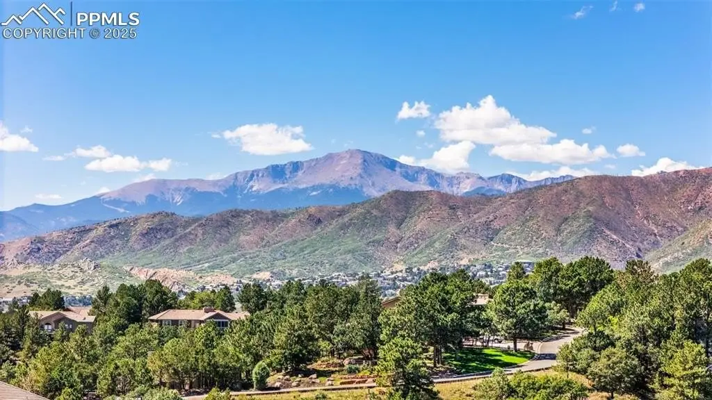 Nestled in the desirable Oak Hills neighborhood in Northwest Colorado Springs, this one-of-a-kind home offers breathtaking mountain, city, and bluff views from every window. Set on over an acre, the property delivers more than 1,200 sq ft of deck and patio space for the ultimate Colorado outdoor living experience. Inside, the main-level master suite features a spacious 5-piece bath, walk-in closet, and direct access to its own private deck with hot tub. A newly converted office with skylights and fresh finishes showcases dramatic mountain views, while a striking living room with fireplace and hand-painted tile floors by a local artist serves as a centerpiece. The expansive dining room and open kitchen with island, stainless steel appliances, and breakfast nook flow seamlessly to the deck for outdoor dining or entertaining. A family room with a wall of windows frames the sweeping vistas, creating an ideal gathering space. Upstairs, a versatile loft with private deck and adjacent ¾ bath is perfect for guests, an office, or playroom, and is complemented by two bedrooms, a full dual-vanity bathroom, and a charming reading loft. The oversized heated garage features its own zone and tall door for a conversion van. The walkout basement offers a spacious rec room with wet bar, projector screen, bedroom, ¾ bath, and large wine cellar/storage room. Updates include a new boiler (Sept 2024), newer mini-split A/C (2021), stucco exterior, and fresh touches throughout. With its rare privacy, custom floorplan, and resort-like feel, this home evokes the charm of a mountain retreat while being just minutes from I-25, shopping, hiking and biking trails, schools and parks. Located in award-winning Academy District 20, this home combines unique character with unmatched convenience. Don’t miss your chance to experience this extraordinary property—schedule your private showing today!
