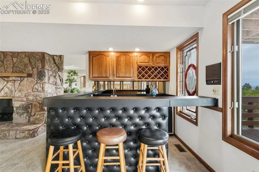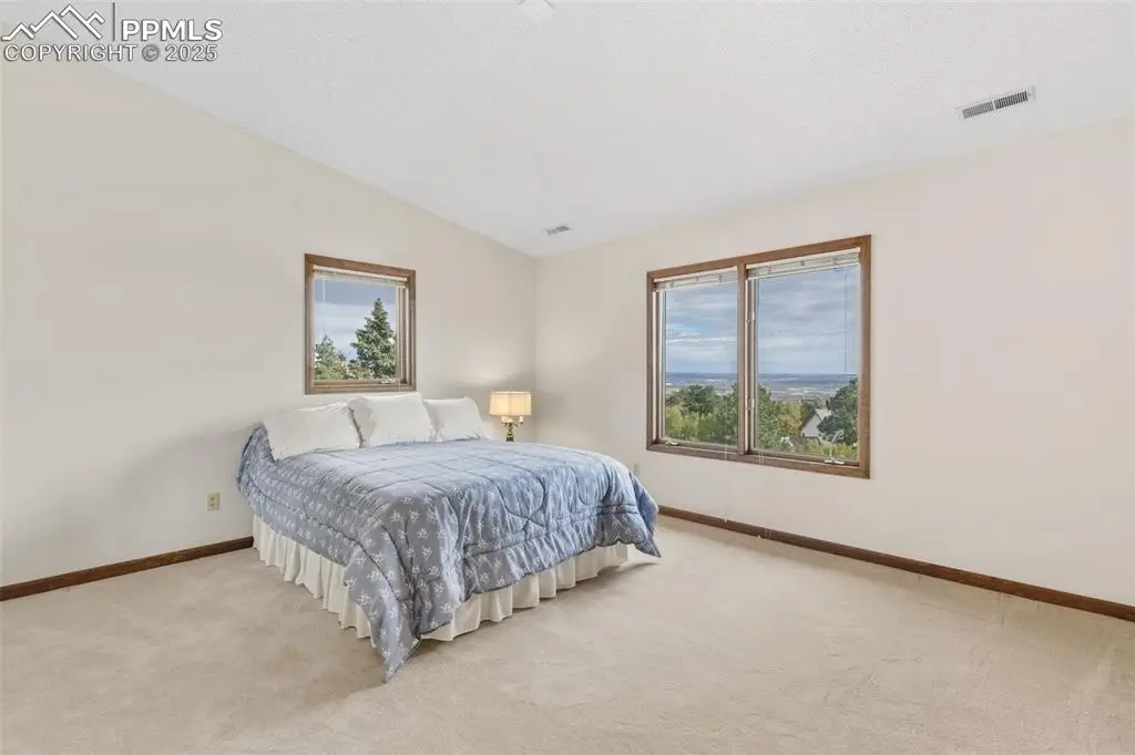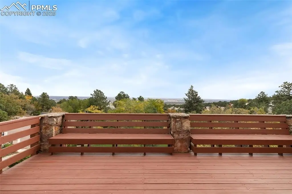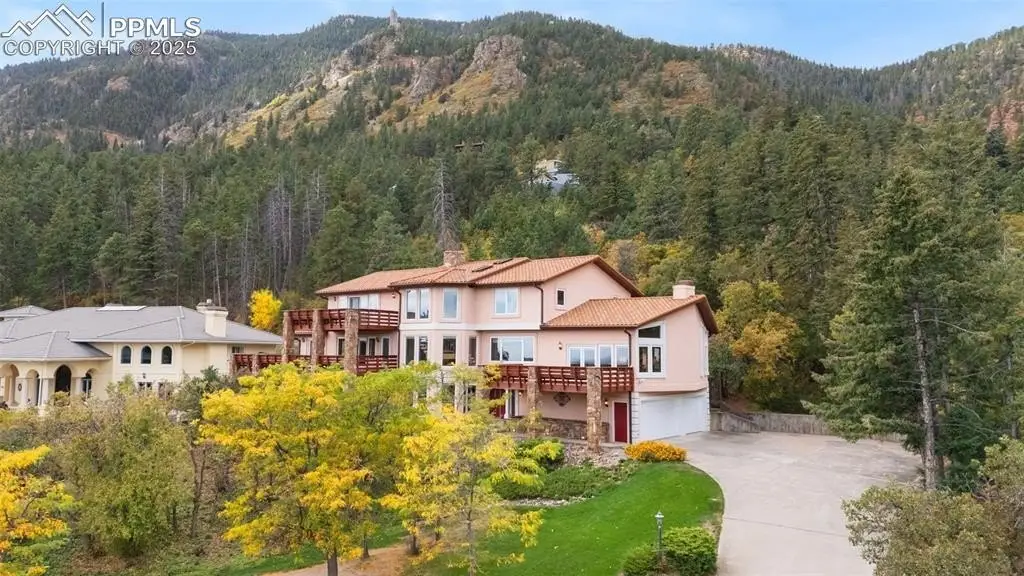 Designed by the Owner, who is an electrical engineer, and thoughtfully maintained since its construction in 1984, this custom home is a true original. Perfectly nestled on the slopes of Cheyenne Mountain, it offers a one-of-a-kind setting with breathtaking city views from nearly every window and from each of the 3 decks. The gentle chimes of the nearby Will Rogers Shrine provide a serene and ever-present reminder of this remarkable location. Upon entry, you’re greeted by an open staircase framed by elegant windows, leading to a spacious, light-filled main floor. Natural light pours into the home, accentuating its airy atmosphere and timeless neutral palette. With 4 natural stone fireplaces, it was designed with entertaining in mind, as the layout flows effortlessly from one inviting space to the next. A private, tucked-away office creates a tranquil retreat for work or quiet reflection, while the generously sized living areas offer endless possibilities for personal style and creative design. Upstairs, the primary suite is a peaceful haven, featuring a walkout to a large private upper deck overlooking the entire city. Each bedroom connects to an adjoining bath and offers abundant closet space. In 2019 a metal roof was installed, ensuring lasting peace of mind, underscoring the meticulous care given to every detail of this home. Ideally located just minutes from Stratton Open Space, the Cheyenne Mountain Zoo, and the world-renowned Broadmoor Hotel, this residence blends tranquility, elegance, and convenience in one exceptional property.