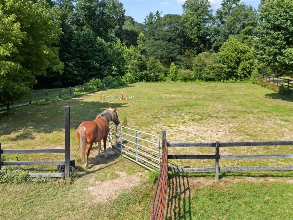 Classic Southern charm meets elegant equestrian living on this 34 acre estate. This beautifully crafted, traditional four-sided brick home offers 3575 sq. ft. of comfortable, functional living space, featuring 4 bedrooms - including a spacious primary suite on the main level - 4 full baths, and a half bath. Thoughtfully designed for both everyday living and entertaining, the home is surrounded by gently rolling pastureland in a peaceful country setting. Equestrians and hobby farmers alike will appreciate the well appointed 5-stall barn, complete with a wide center aisle, tack room, wash rack, and upstairs hayloft. Four large pastures are already in place, with plenty of room to add more. There's also a creek along the rear of the property, and a sand arena that's perfect for training or recreation. Tucked among other large-acreage properties, this idyllic farm offers the best of both worlds - rural tranquility, but just minutes from the charm of Olde Town Conyers and with easy access to Atlanta via I 20. Whether you're dreaming of a quiet countryside retreat, a boutique training facility, or a fully functional hobby farm with access to city convenience, this property checks all the boxes.