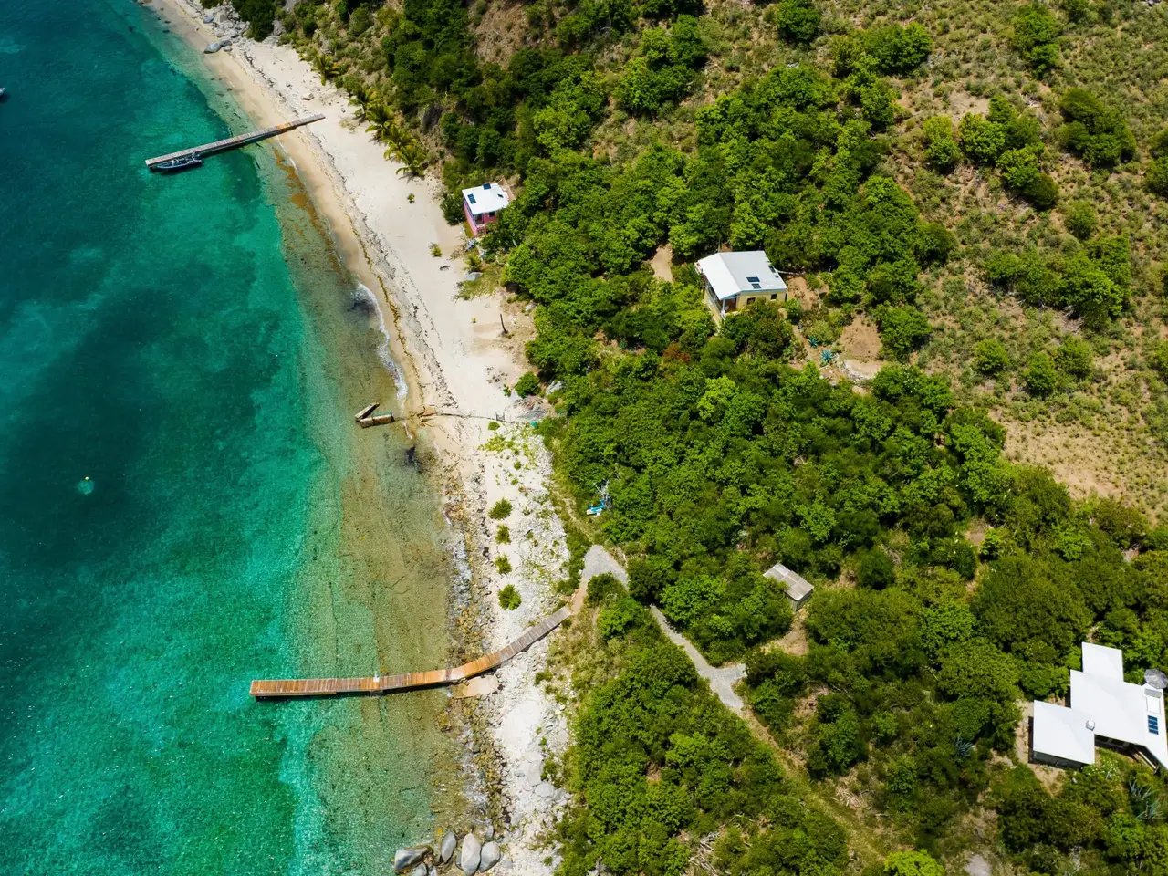 PRICE REDUCTION DECEMBER 2024 was listed at $2,500,000, NOW $2,100,000 Unique freehold beachfront property located in Manchioneel Bay on Cooper Island. The property has a rare combination of privacy and accessibility. The Hillside Hideaway and Beach Cottage are situated on an almost 3 acre site, which means there is plenty of room for further development and expansion. The property is a tranquil haven, just a few minutes walk along a beach trail from Cooper Island Beach Club. It also has a private 120ft dock, so a boat can be kept on site to navigate the short trip across the Channel to Tortola. .The Beach Cottage is less than 50ft from the high water mark and provides a simple but comfortable retreat from the daily grind. It has a studio floor plan of 292 sq/ft with a fabulous covered deck providing an additional 220 sq /ft of space. Wander a little higher up the hill, following a 200ft trail through tropical flora and you arrive at the larger Hillside Hideaway. .The Hillside Hideaway is around 800sq/ft with an open plan kitchen/living room and a private ensuite bedroom. The current owner has a second day bed set up in the living room to accommodate additional guests. As with the Beach Cottage, the Hideaway has a wonderful porch which adds an additional 360 sq ft. A perfect spot to watch the world sail by. Both properties run off the grid, with solar panels, rainwater cisterns and fridges and stoves that operate off propane gas. Cooper Island remains one of few places in the BVI which retains its rustic, desert island charm and with only 5 residential properties on the island, this is an opportunity which needs to be grabbed before it is too late.