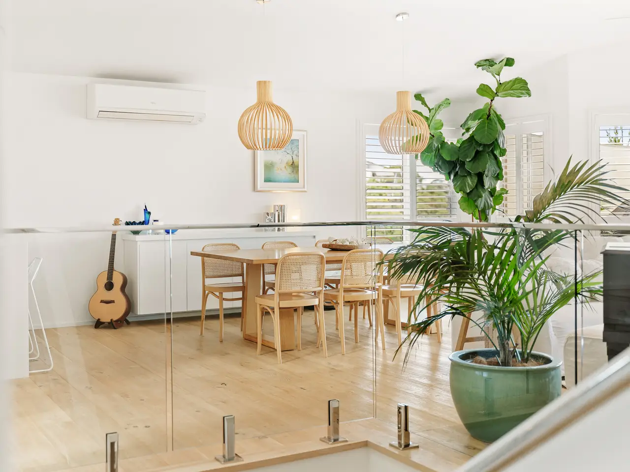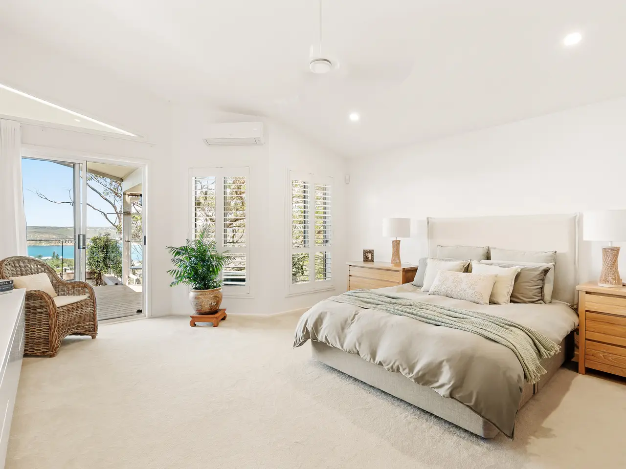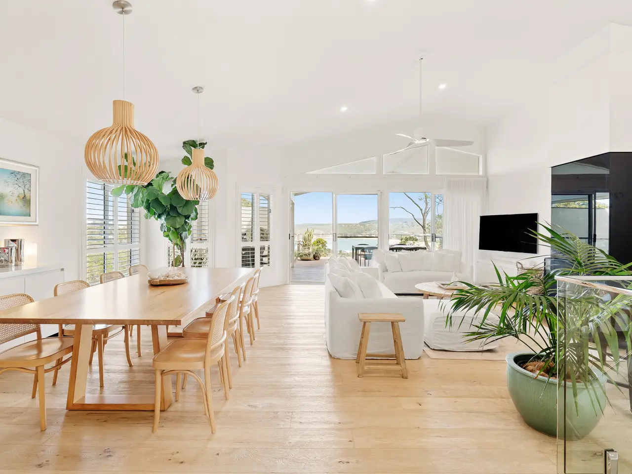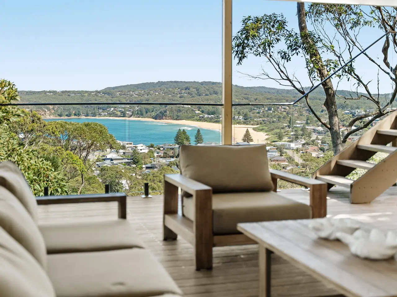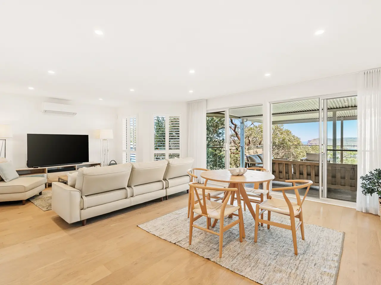This the kind of holiday home where you drop the bags and immediately start the weekend – it's a perfect design for stress-free living against an iconic beach backdrop; boasting views from nearly every room, the dual level layout is beautifully finished from end-to-end. Skylit interiors are matched by high raked ceilings, extensive glazing and polished timber floors, while both floors flow easily to ocean-facing decks and those phenomenal views. Downstairs there's a fully self-contained guest suite with a separate entrance – an ideal spot for weekend guests or a fabulous Airbnb rental on a premier headland setting. Best of all, it's just a short stroll into the village, Copacabana's rockpool and the wide sandy beachfront. • Crisp, open plan layout boasts high ceilings and wide plank floors • Dual level design with two living zones + separate study/home office • Dazzling ocean, beach and headland views from expansive decks • Deluxe kitchen pairs sleek cabinetry with top-of-the-line appliances • Master opens to deck; includes large walk-in robe, double ensuite • Guest suite on lower level; all bedrooms include built-in robes • Wood fireplace, A/C, solar panels, plantation shutters, wine cellar • Ample storage space along with double garage and large workshop